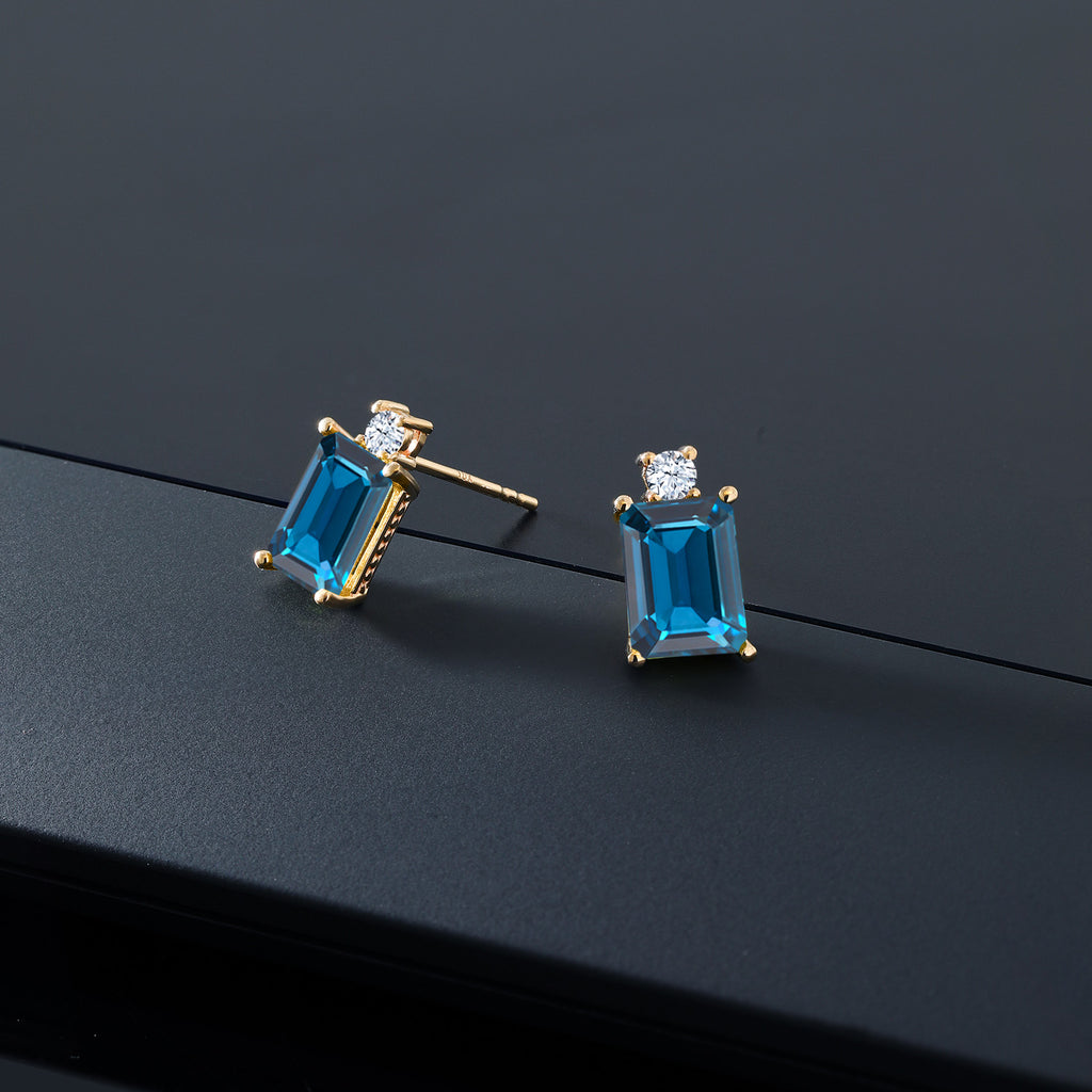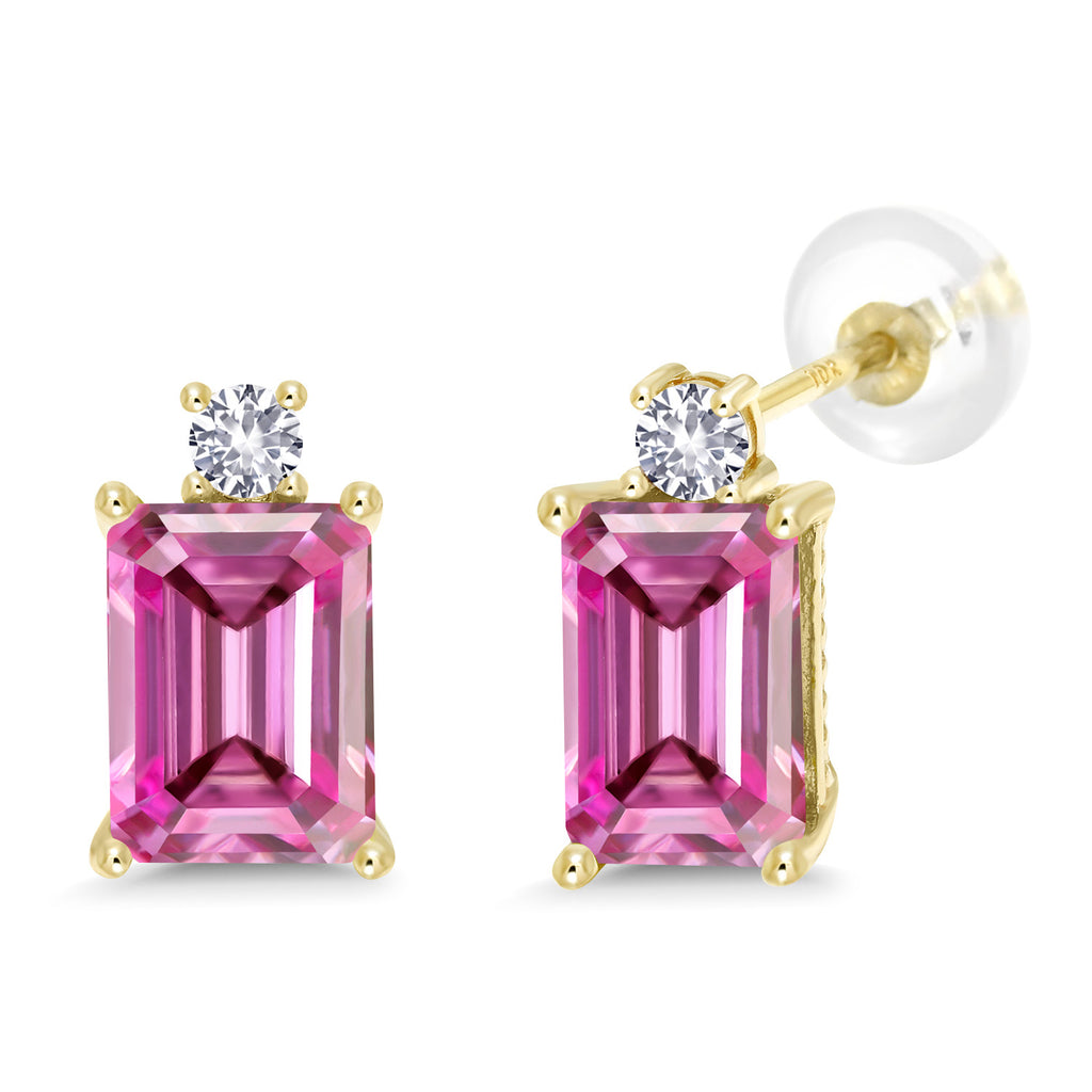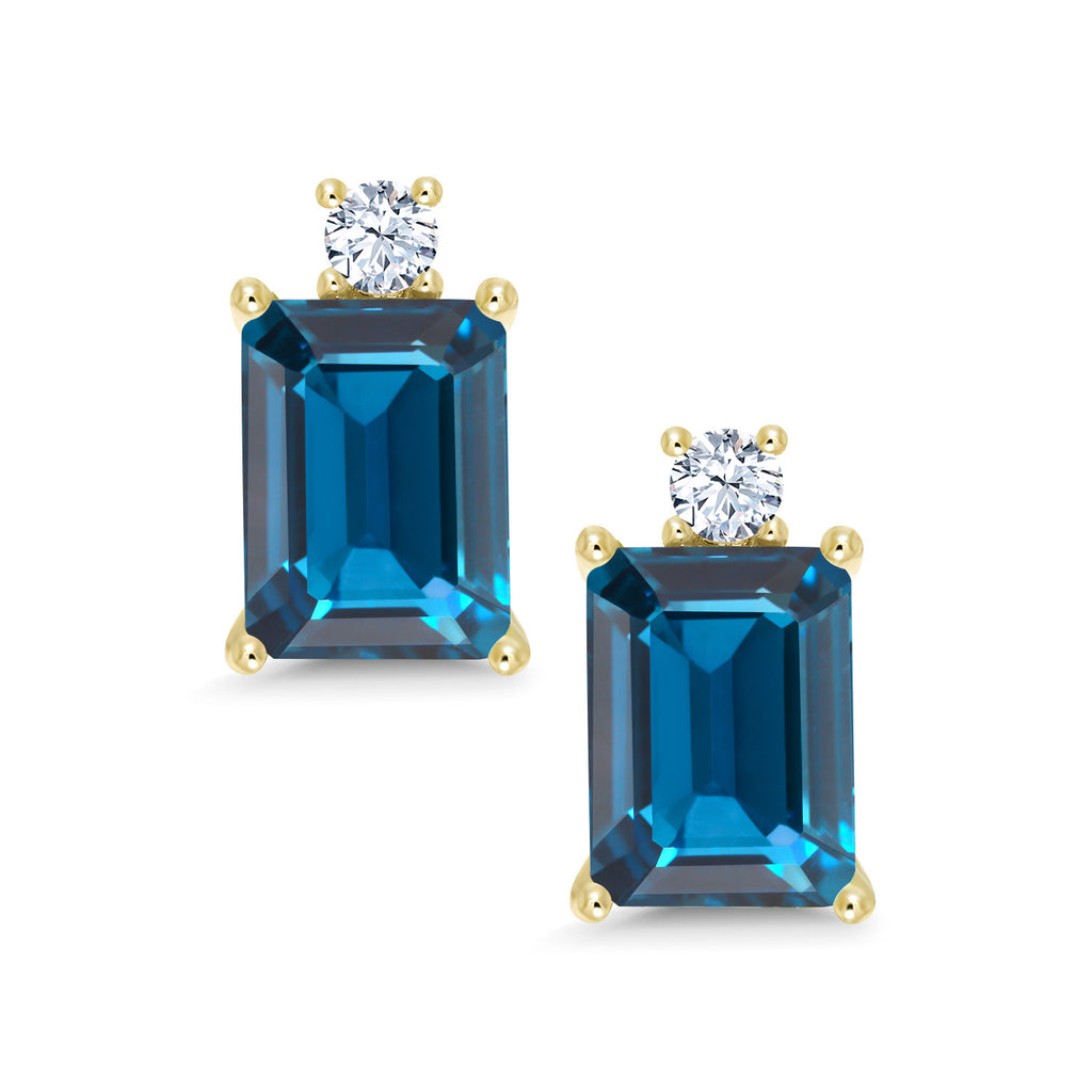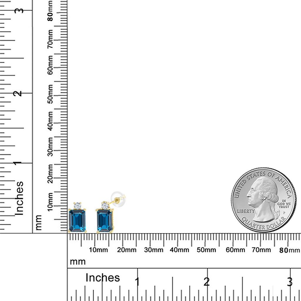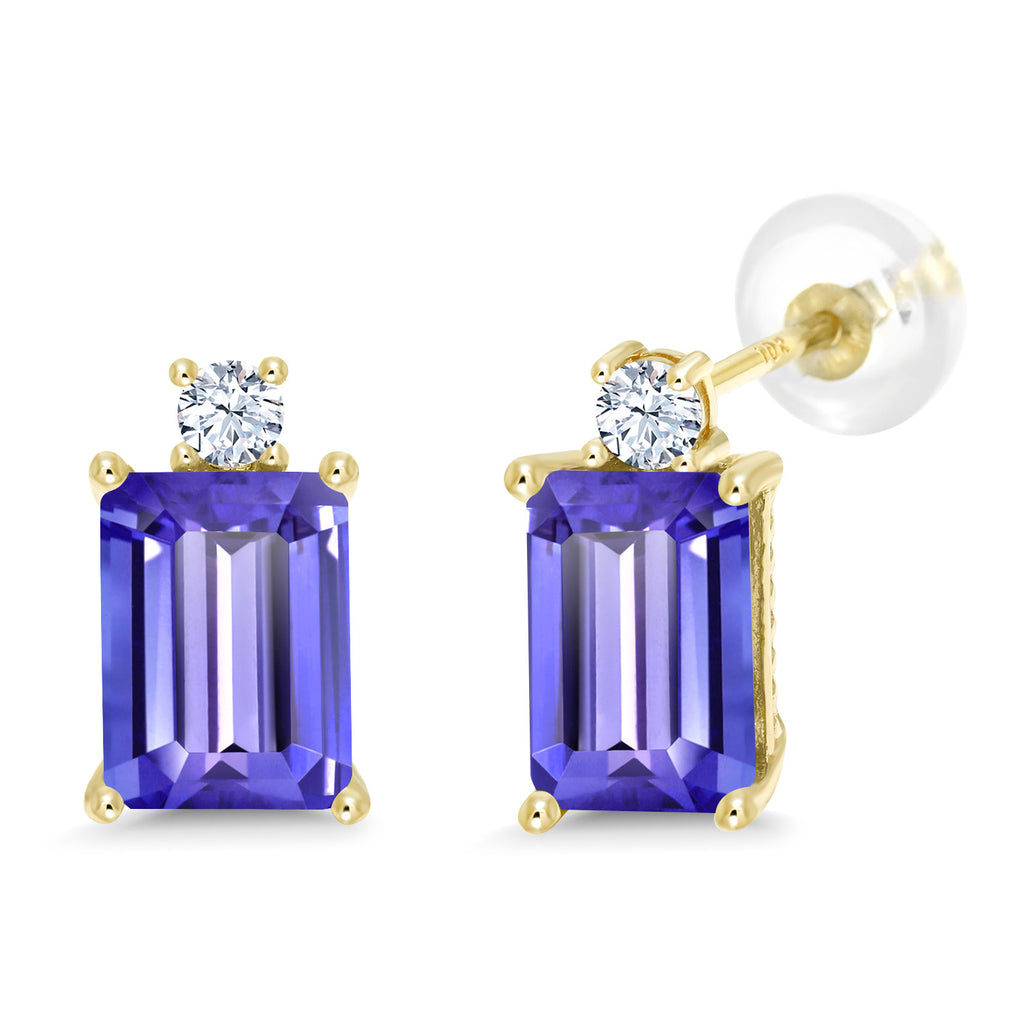 10K Yellow Gold Gemstone Birthstone and White Created Sapphire Two-Stone Stud Earrings for Women | Emerald Cut 8X6MM with Round 2.5MM Accent | Fine Gold Jewelry for Her Mom Wife