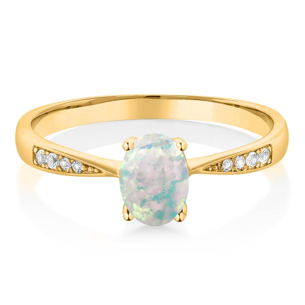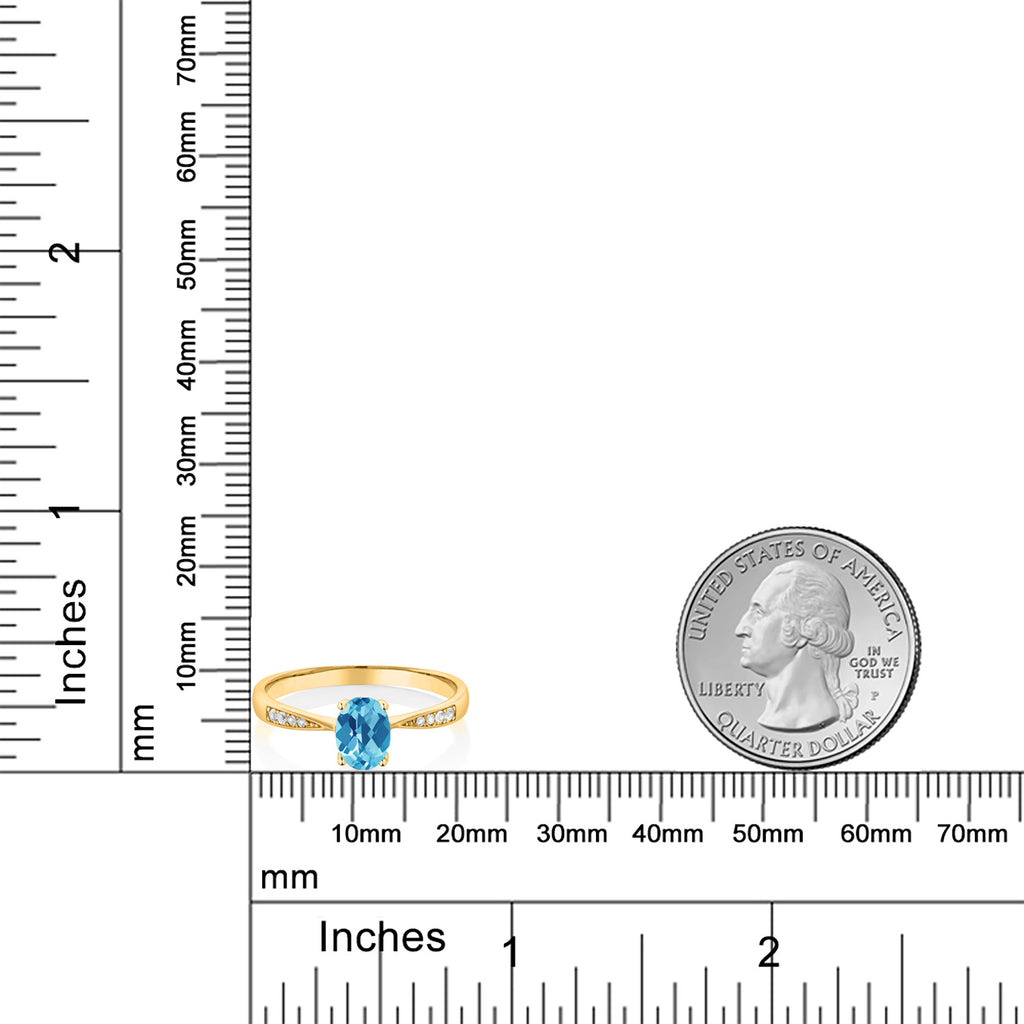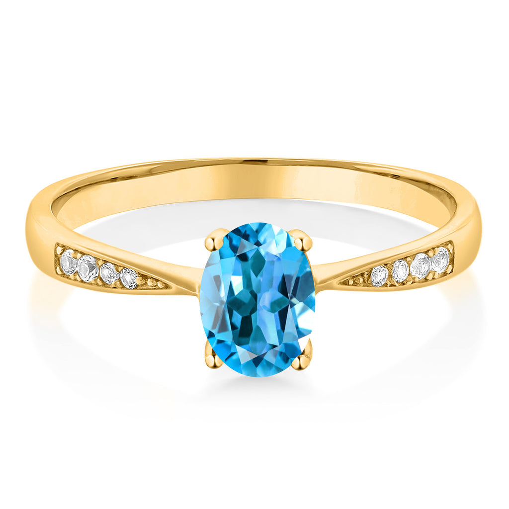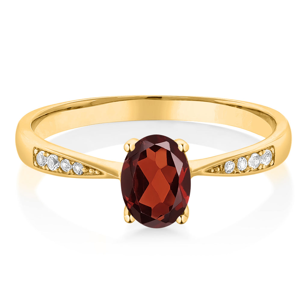 10K Yellow Gold Gemstone Birthstone and White Diamond Engagement Ring For Women | Oval 7X5MM | Wedding Engagement Anniversary Promise Ring | Sizes 5, 6, 7, 8, 9
