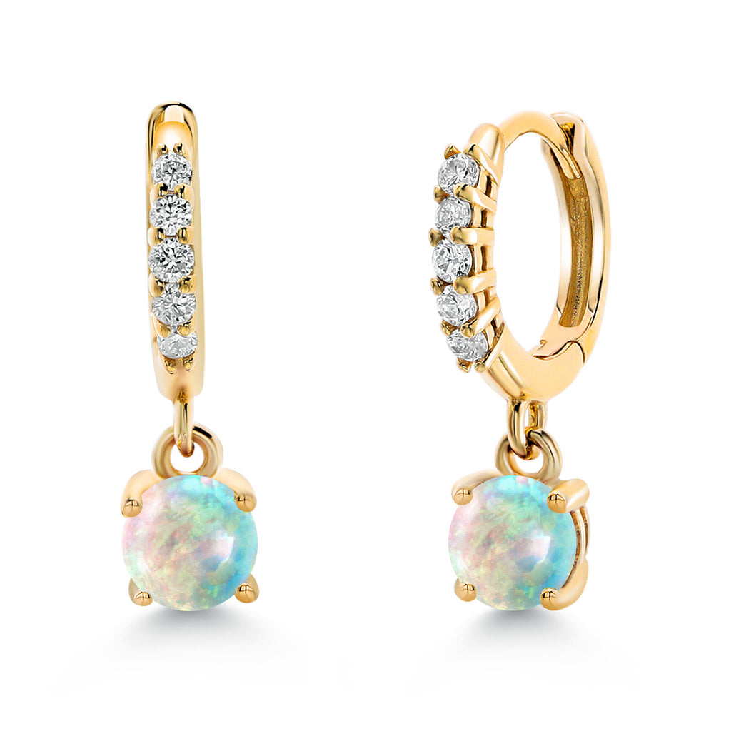 SPARKLING WHITE LAB GROWN DIAMONDS: Complementing the gemstones are exquisite white lab-grown diamonds that dangle delicately from the hoops. These diamonds are ethically produced, offering brilliant sparkle and clarity that mimics natural diamonds, adding a touch of luxury and sophistication to the earrings.