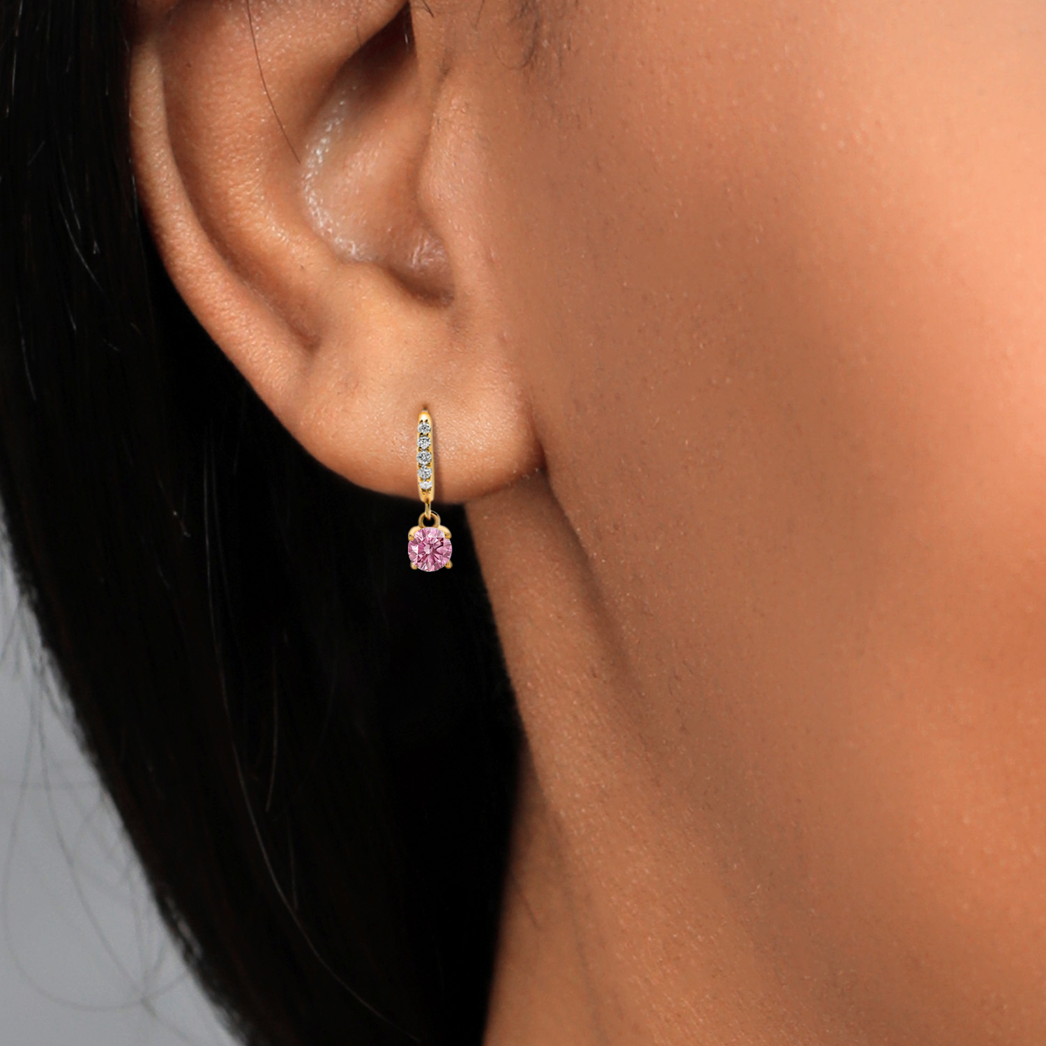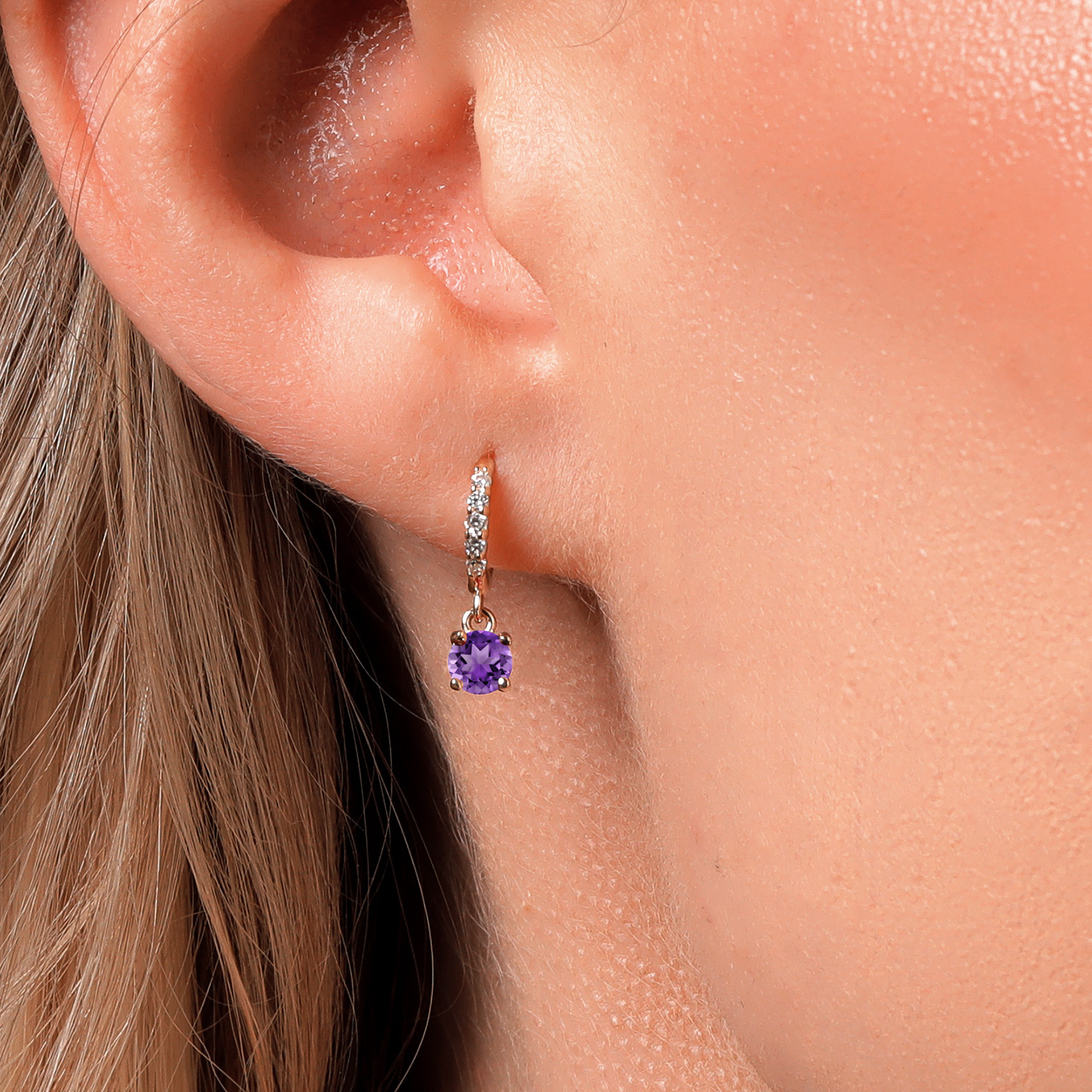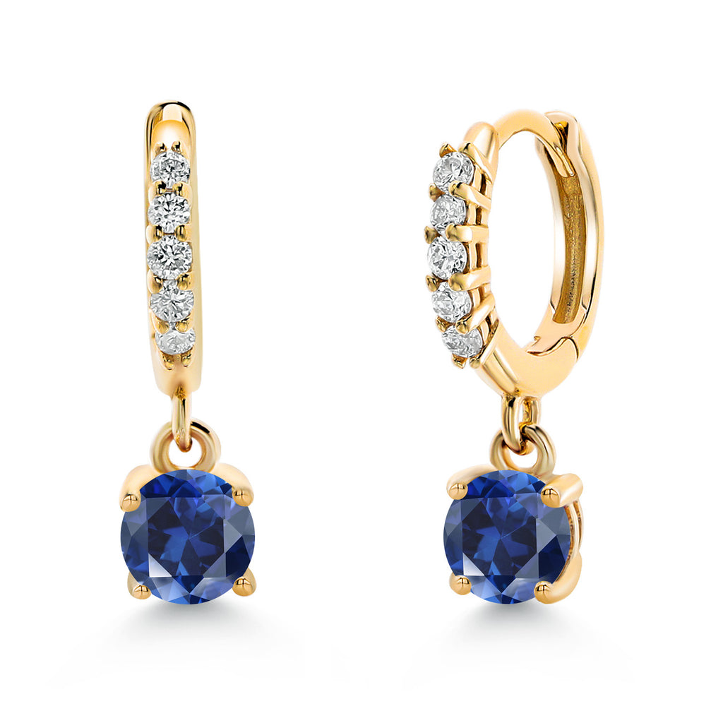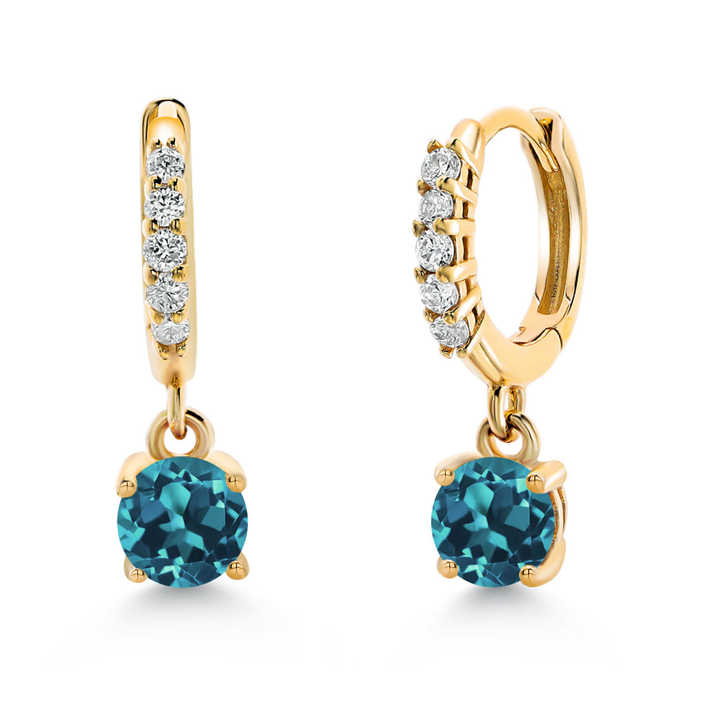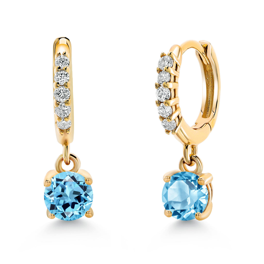 VIBRANT GEMSTONE ACCENTS: Each earring features a 4MM round gemstone, available in a selection of birthstones, adding a personalized touch to this elegant accessory. The vibrant colors of these gemstones offer a beautiful contrast against the warm yellow gold, making them perfect for those who appreciate a pop of color.