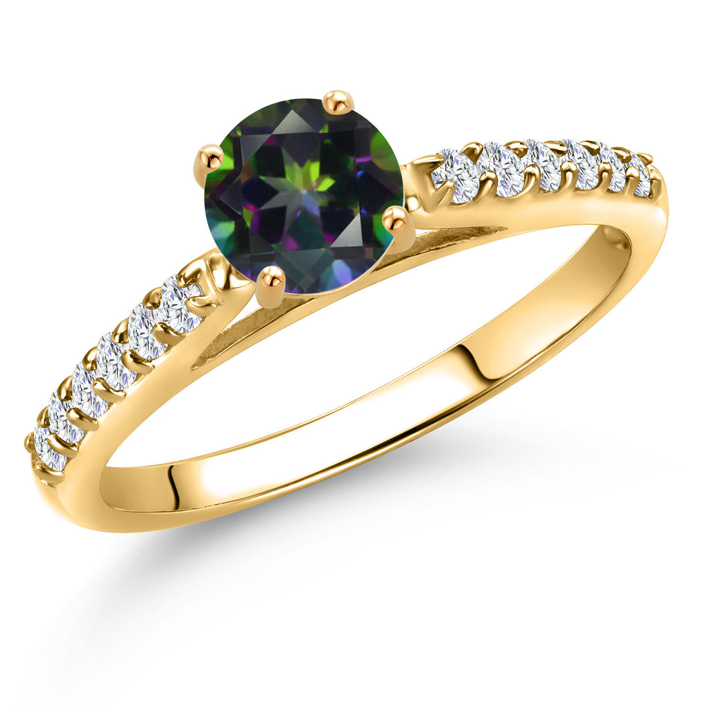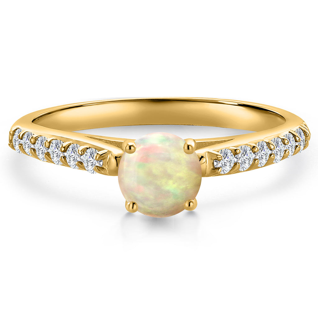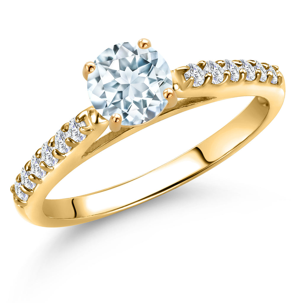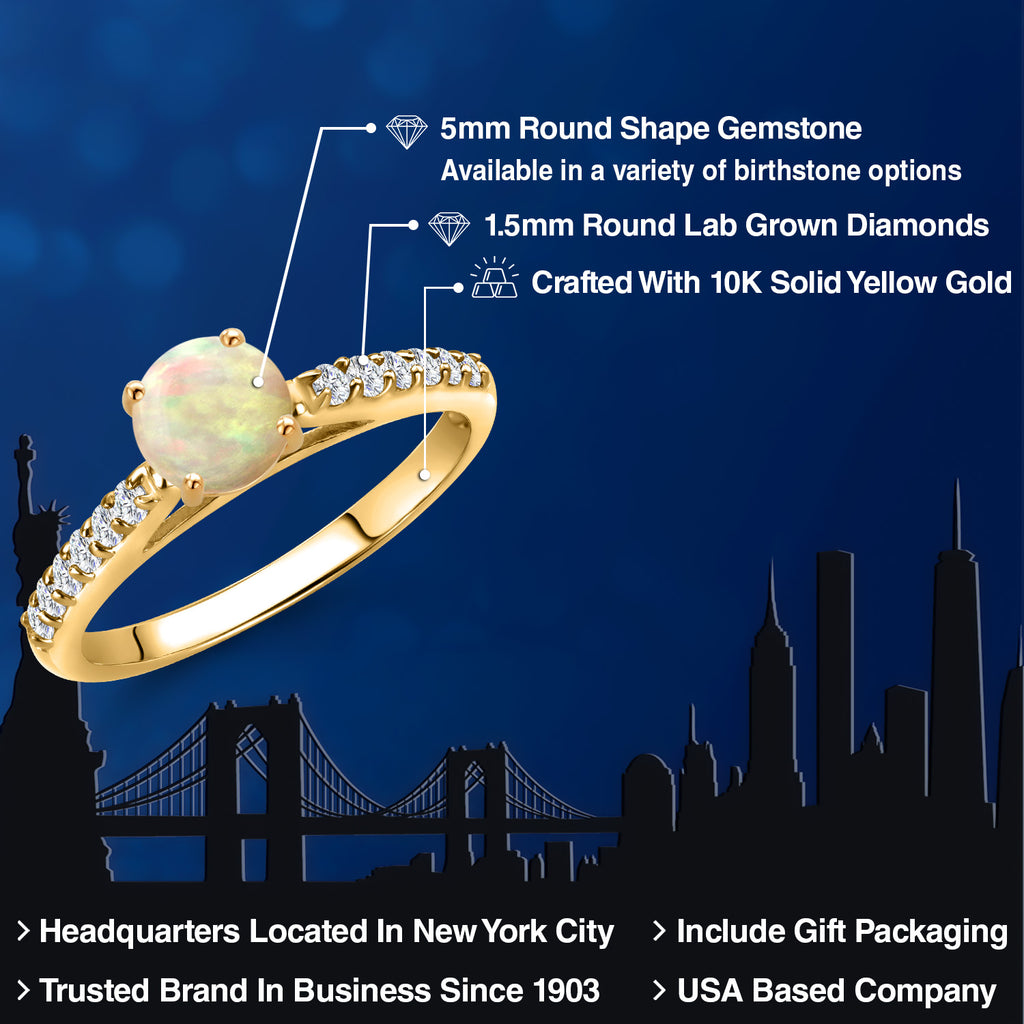 10K Yellow Gold Gemstone Birthstone and White Lab Grown Diamond Engagement Ring For Women | Round 5MM and 1.5MM | Wedding Anniversary Promise Ring | Sizes 5, 6, 7, 8, 9