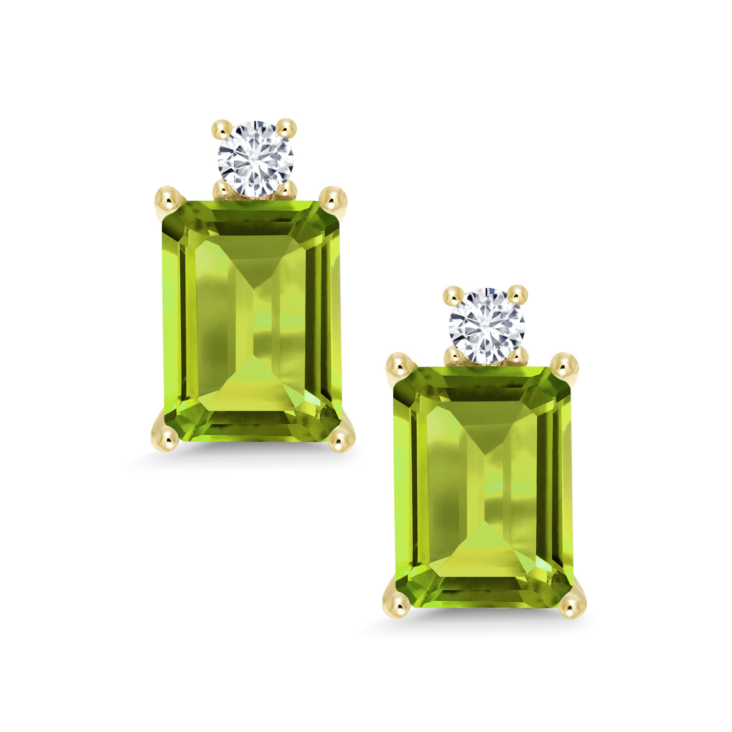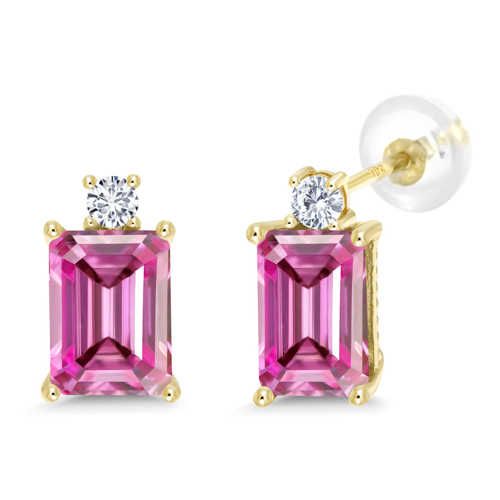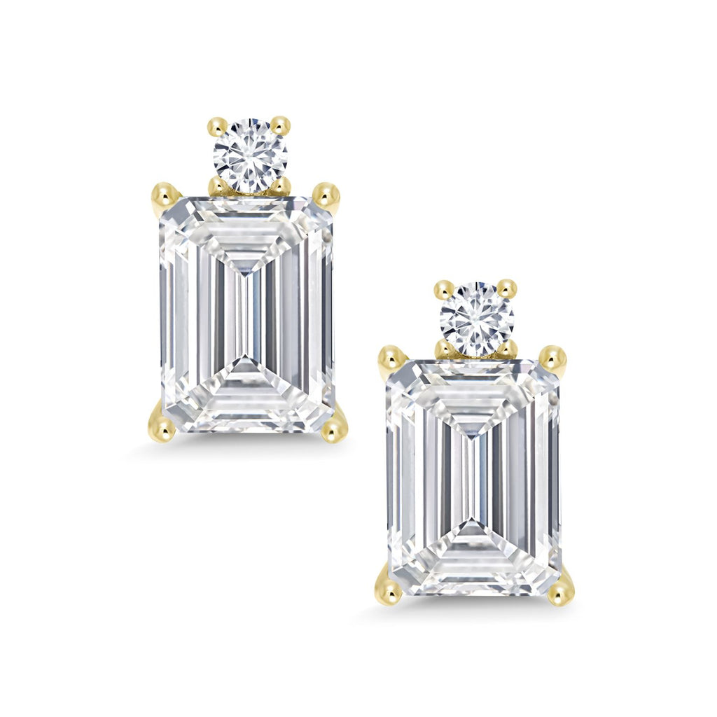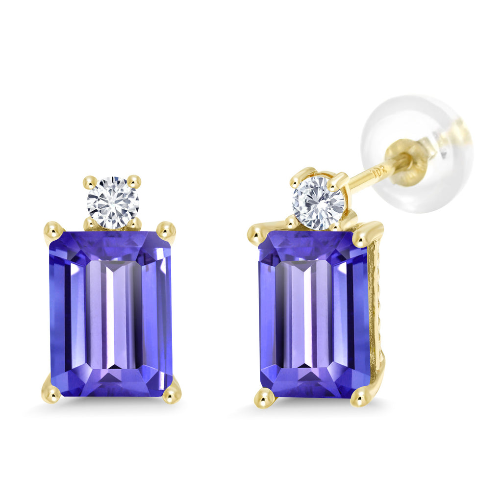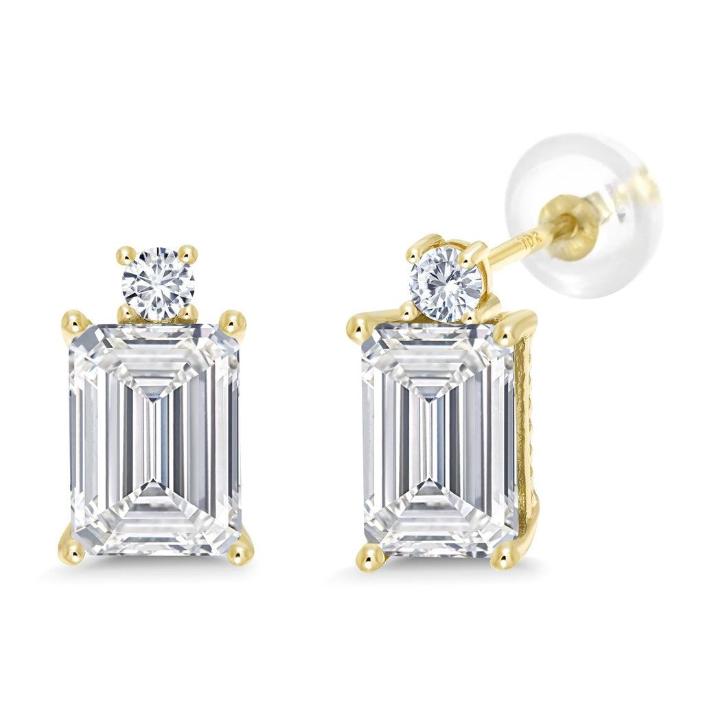 10K Yellow Gold Gemstone Birthstone and White Lab Grown Diamond Two-Stone Stud Earrings for Women | Emerald Cut 8X6MM with Round 2.5MM | Fine Gold Jewelry for Her Mom Wife