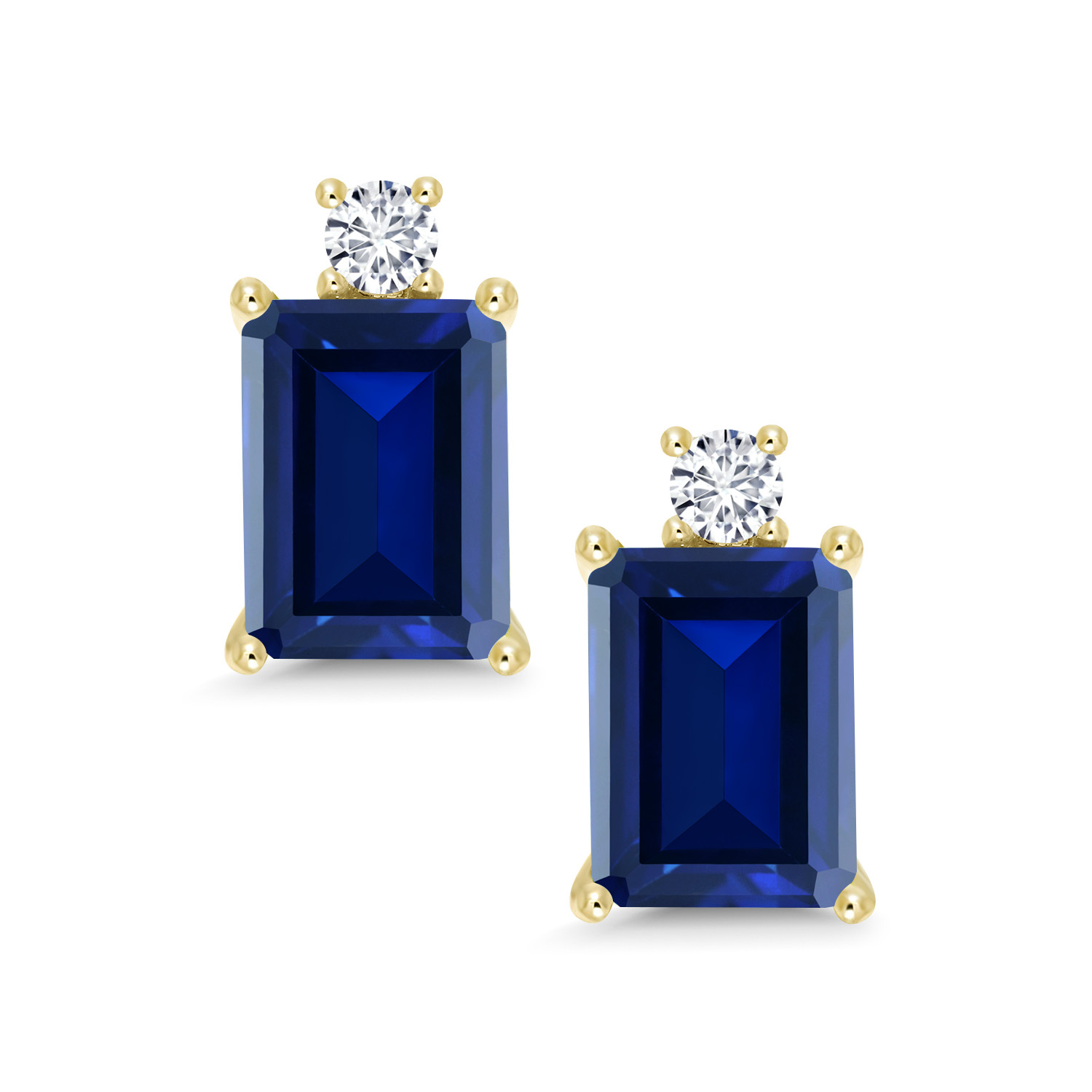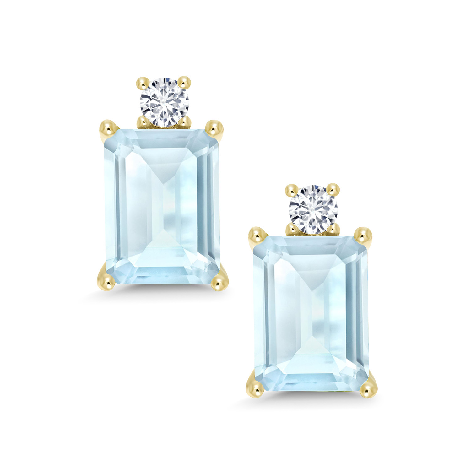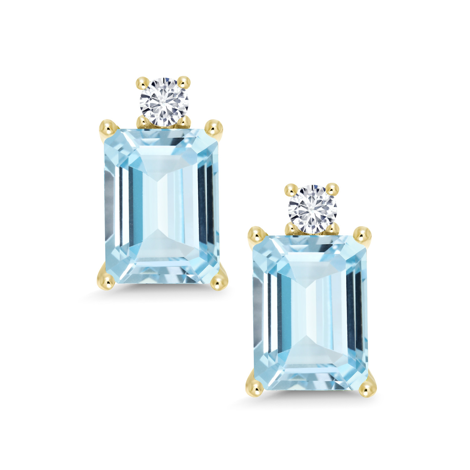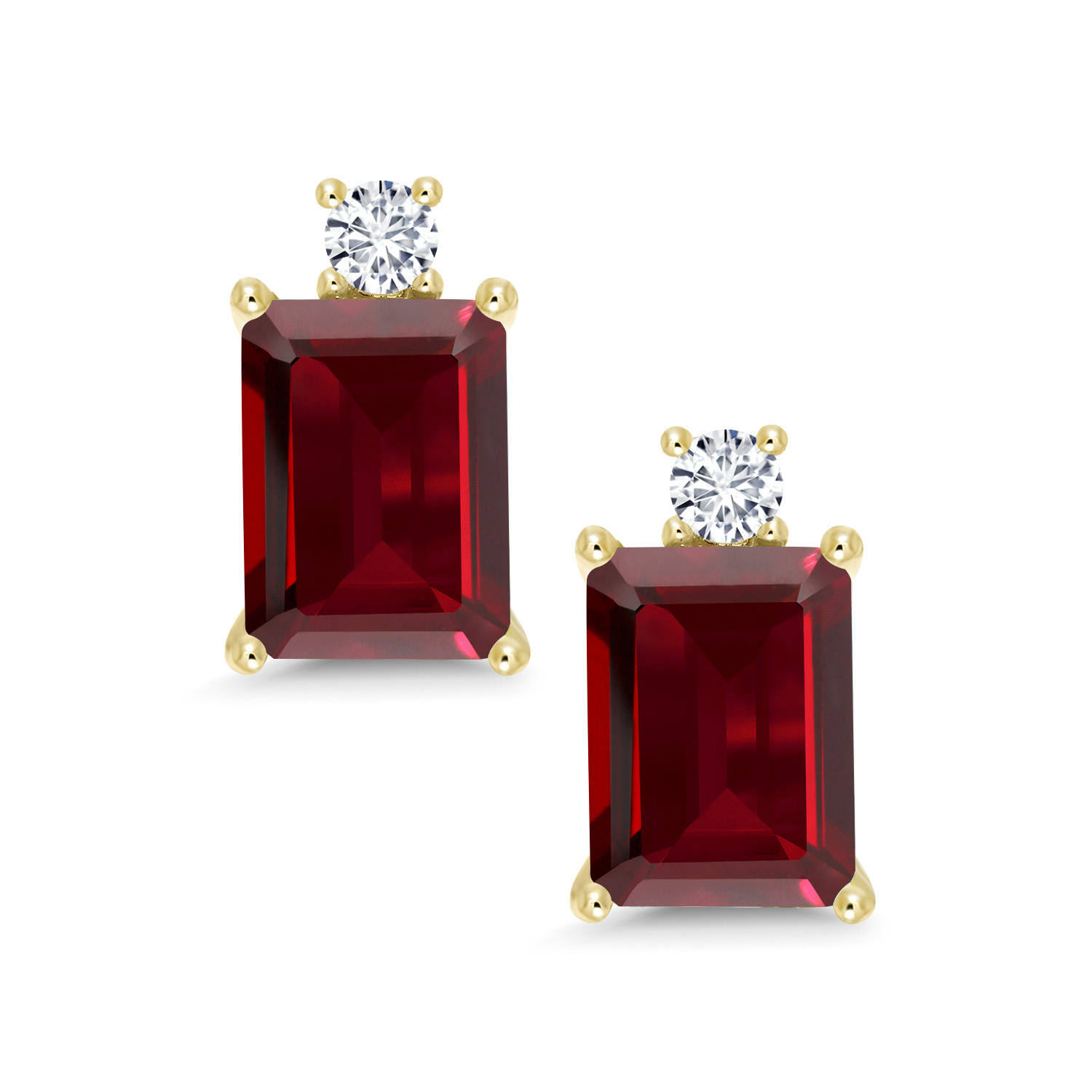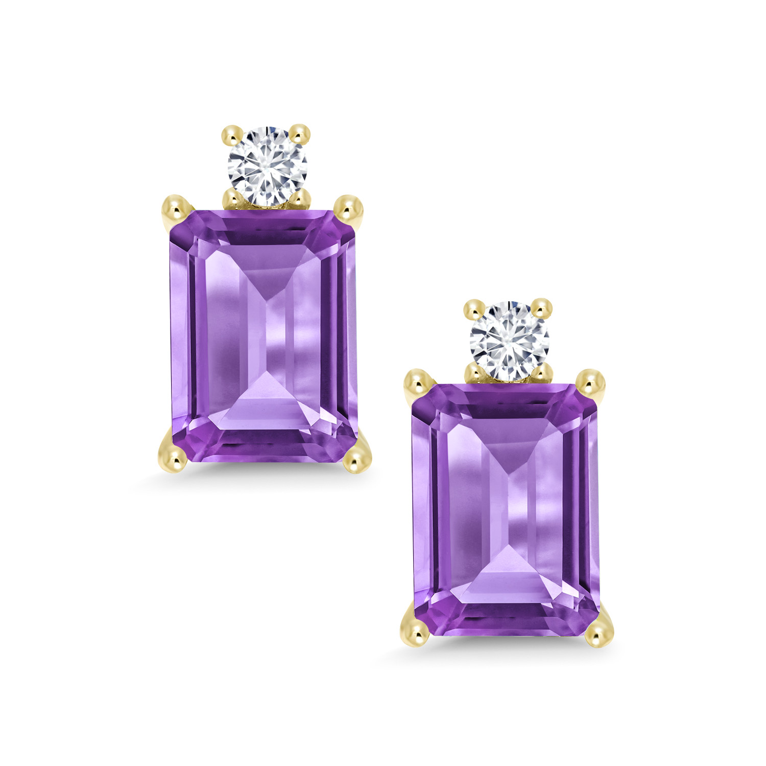10K Yellow Gold Gemstone Birthstone and White Lab Grown Diamond Two-Stone Stud Earrings for Women | Emerald Cut 8X6MM with Round 2.5MM | Fine Gold Jewelry for Her Mom Wife