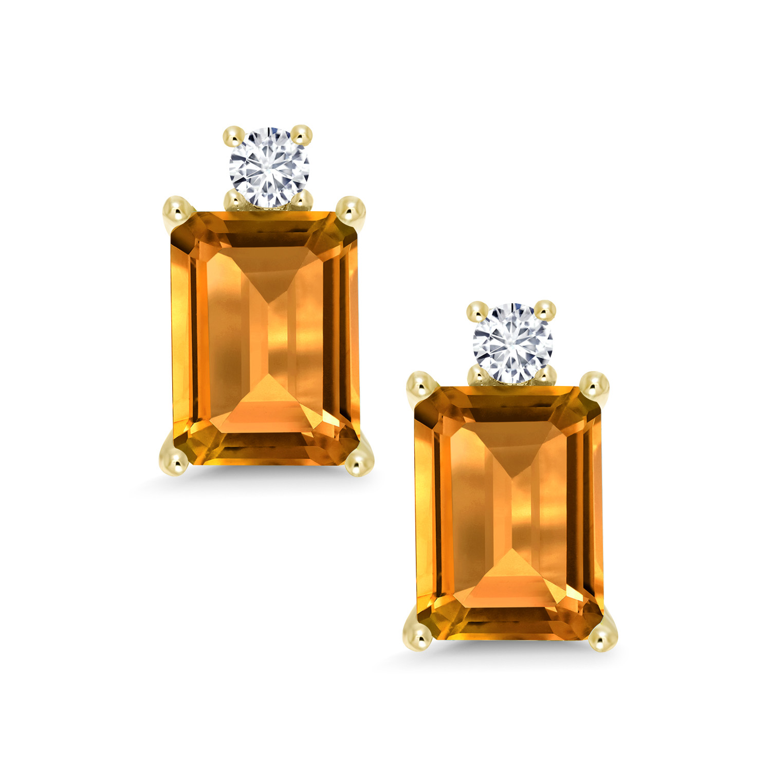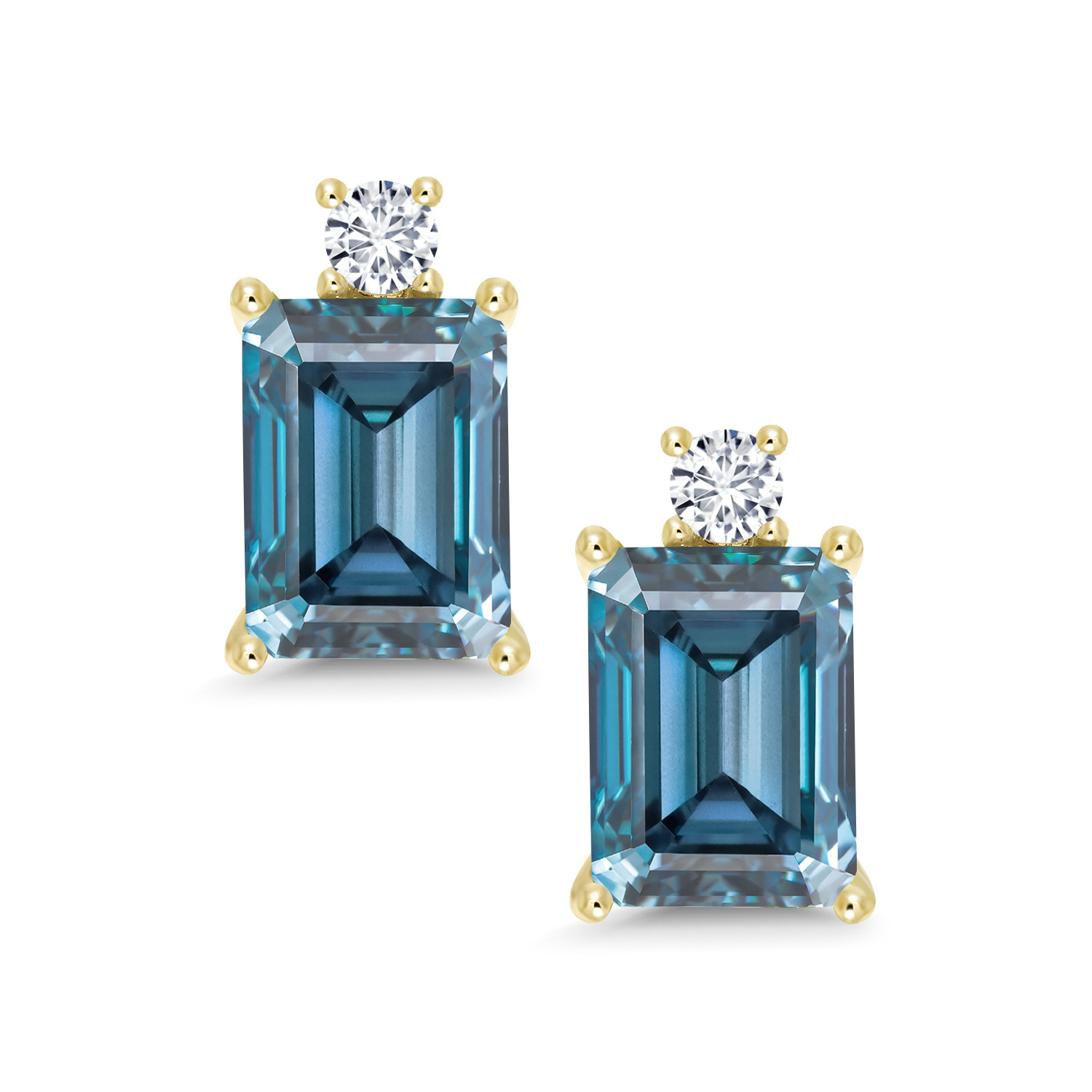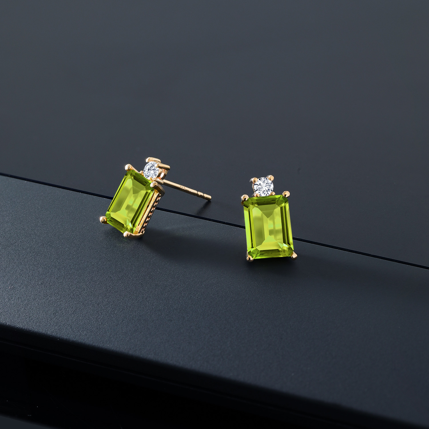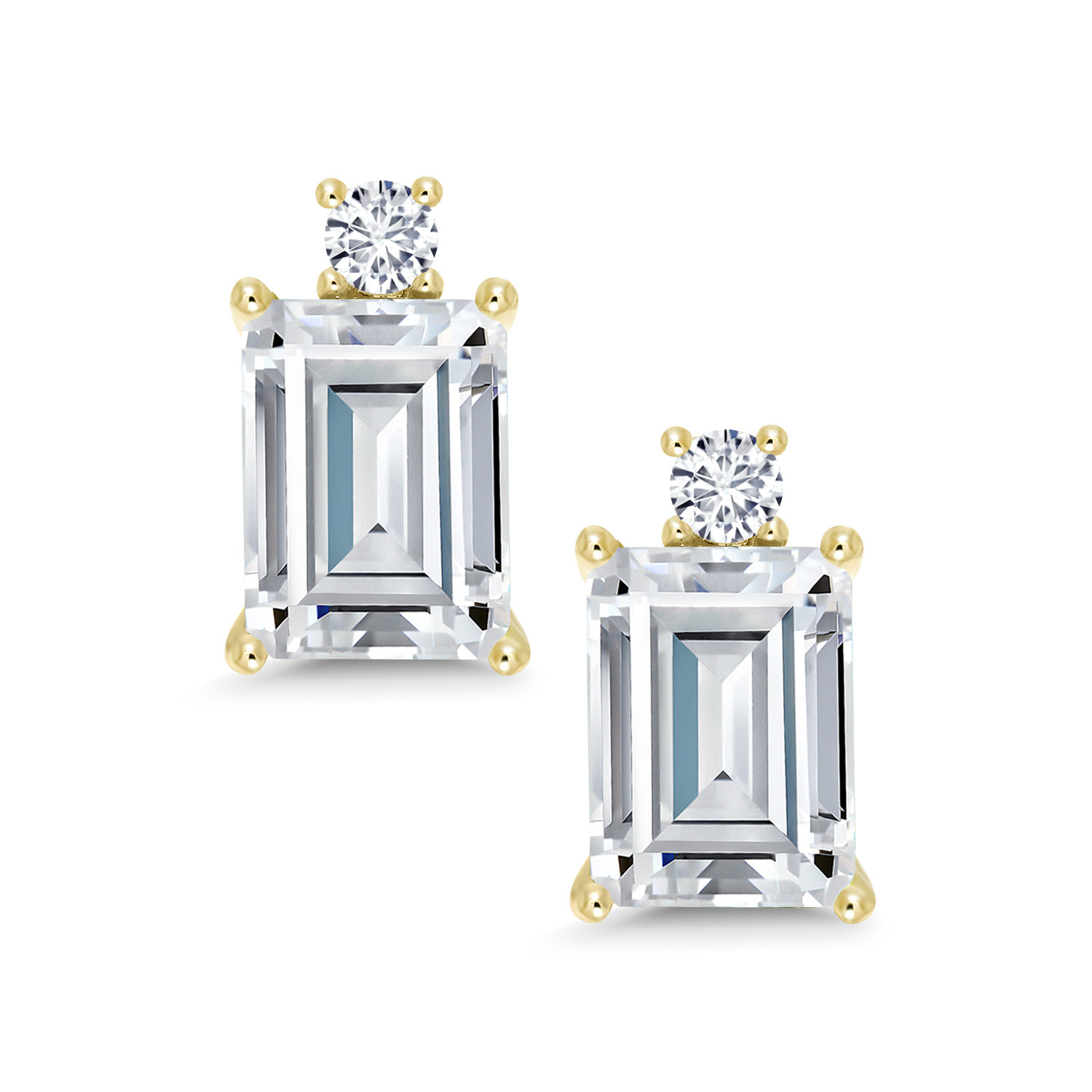 10K Yellow Gold Gemstone Birthstone and White Lab Grown Diamond Two-Stone Stud Earrings for Women | Emerald Cut 8X6MM with Round 2.5MM | Fine Gold Jewelry for Her Mom Wife