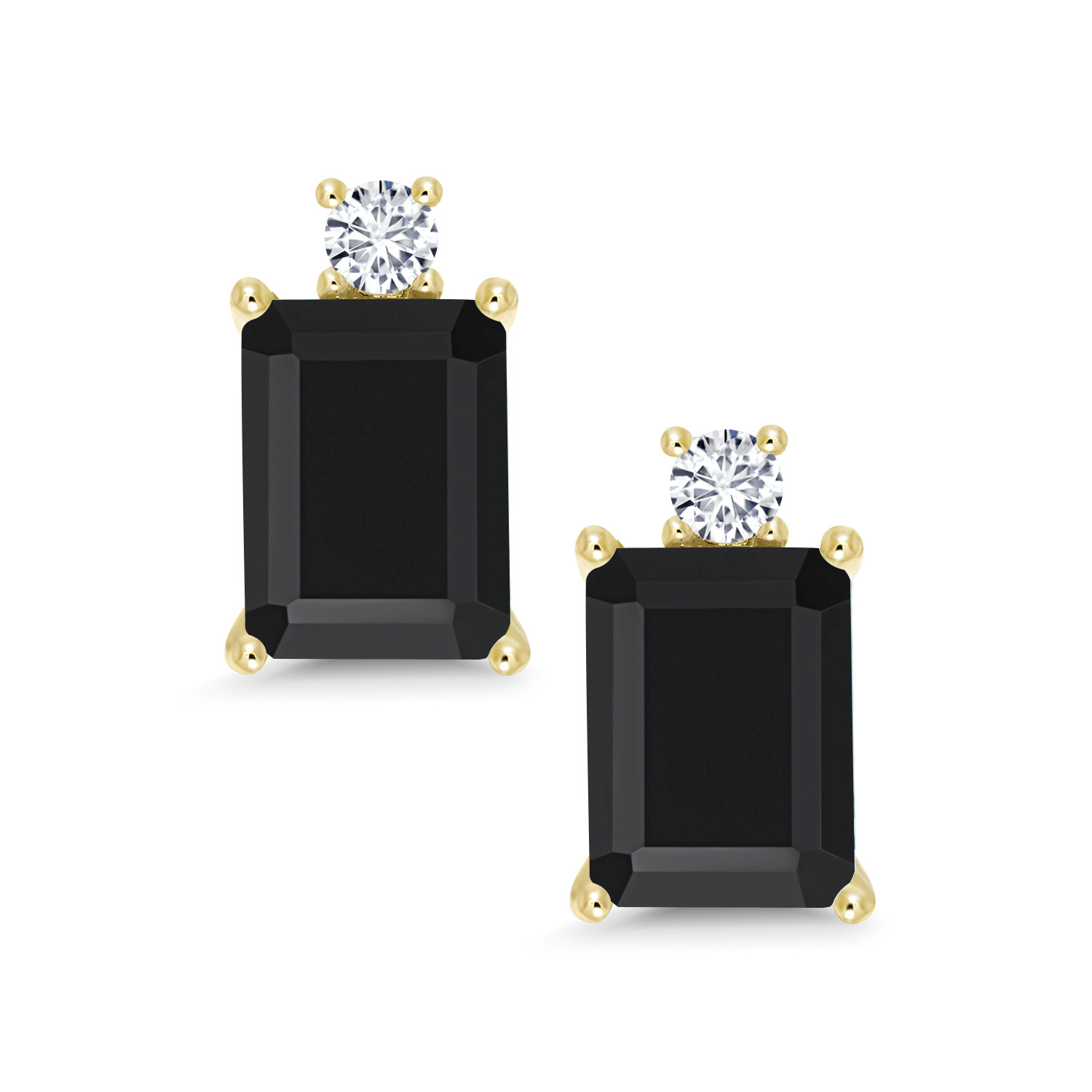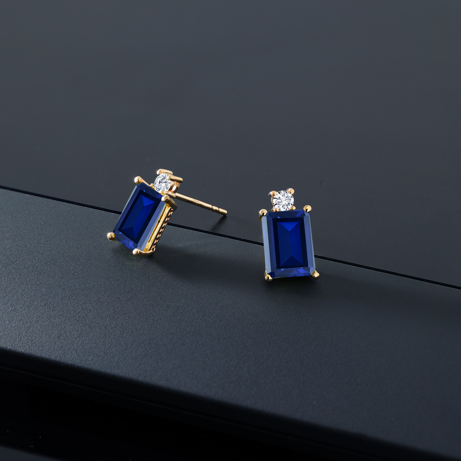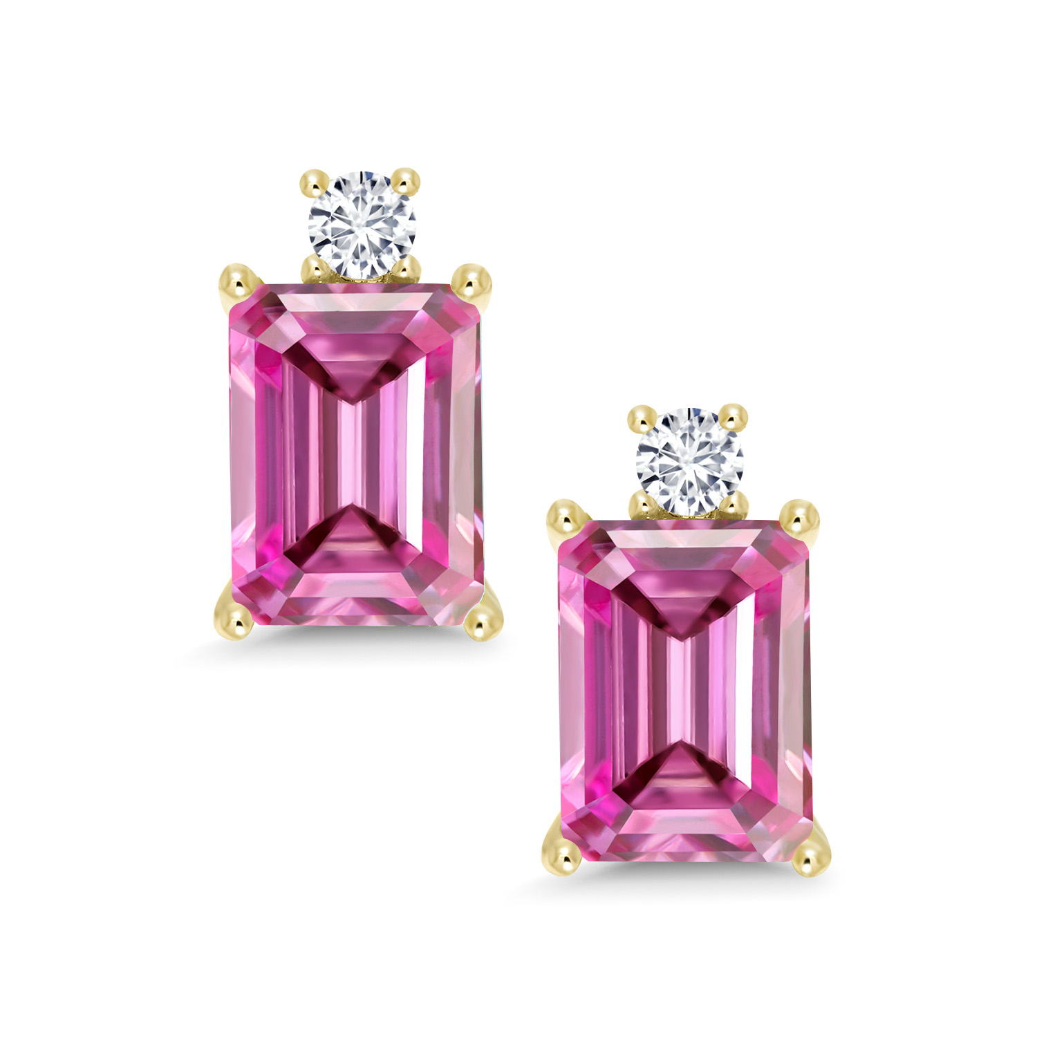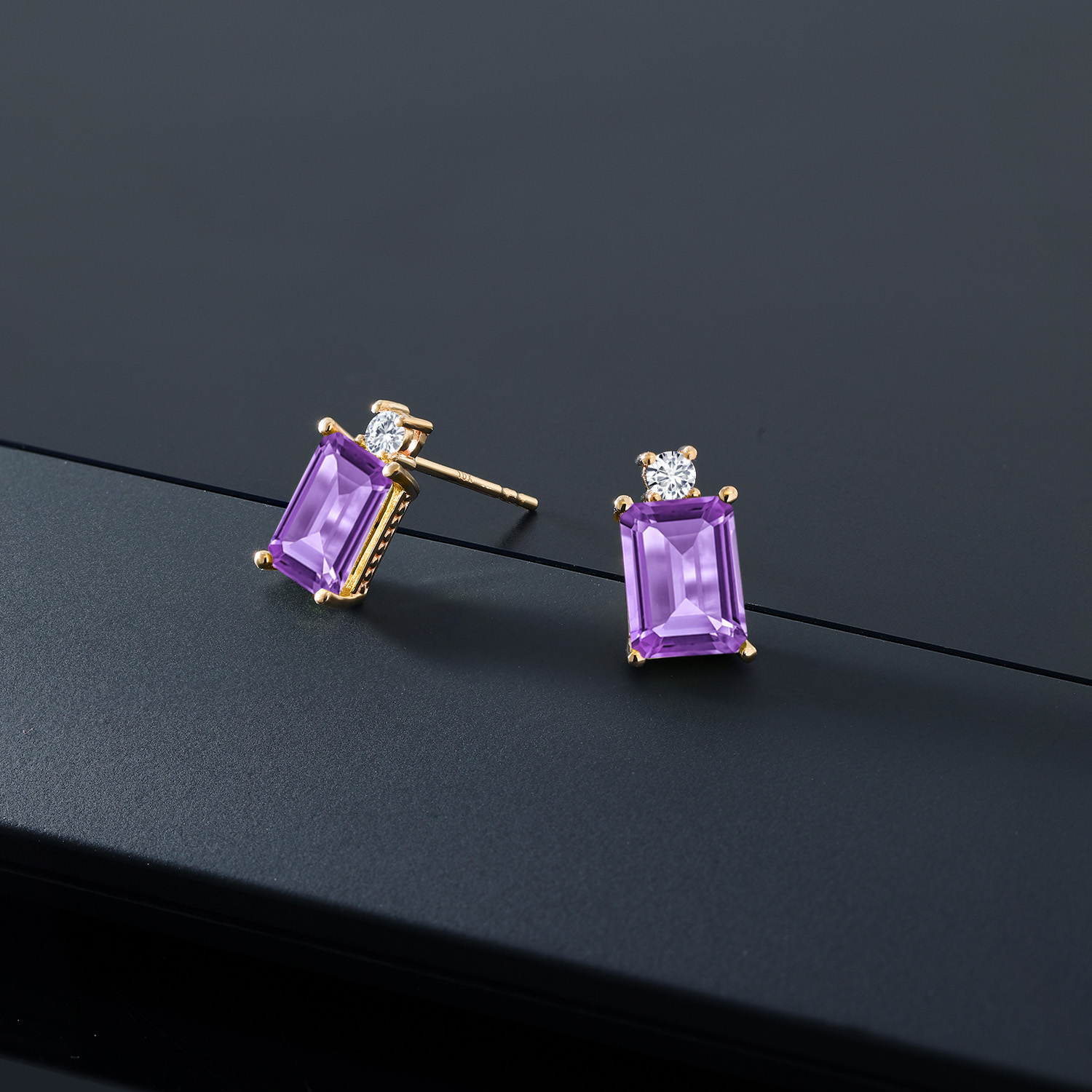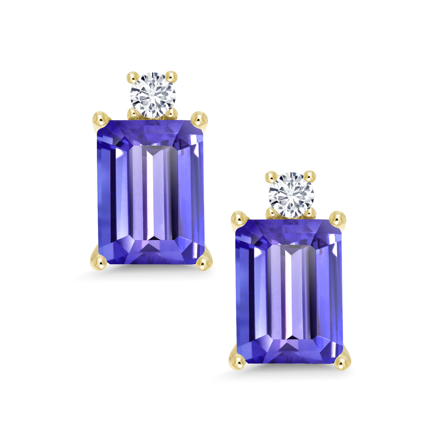 10K Yellow Gold Gemstone Birthstone and White Lab Grown Diamond Two-Stone Stud Earrings for Women | Emerald Cut 8X6MM with Round 2.5MM | Fine Gold Jewelry for Her Mom Wife