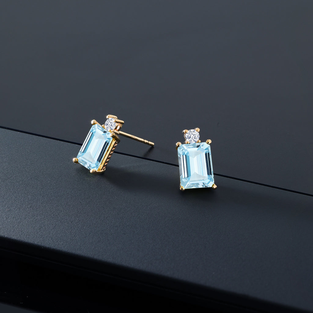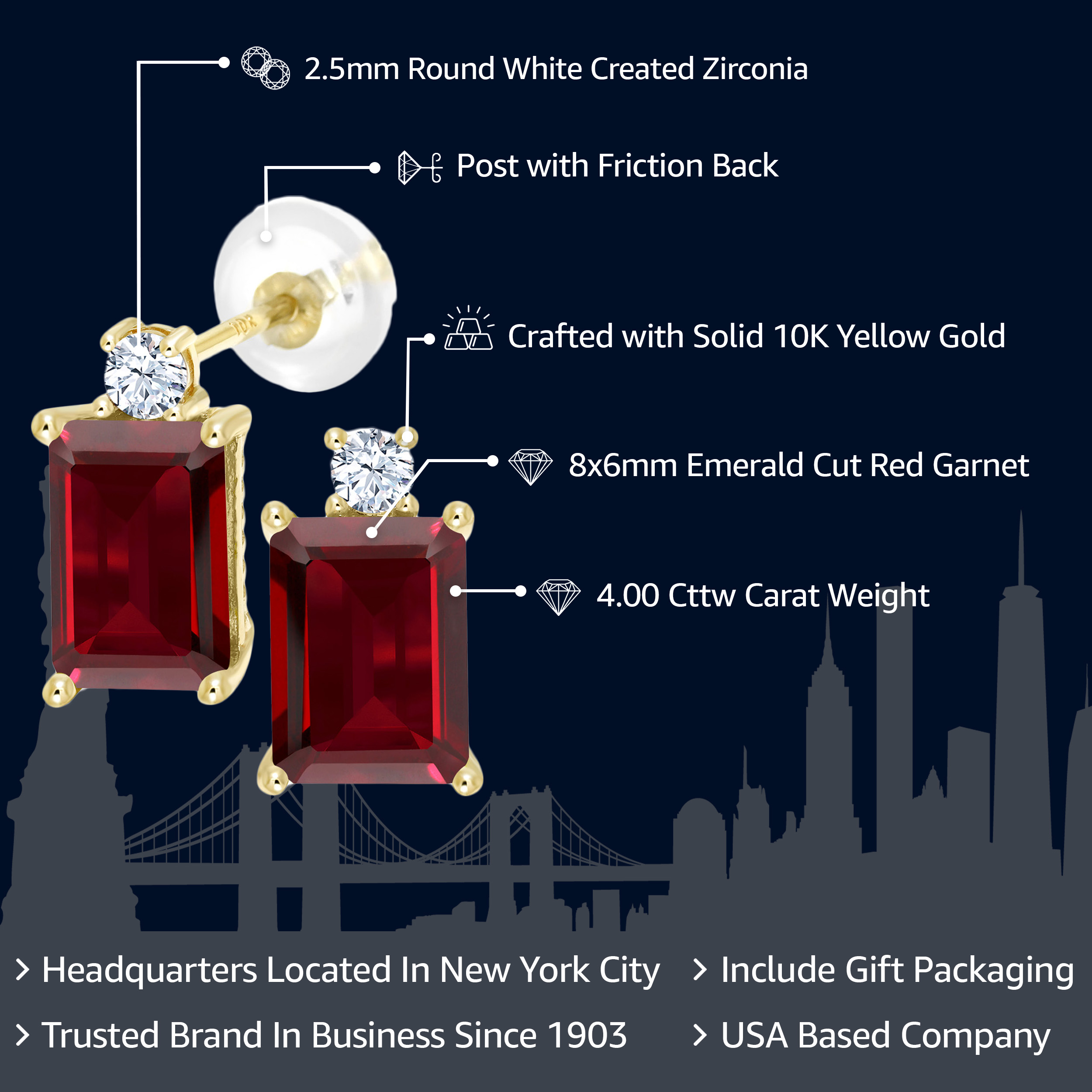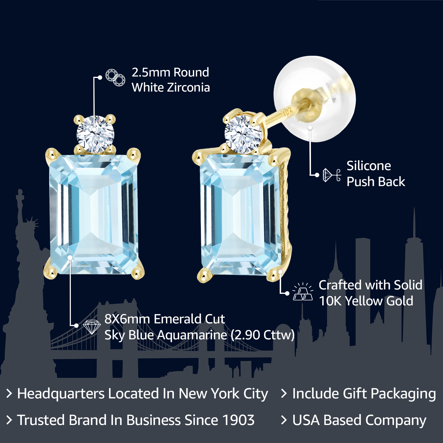 10K Yellow Gold Gemstone Birthstone and White Zirconia Two-Stone Stud Earrings for Women | Emerald Cut 8X6MM with Round 2.5MM Accent | Fine Gold Jewelry for Her Mom Wife