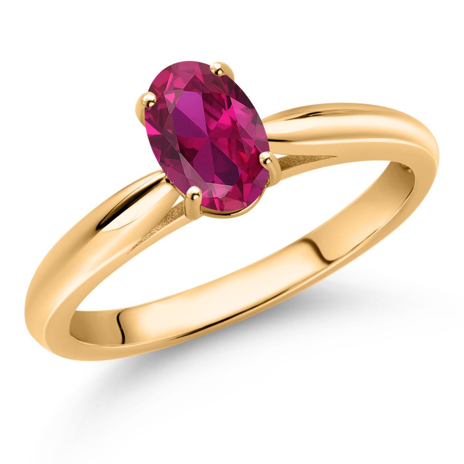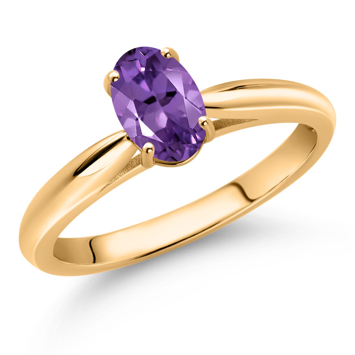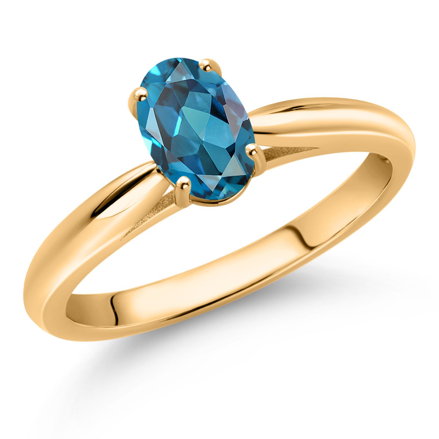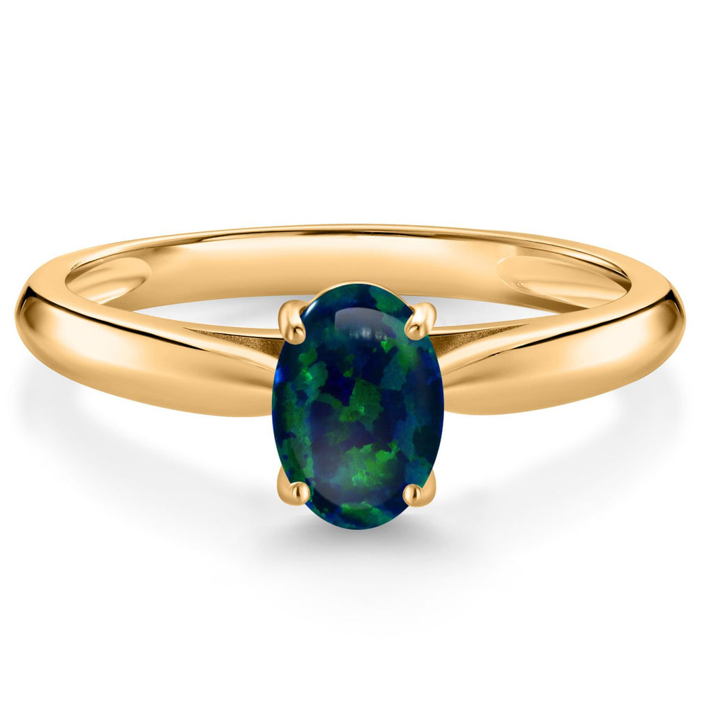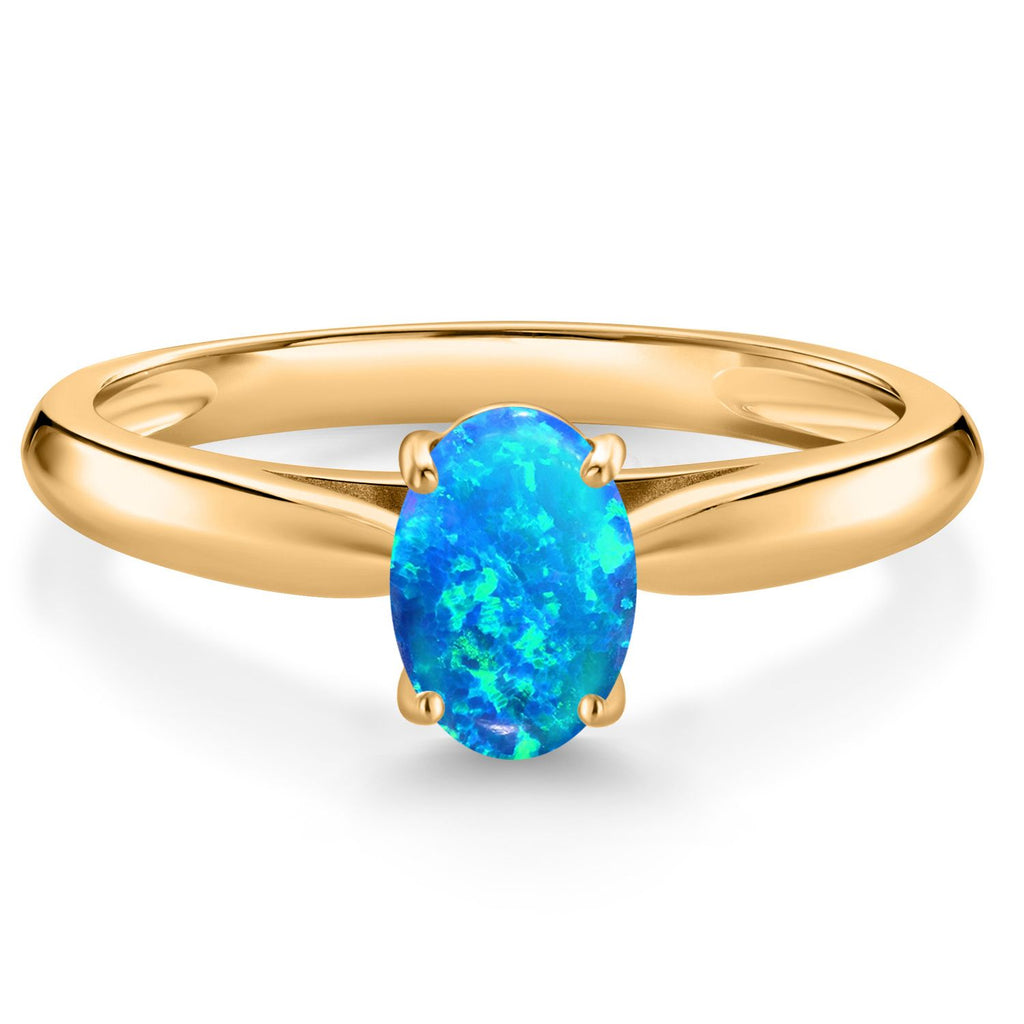 TIMELESS DESIGN AND CHARM: The sleek yellow gold band perfectly complements the vibrant oval gemstone, creating a harmonious blend of modern simplicity and classic elegance. Its minimalist design makes it a versatile piece that enhances any outfit.