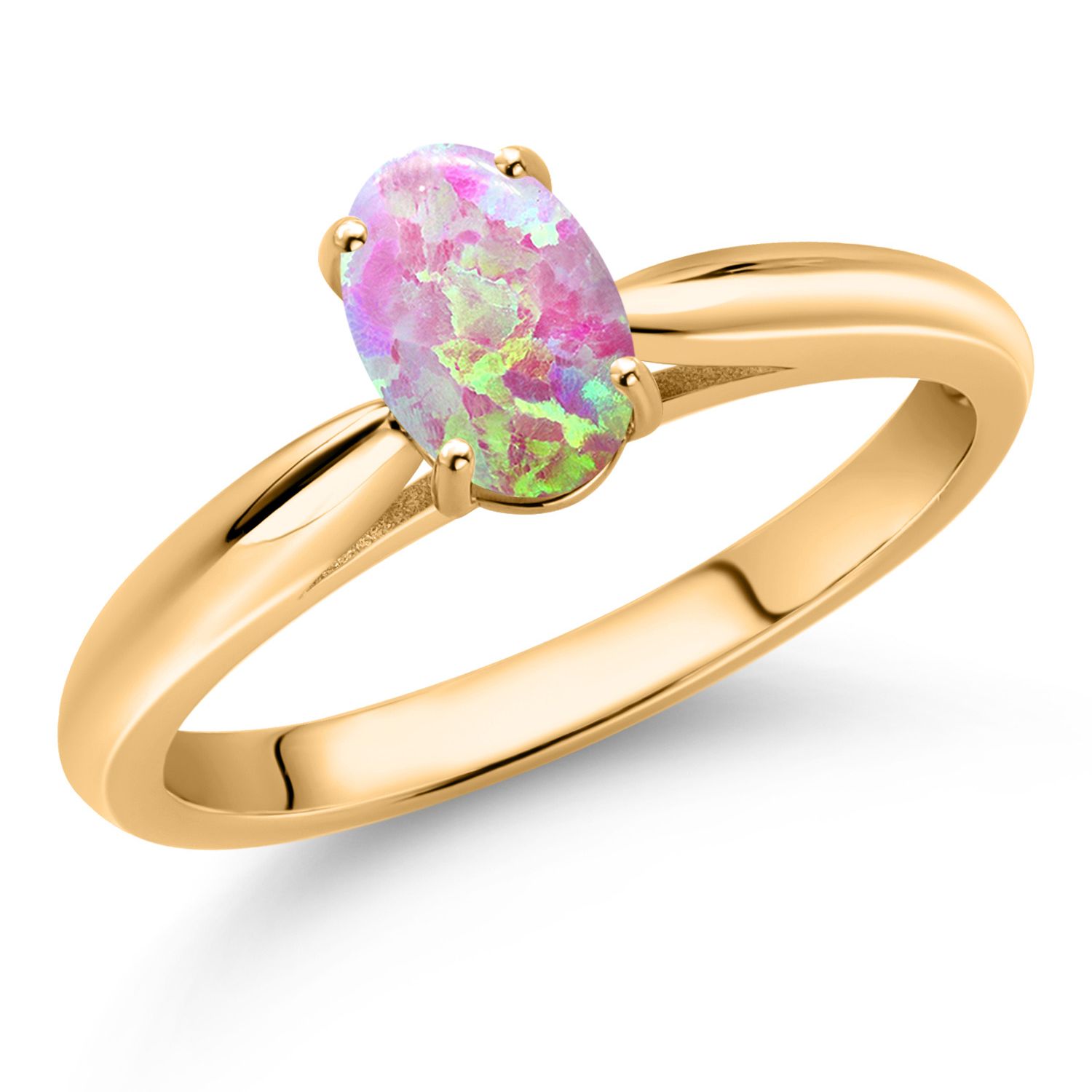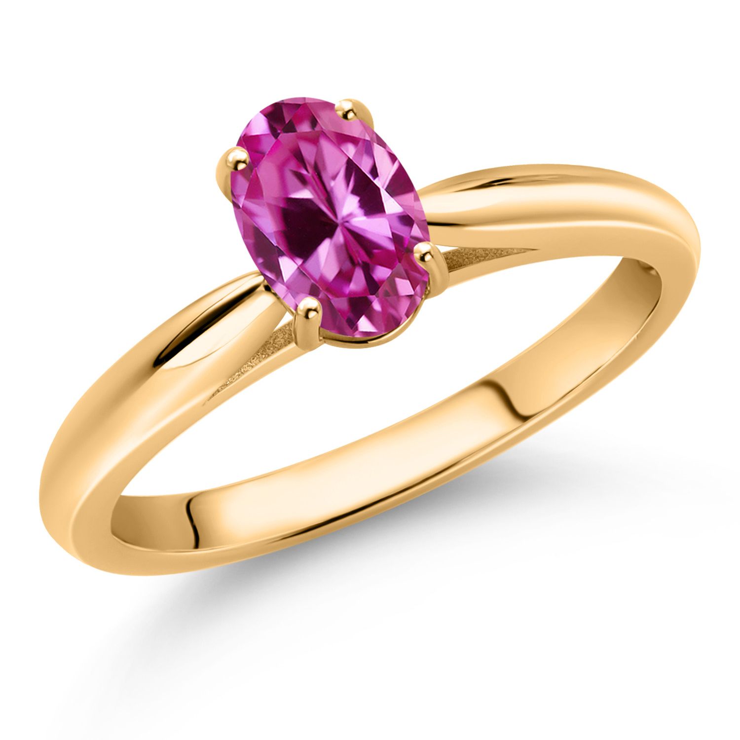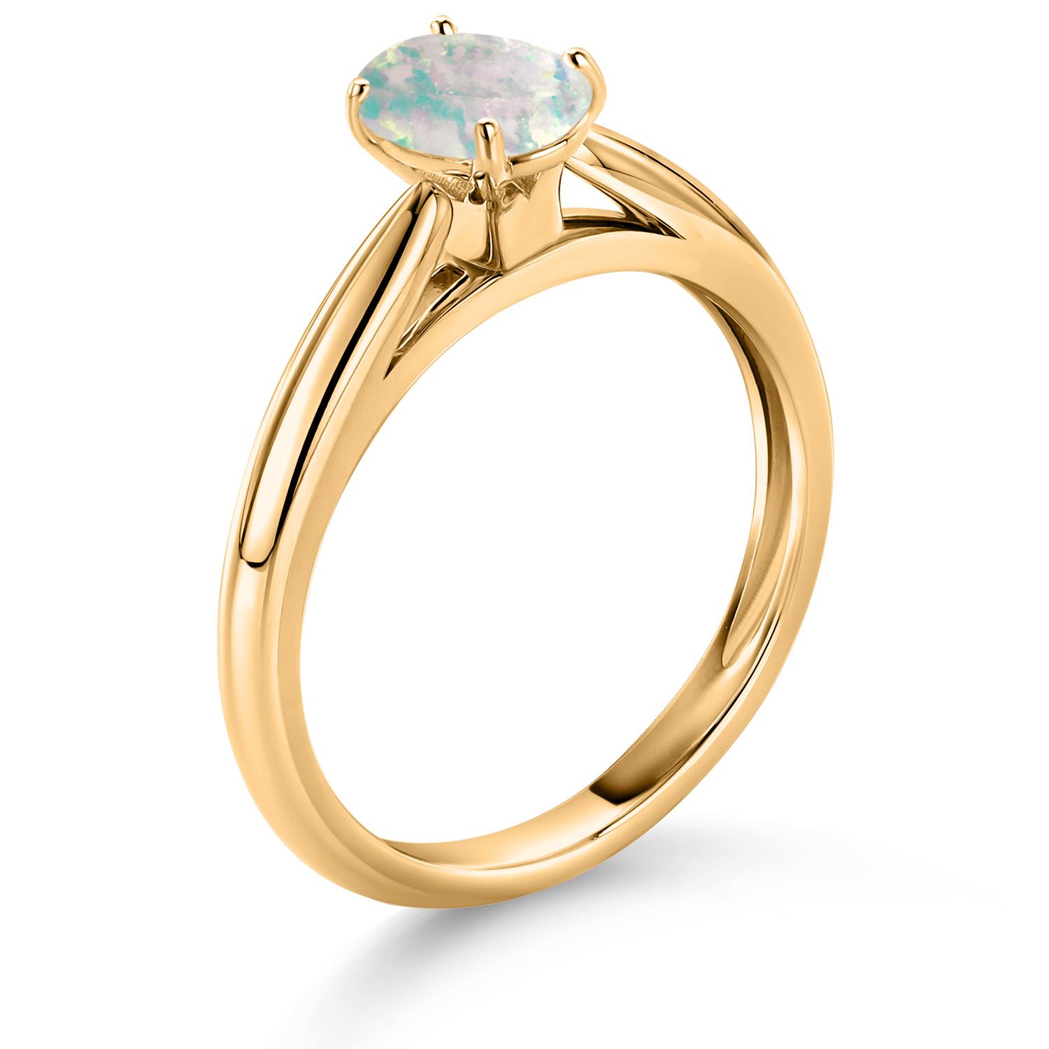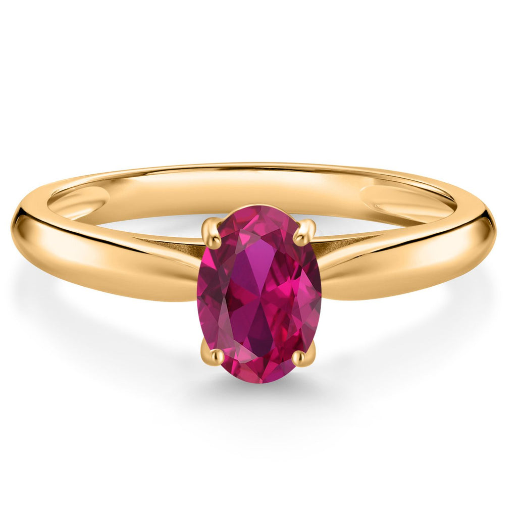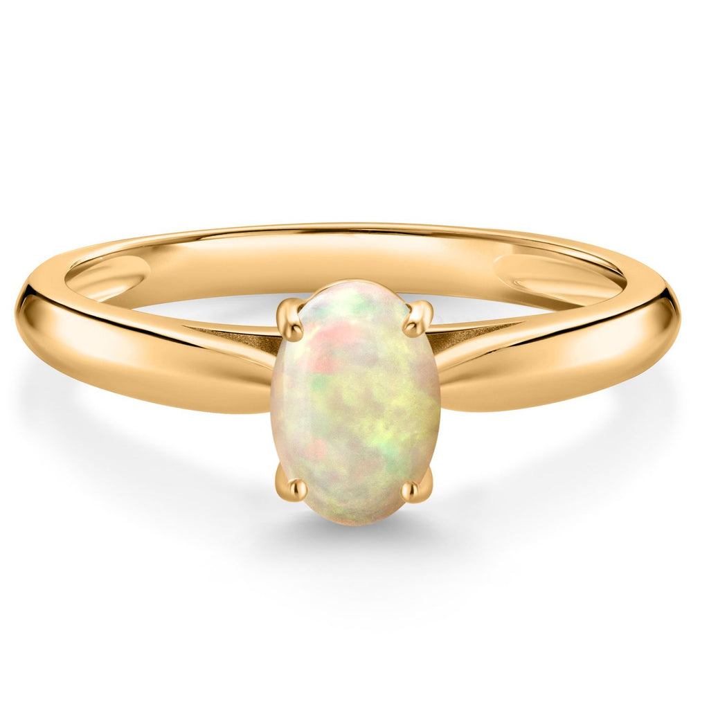 TIMELESS DESIGN AND CHARM: The sleek yellow gold band perfectly complements the vibrant oval gemstone, creating a harmonious blend of modern simplicity and classic elegance. Its minimalist design makes it a versatile piece that enhances any outfit.
