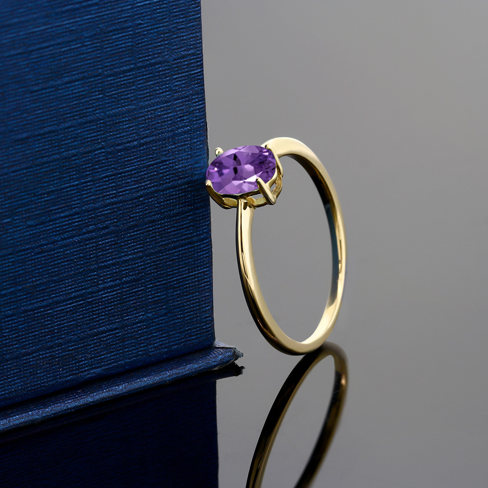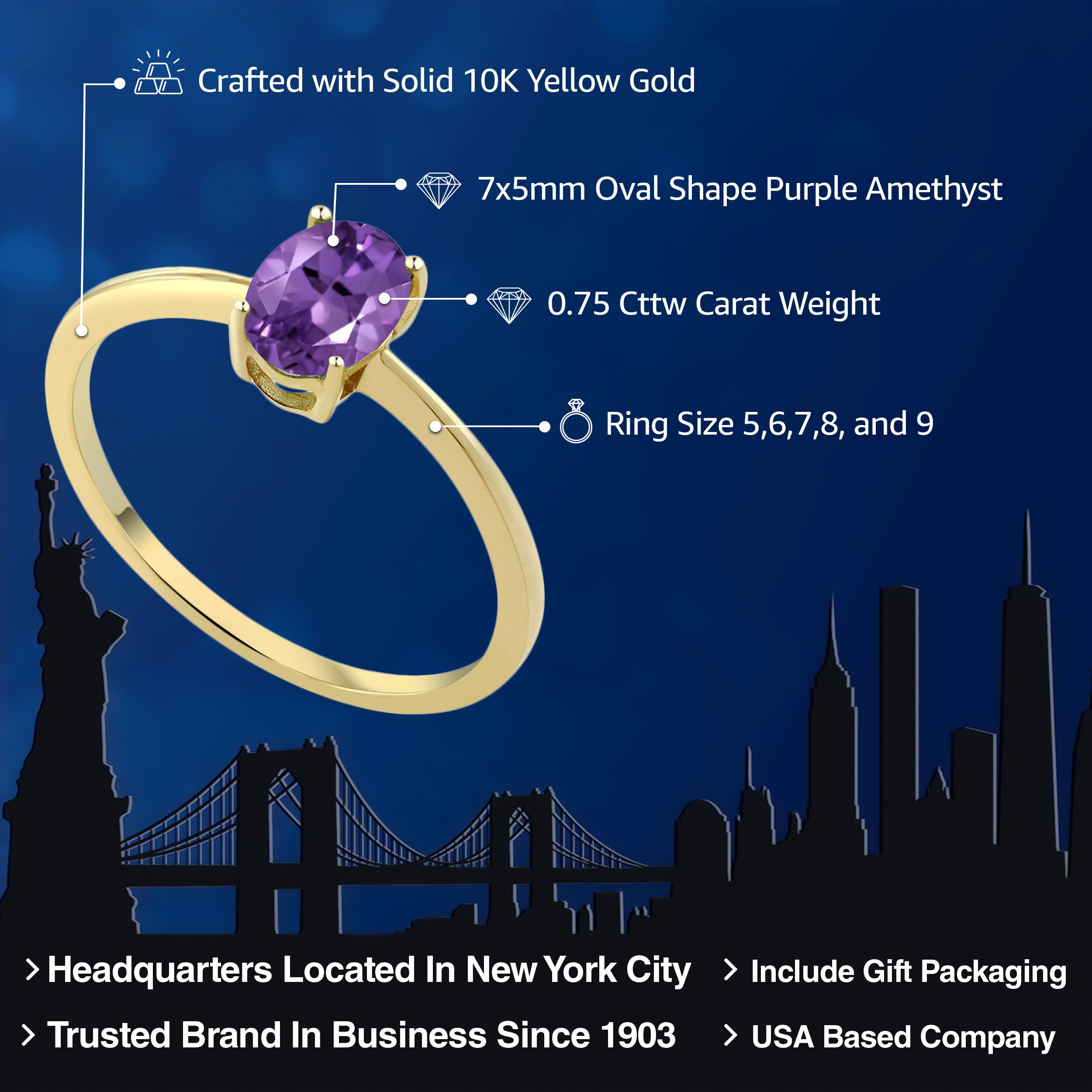 10K Yellow Gold Gemstone Birthstone Solitaire Engagement Ring | Oval 7X5MM | Wedding Anniversary Promise Ring For Women | Available In Size 5, 6, 7, 8, 9