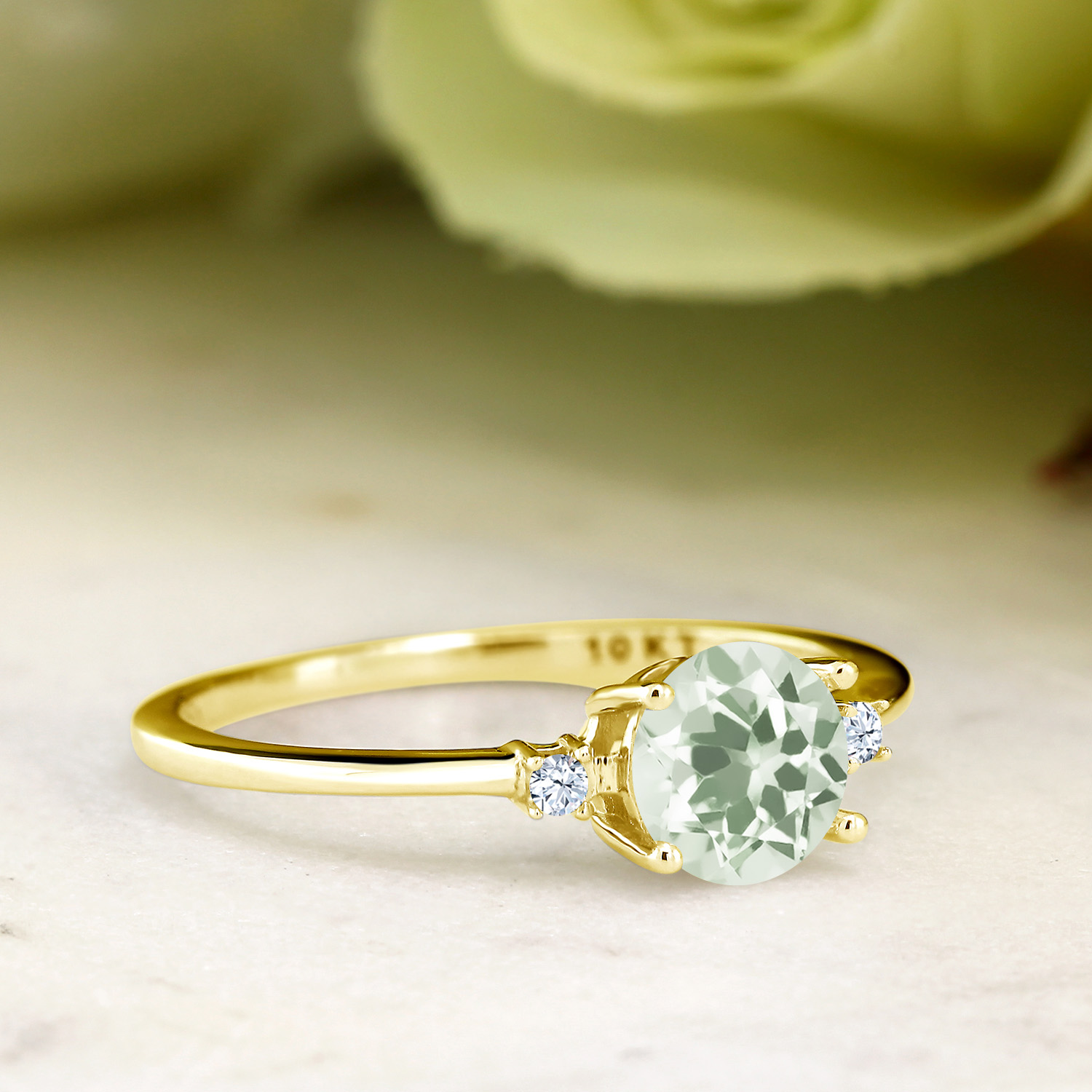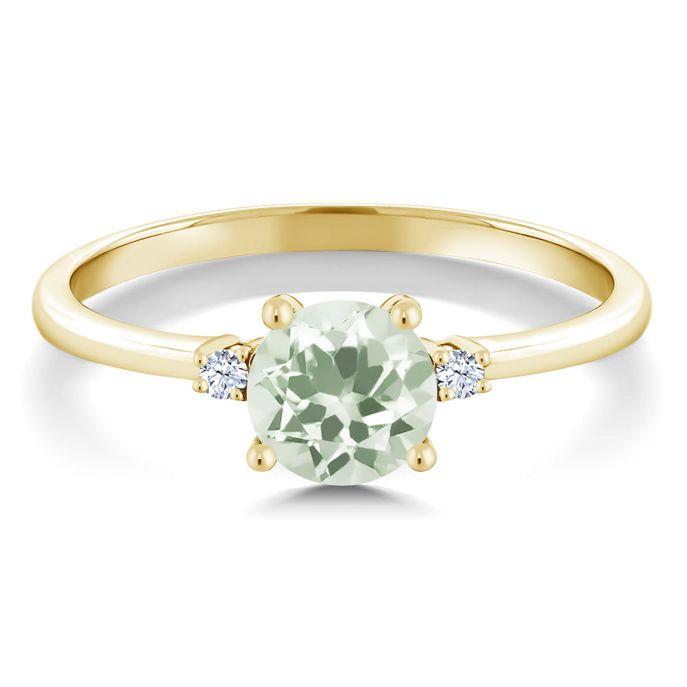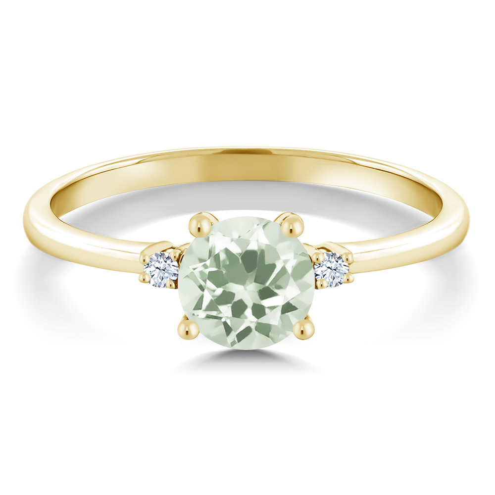 MEASUREMENTS: 6x6mm Round Heat-Treated Green Prasiolite, 1.5x1.5mm Round Heat-Treated White Created Sapphire. Total Carat Weight is 0.98 cttw