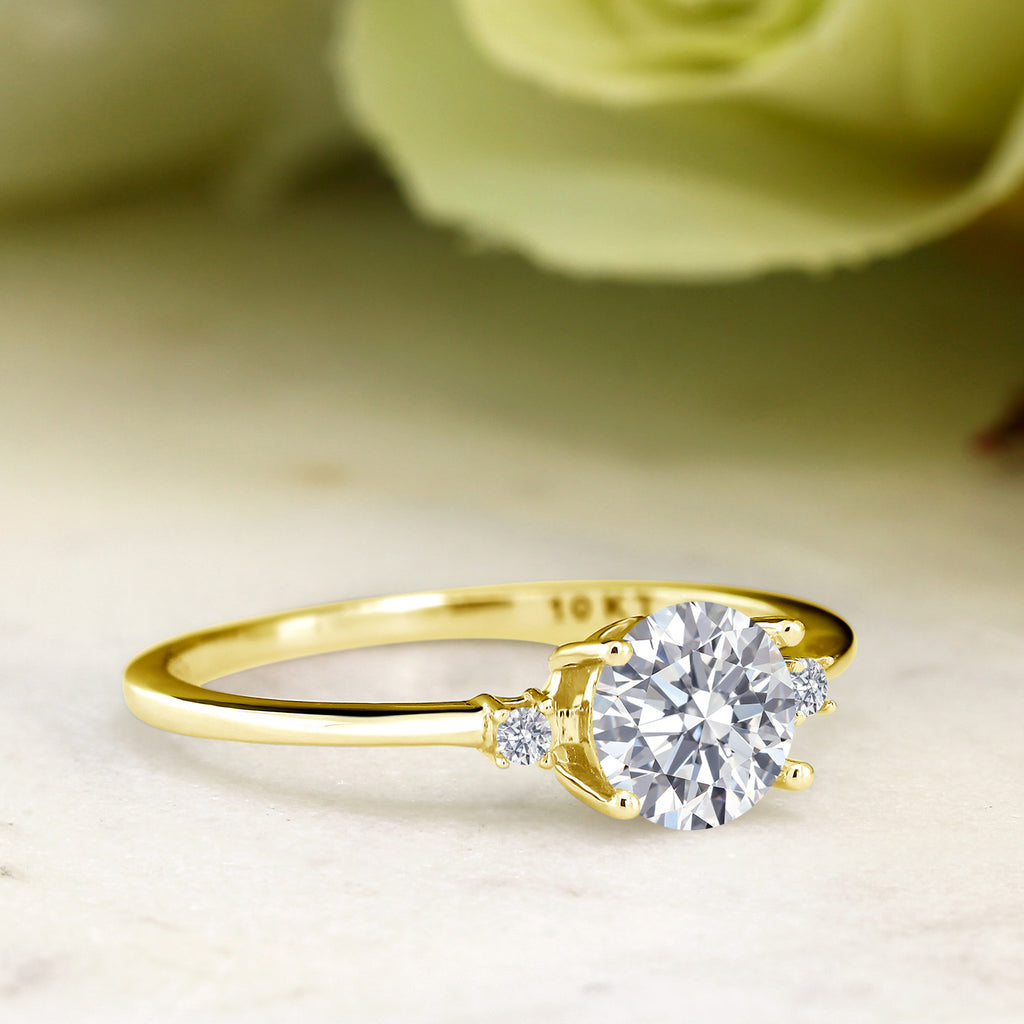 DAZZLING 3-STONE LAB GROWN DIAMOND DESIGN: This exquisite engagement ring features a brilliant 6MM round lab-grown diamond center stone, flanked by two sparkling 1.5MM round lab-grown diamonds, totaling 0.77 Cttw, offering exceptional fire and brilliance with ethical and sustainable origins.