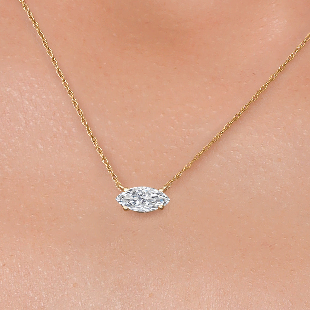 LAB GROWN DIAMOND CENTERPICE: This pendant showcases a brilliant marquise-cut lab grown diamond, graded DEF color and VVS–VS clarity for exceptional sparkle and fire. Its elongated cut maximizes brilliance, offering timeless sophistication as a centerpiece of fine jewelry.