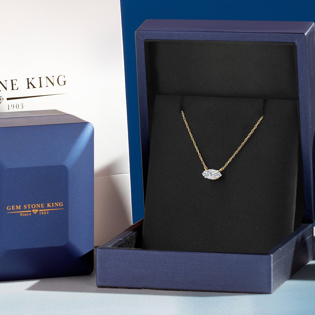 10K Yellow Gold Lab Grown Diamond Pendant Necklace For Women | Marquise Cut | DEF Color | VVS-VS Clarity | Gold Necklace For Women | With 18 Inch Gold Chain
