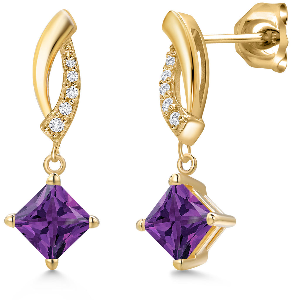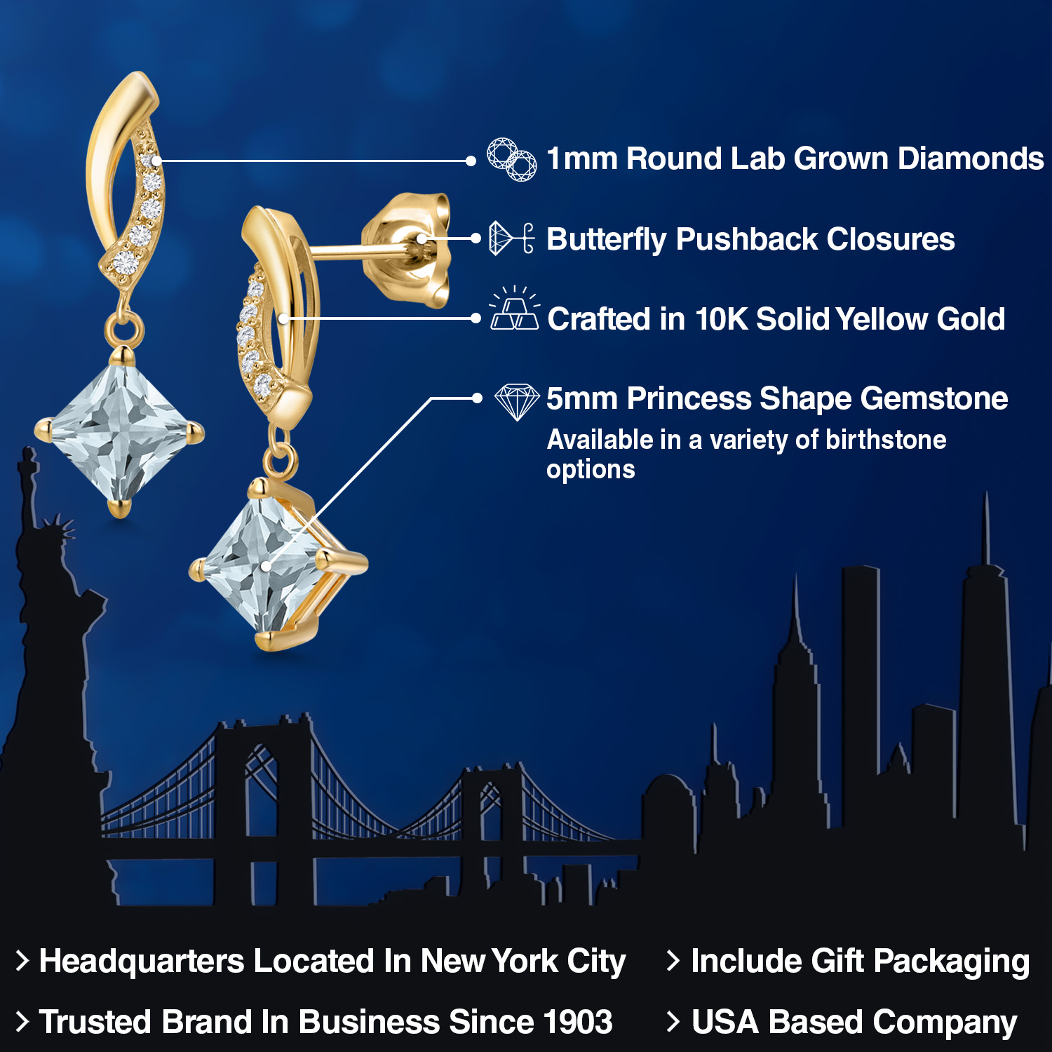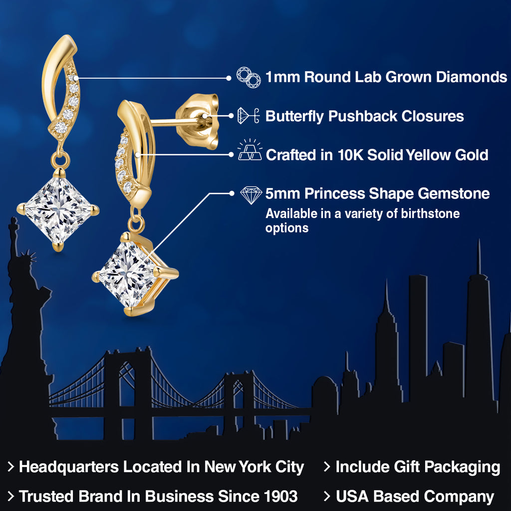 ELEGANT INFINITY DESIGN: These 10K yellow gold dangle earrings feature a sophisticated infinity motif, showcasing vibrant 5MM princess-cut gemstone birthstones paired with sparkling white Lab Grown Diamonds for a timeless and graceful look.