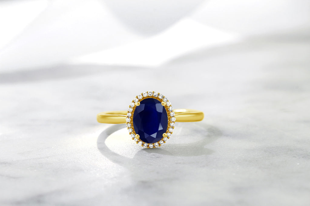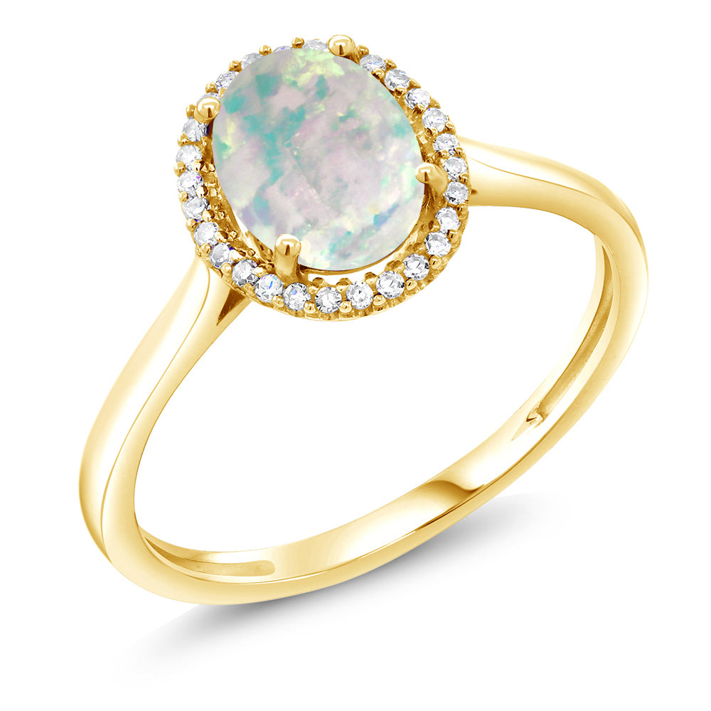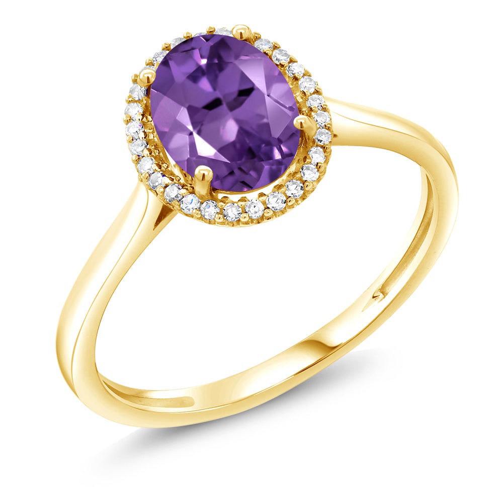 10K Yellow Gold 8X6MM Oval Gemstone Birthstone and White Diamond Halo Engagement Ring | Wedding Anniversary Promise Gold Ring For Women | Available In Size 5-10