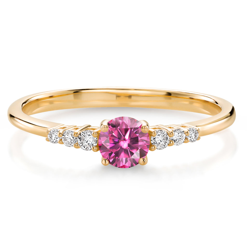 BRILLIANT ROUND BIRTHSTONE CENTERPIECE: Make every moment sparkle with a radiant 4MM round-cut Pink Moissanite, perfectly sized for elegant everyday brilliance with 0.32 Cttw. Whether as a promise, anniversary, or engagement ring, the richly colored center stone captures attention with its fire and personalized beauty.