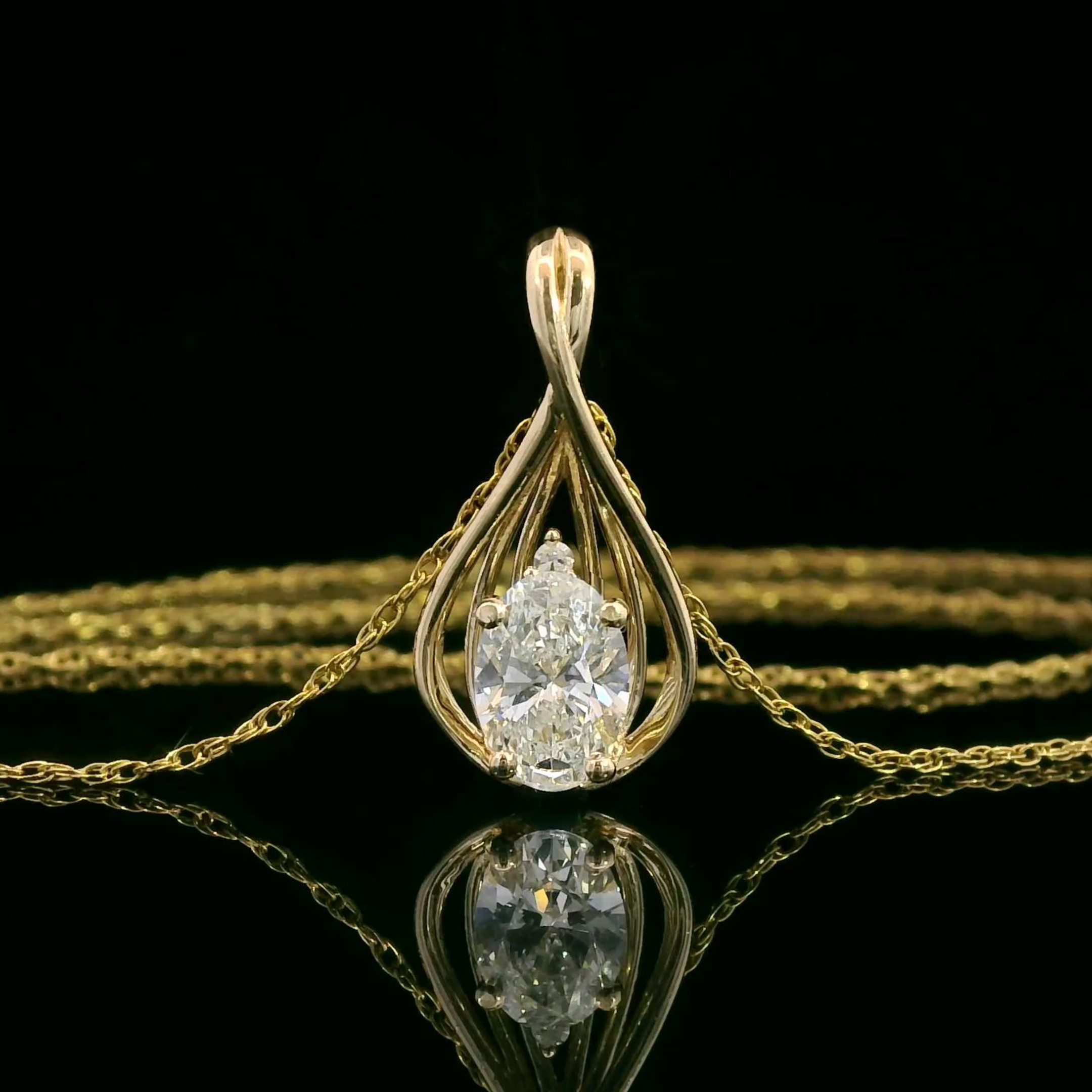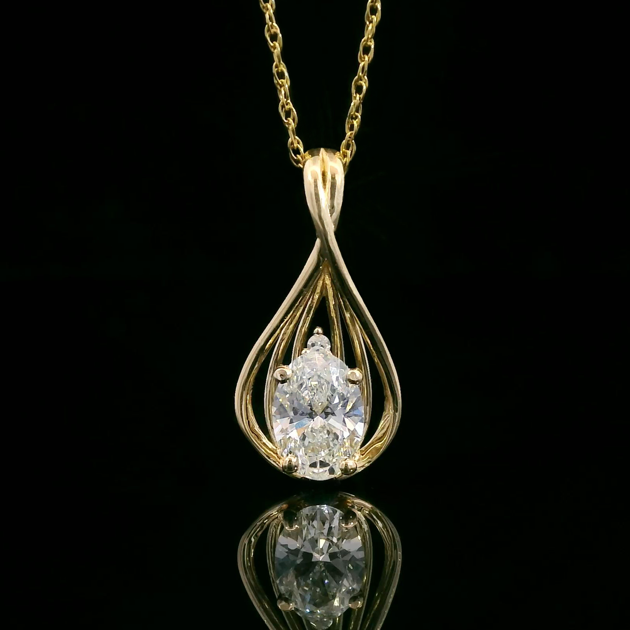 DIAMOND ACCENT & TEARDROP DESIGN: Above the gemstone sparkles a white diamond accent, adding brilliance and contrast to the rich center stone. The diamond’s sparkle is framed by a graceful teardrop-shaped setting with intertwining gold lines that symbolize elegance and flow. Together, the diamond detail and unique teardrop design transform this necklace into a piece of art that balances timeless charm and modern sophistication.