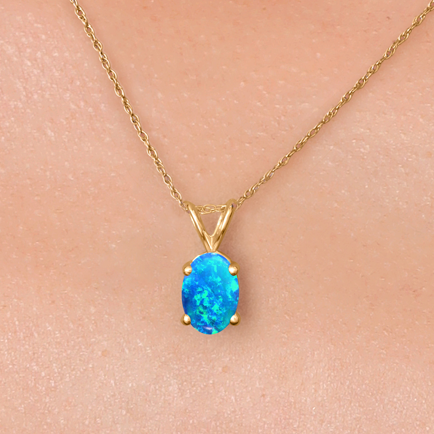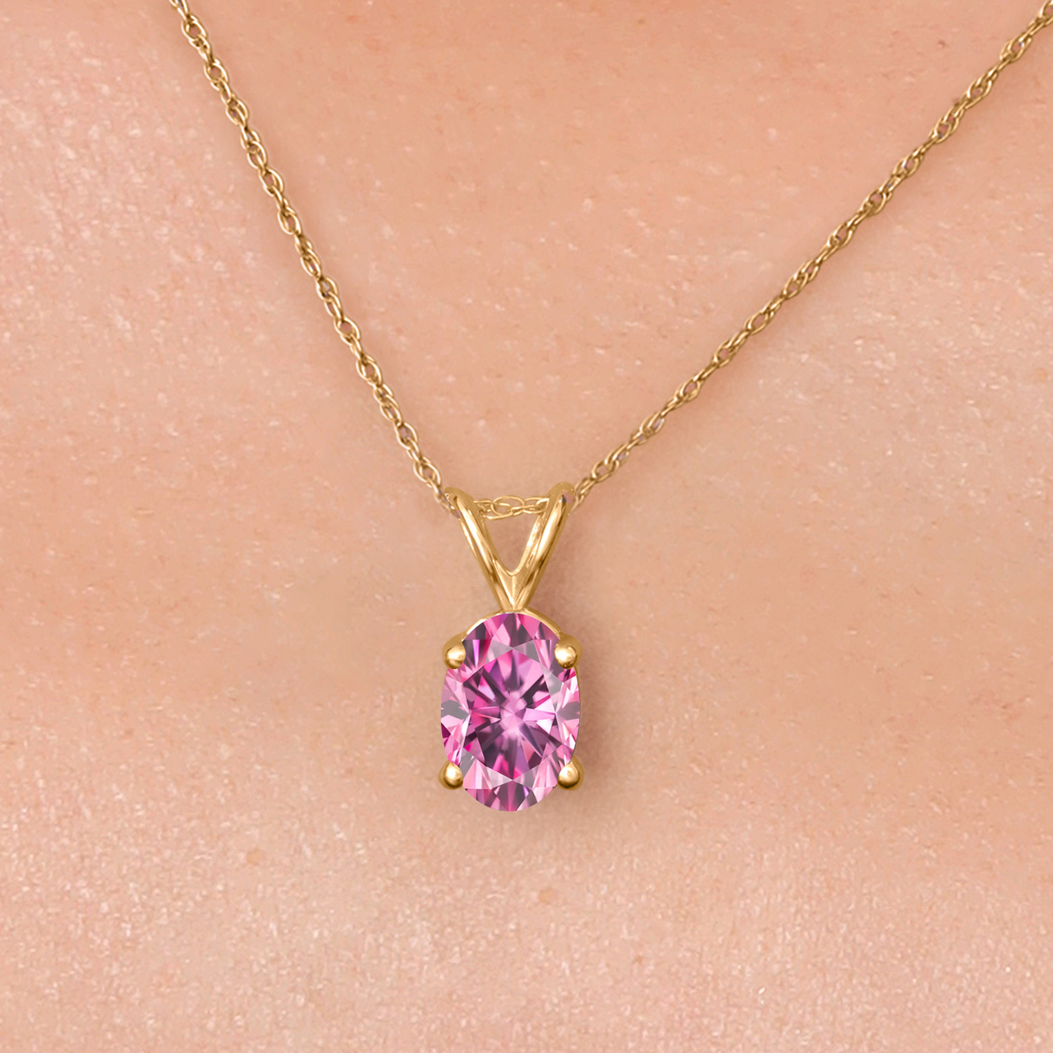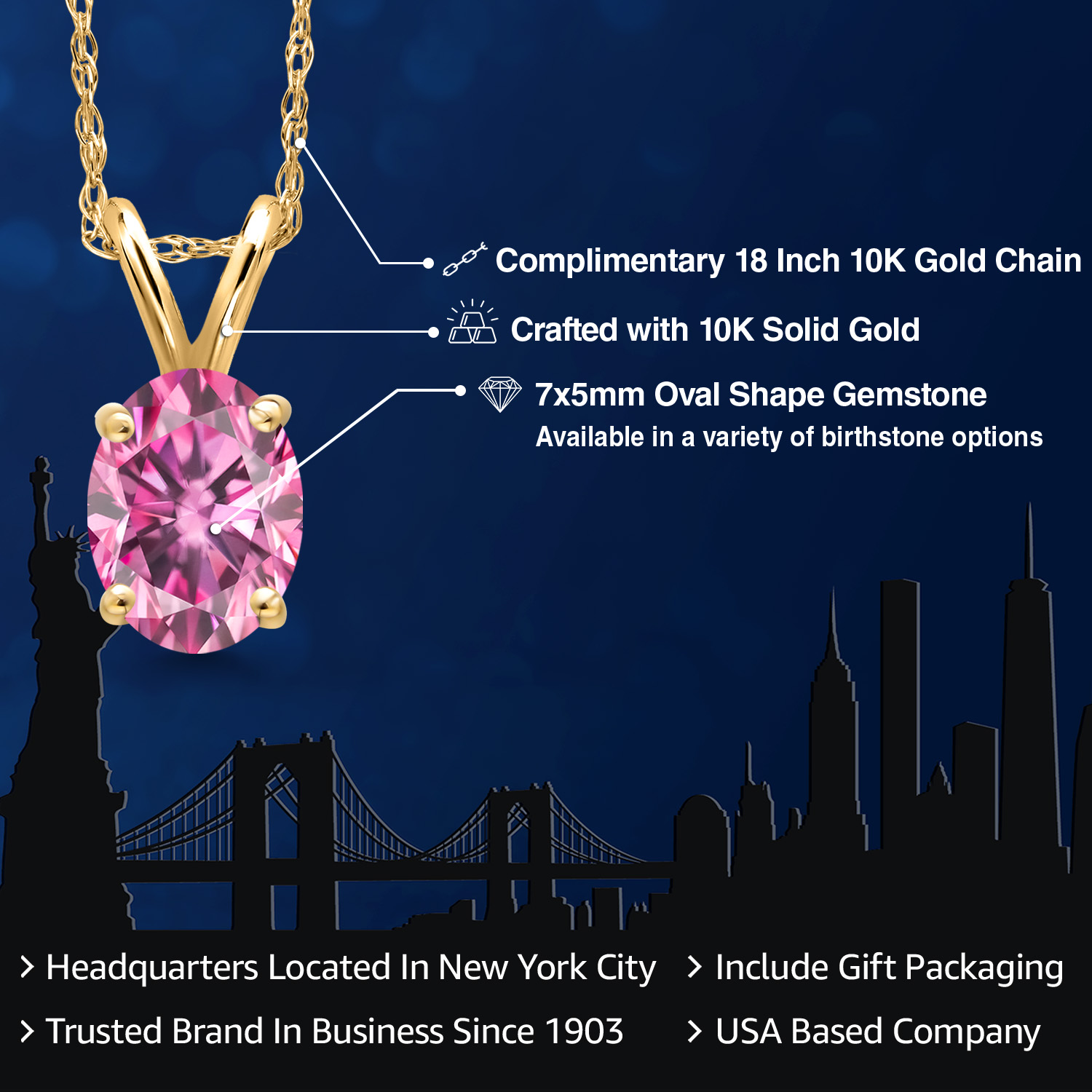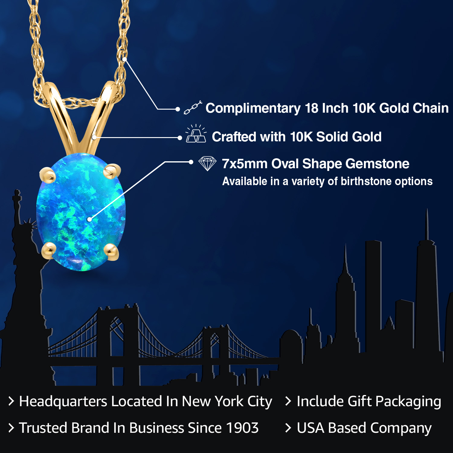 10K Yellow Gold 7X5MM Oval Gemstone Birthstone Solitaire Pendant Necklace | Gold Necklace for Women | 18 Inch Gold Chain