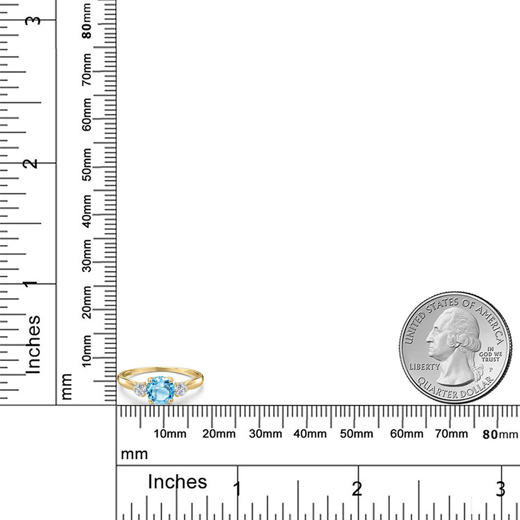10K Yellow Gold Swiss Blue Topaz and Lab Grown Diamond 3-Stone Engagement Ring For Women | 1.22 Cttw | Round 6MM | Three Stone Wedding Anniversary Promise Ring For Women