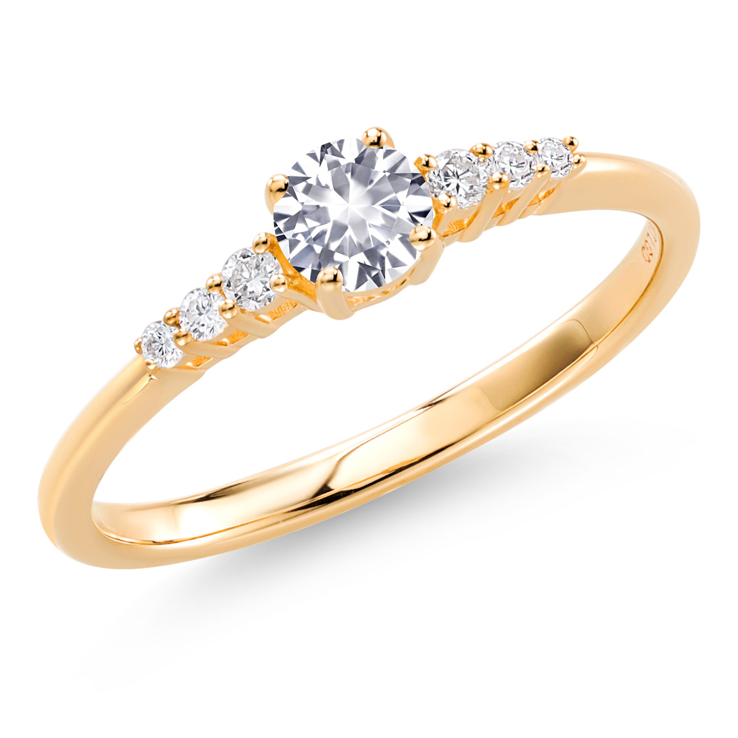 MEASUREMENTS: 4x4mm Round Heat-Treated White Created Sapphire, 1.5x1.5mm Round E - F Lab Grown Diamond. Total Carat Weight is 0.34 cttw