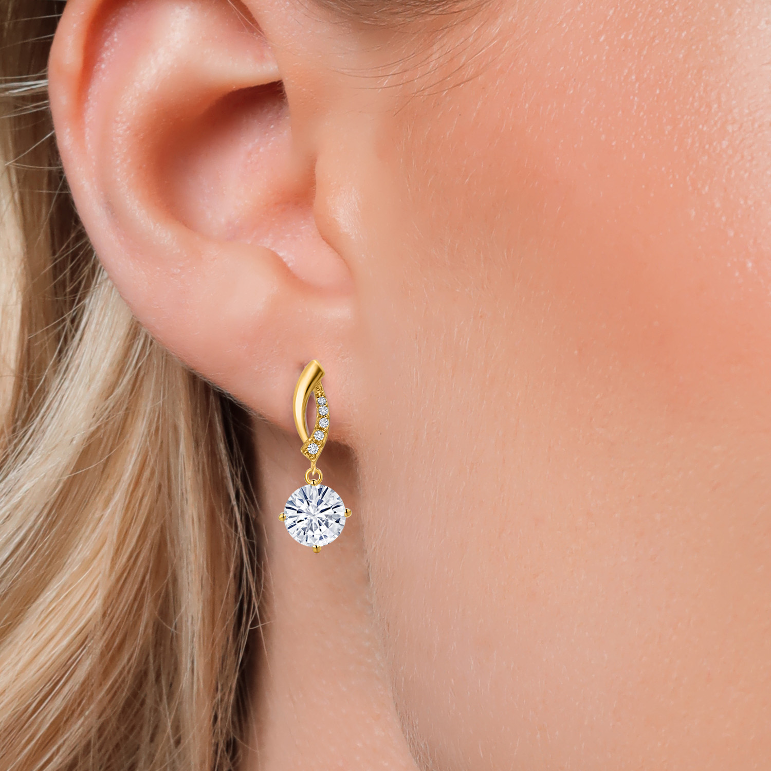 INFINITY DROP DESIGN WITH LAB GROWN DIAMONDS: Featuring a fluid infinity-inspired silhouette, these drop earrings symbolize everlasting elegance and connection. The upper curve is adorned with sparkling lab grown diamond accents, adding subtle brilliance that enhances the design’s graceful flow. This modern yet timeless style creates a sophisticated frame for the 6.5MM round center stone, perfect for refined everyday wear or meaningful gifting.