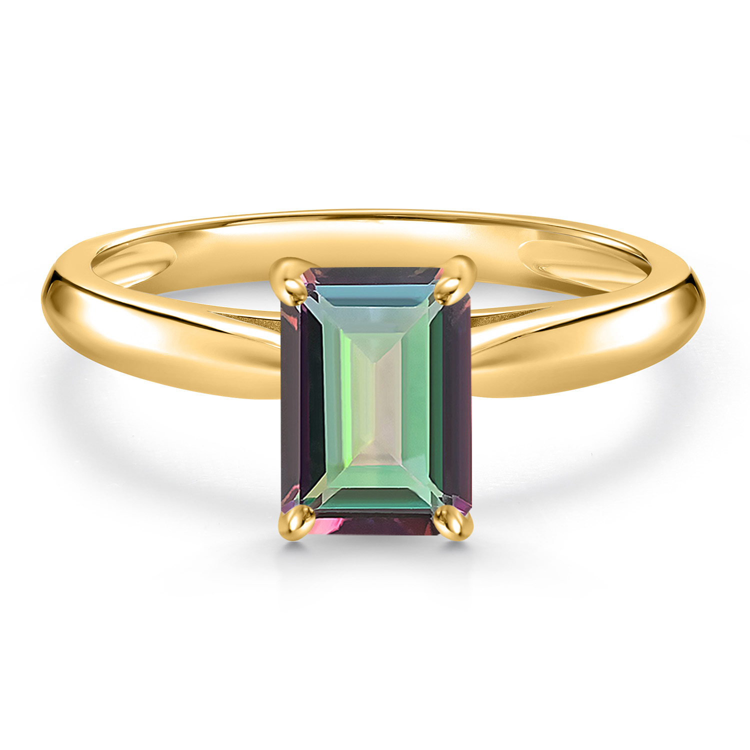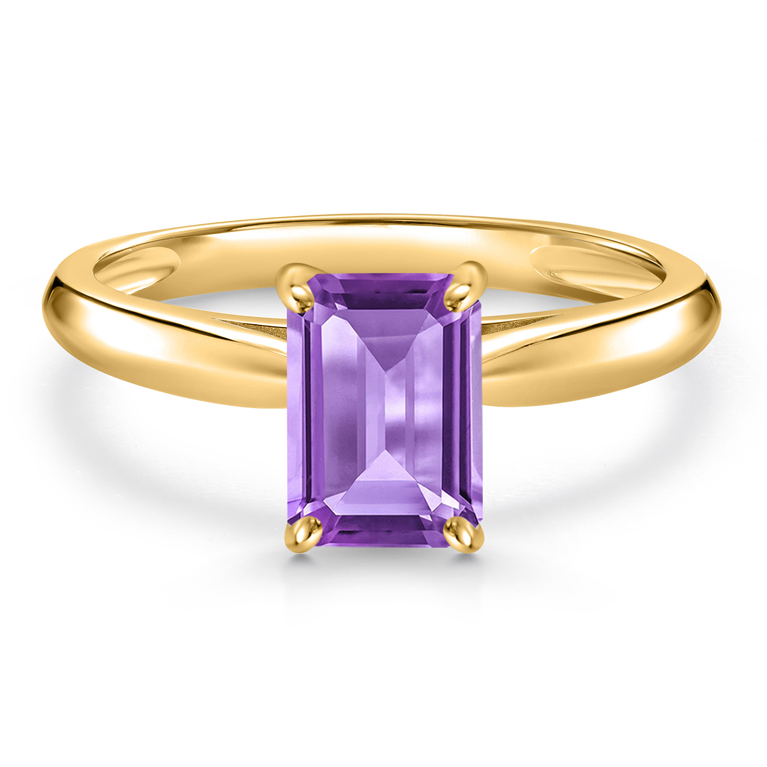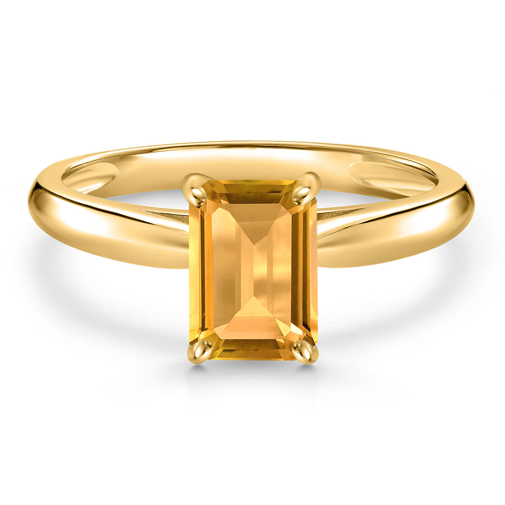 10K Yellow Gold Gemstone Birthstone Solitaire Engagement Ring For Women | Emerald Cut 7X5MM | Wedding Anniversary Promise Ring For Women | Available in Size 5,6,7,8,9