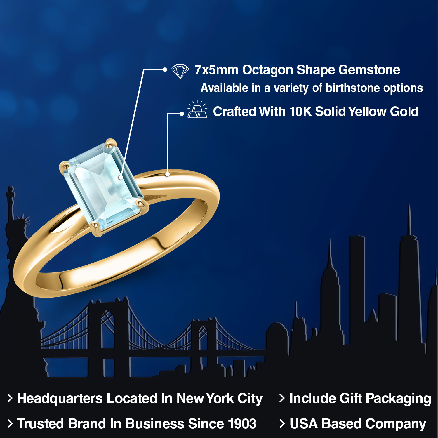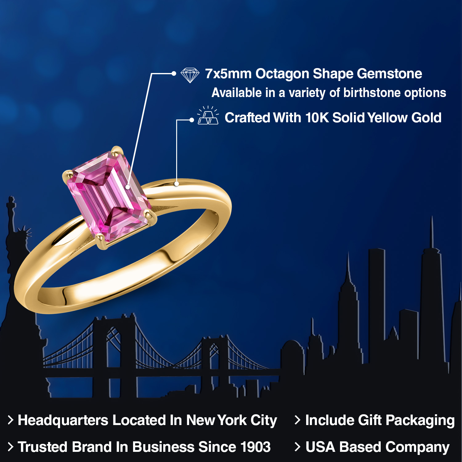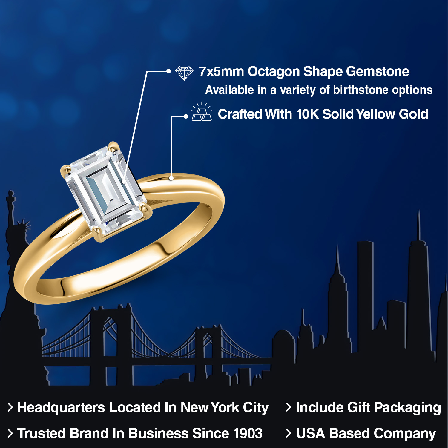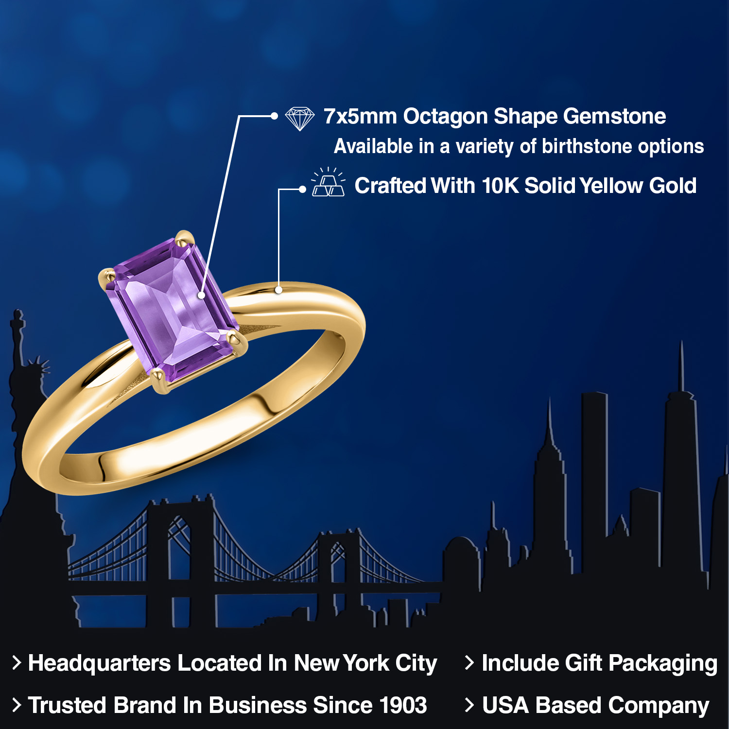 OCTAGON-CUT GEMSTONE BRILLIANCE: This exquisite engagement ring showcases a striking 7X5MM octagon-cut gemstone, meticulously faceted to capture and reflect light with unparalleled brilliance. Each gemstone is carefully selected for its clarity and vibrant color, offering a stunning birthstone option that resonates with personal significance. The octagon shape adds a modern twist to a classic design, symbolizing strength and elegance in every facet.