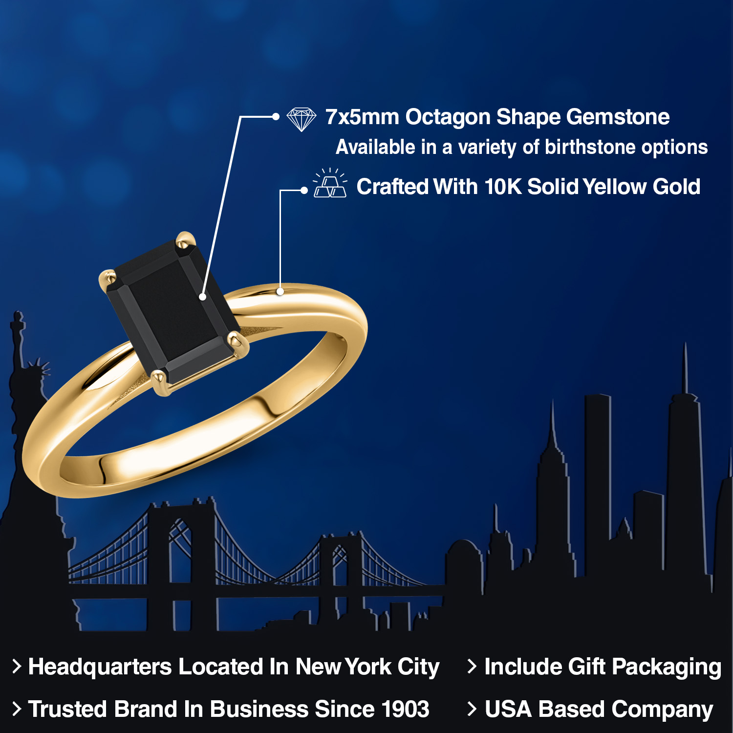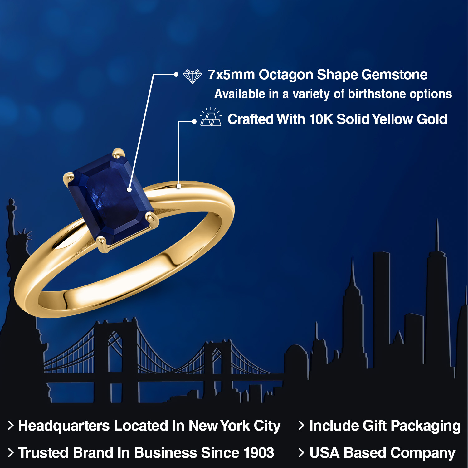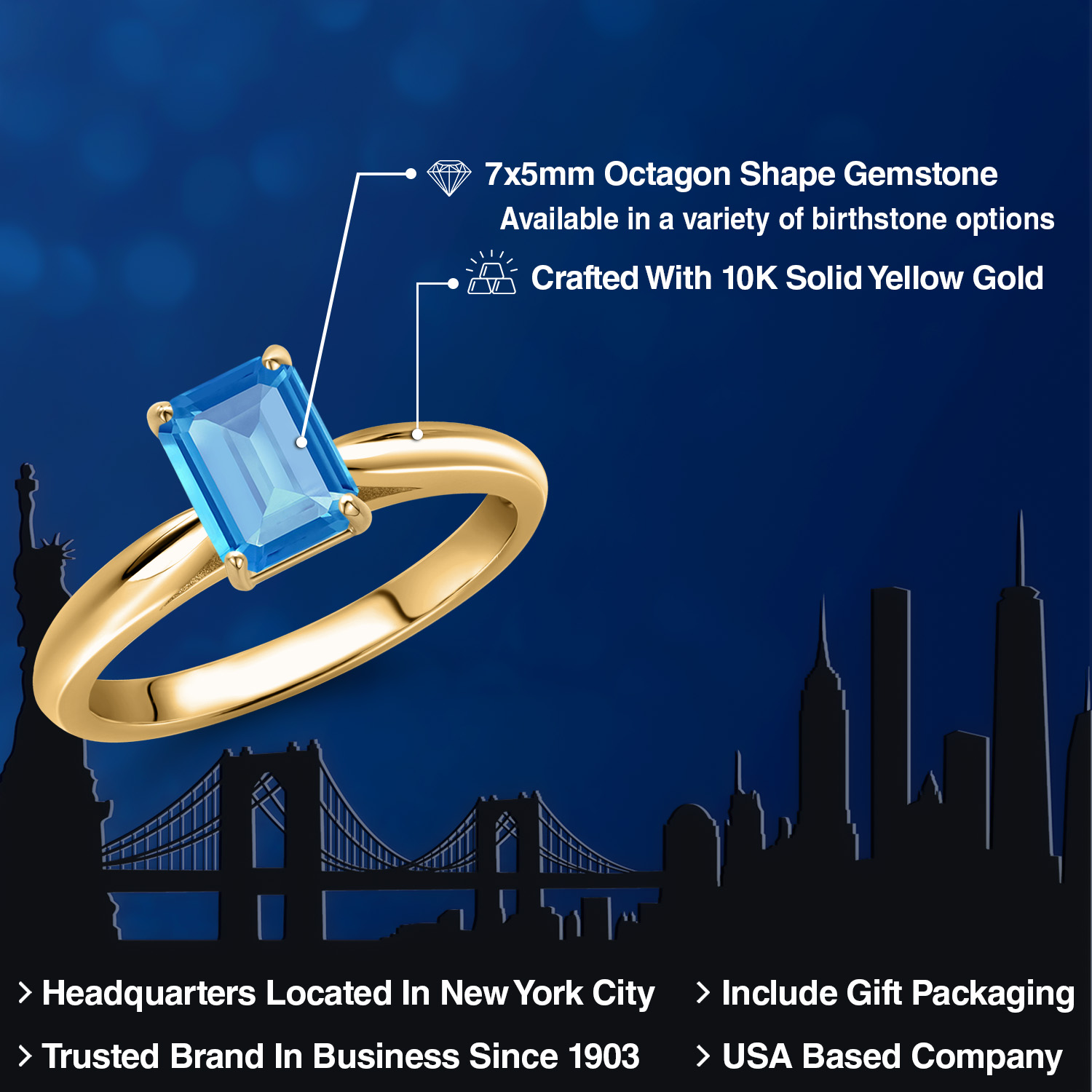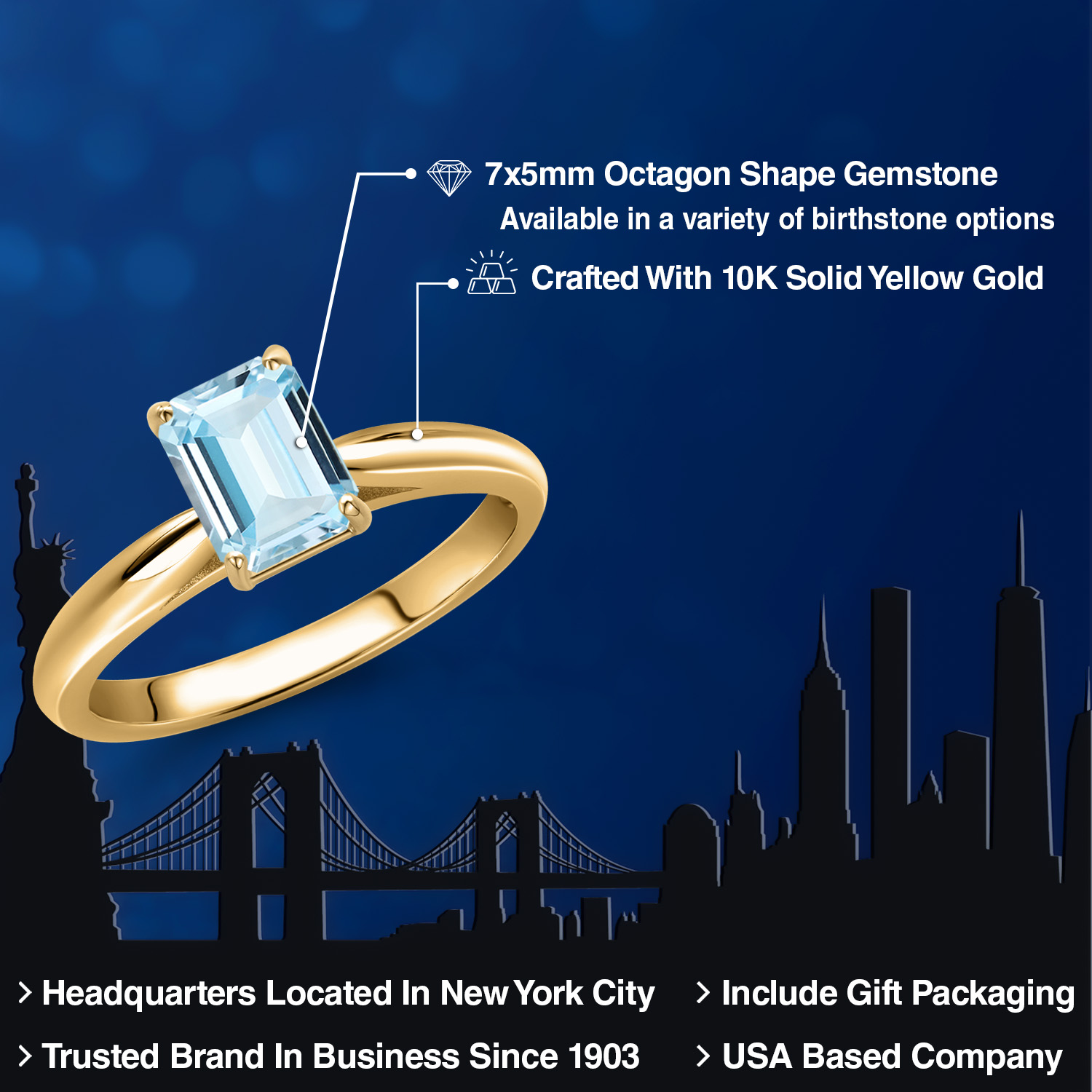 OCTAGON-CUT GEMSTONE BRILLIANCE: This exquisite engagement ring showcases a striking 7X5MM octagon-cut gemstone, meticulously faceted to capture and reflect light with unparalleled brilliance. Each gemstone is carefully selected for its clarity and vibrant color, offering a stunning birthstone option that resonates with personal significance. The octagon shape adds a modern twist to a classic design, symbolizing strength and elegance in every facet.