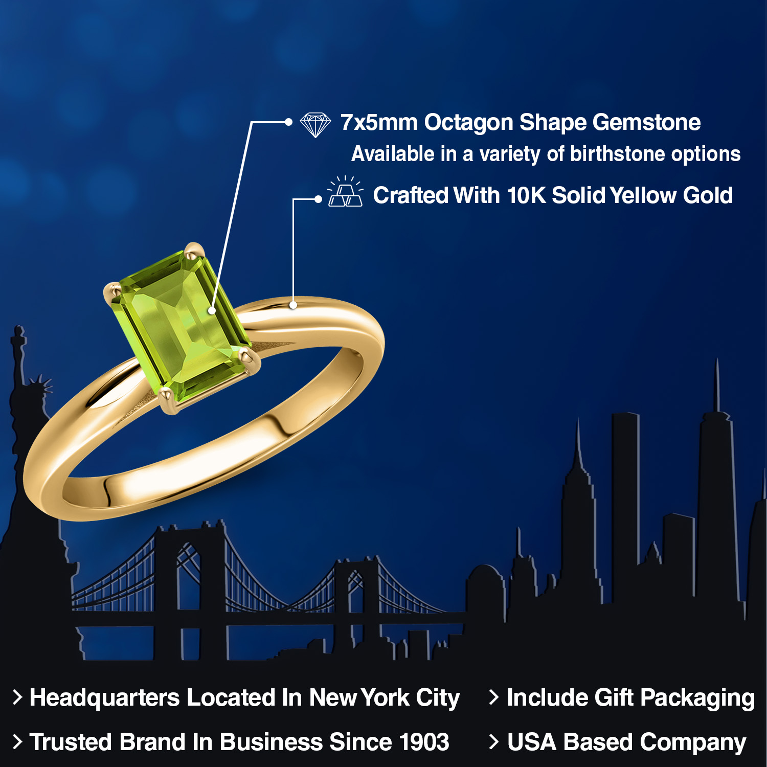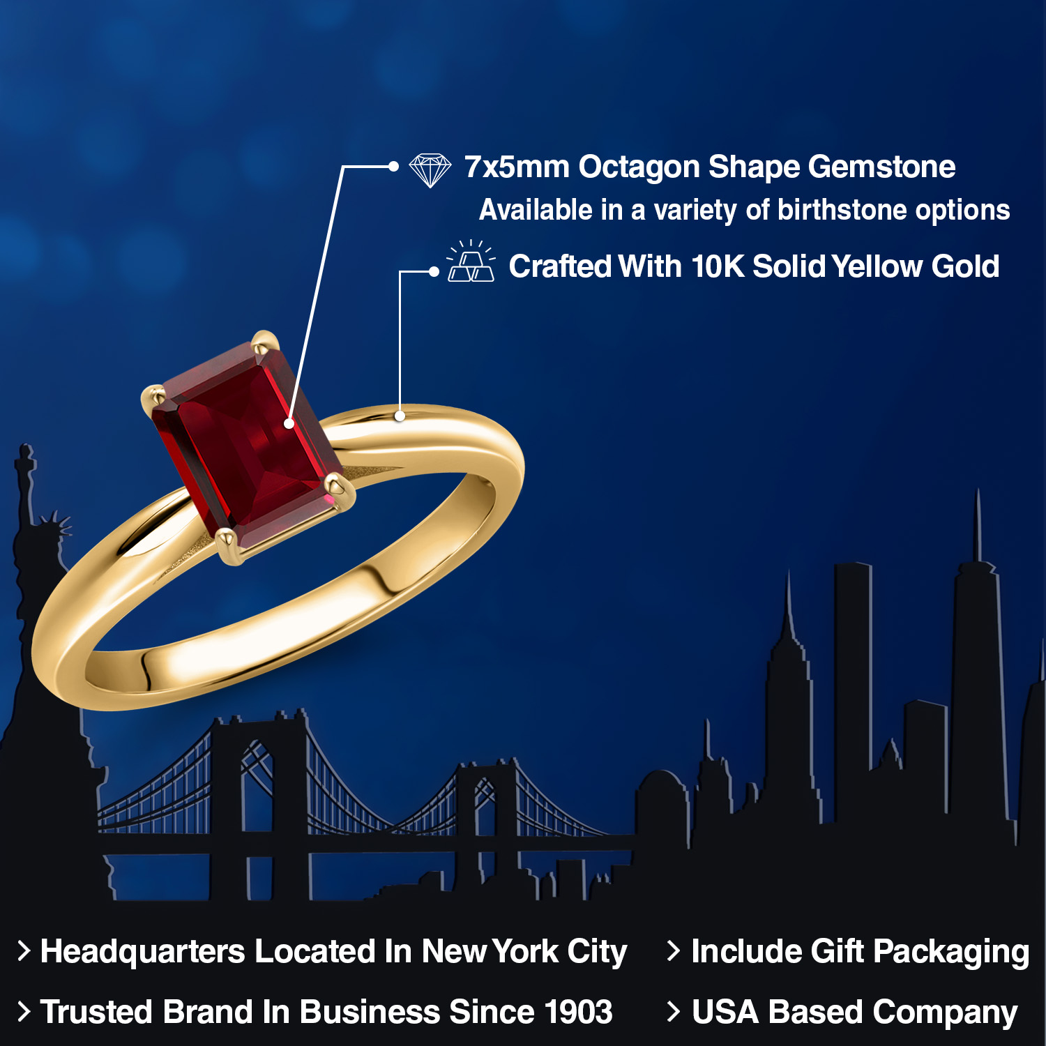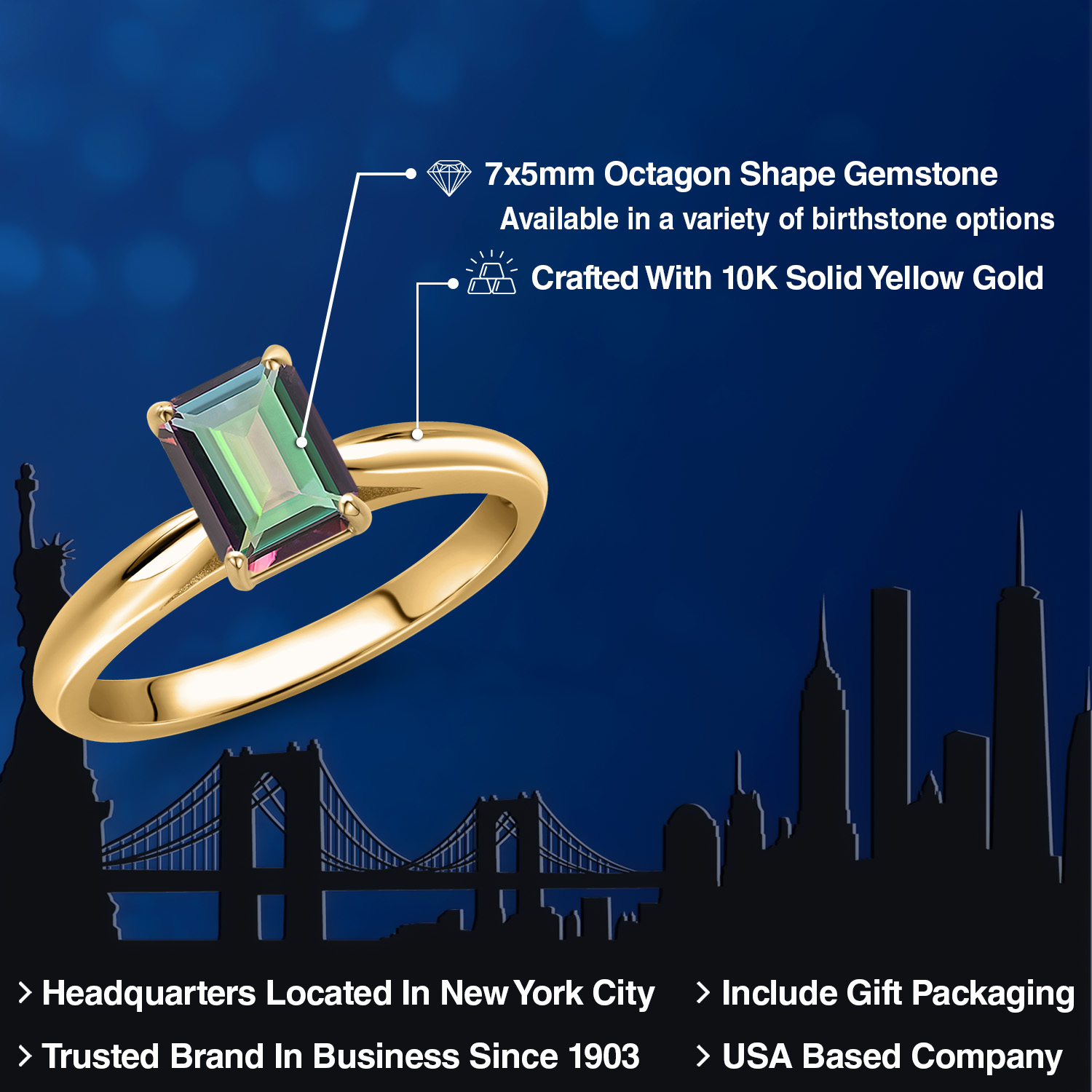 10K YELLOW GOLD ELEGANCE: Crafted from high-quality 10K yellow gold, this ring exudes timeless elegance and sophistication. The warm, lustrous hue of the gold beautifully complements the vibrant gemstone, creating a harmonious blend of color and shine. Known for its durability and hypoallergenic properties, the 10K gold ensures that the ring is not only a stunning piece of jewelry but also a safe and comfortable choice for everyday wear, promising longevity and enduring beauty.