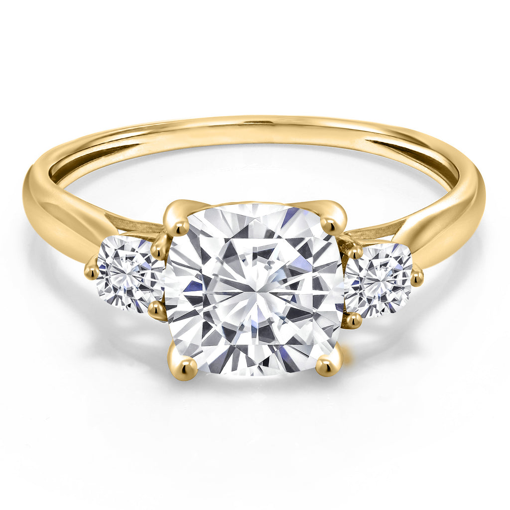 MEASUREMENTS: 7x7mm Cushion Near Colorless (GH) Moissanite, 3x3mm Cushion Near Colorless (GH) Moissanite. Total Carat Weight is 1.96 cttw