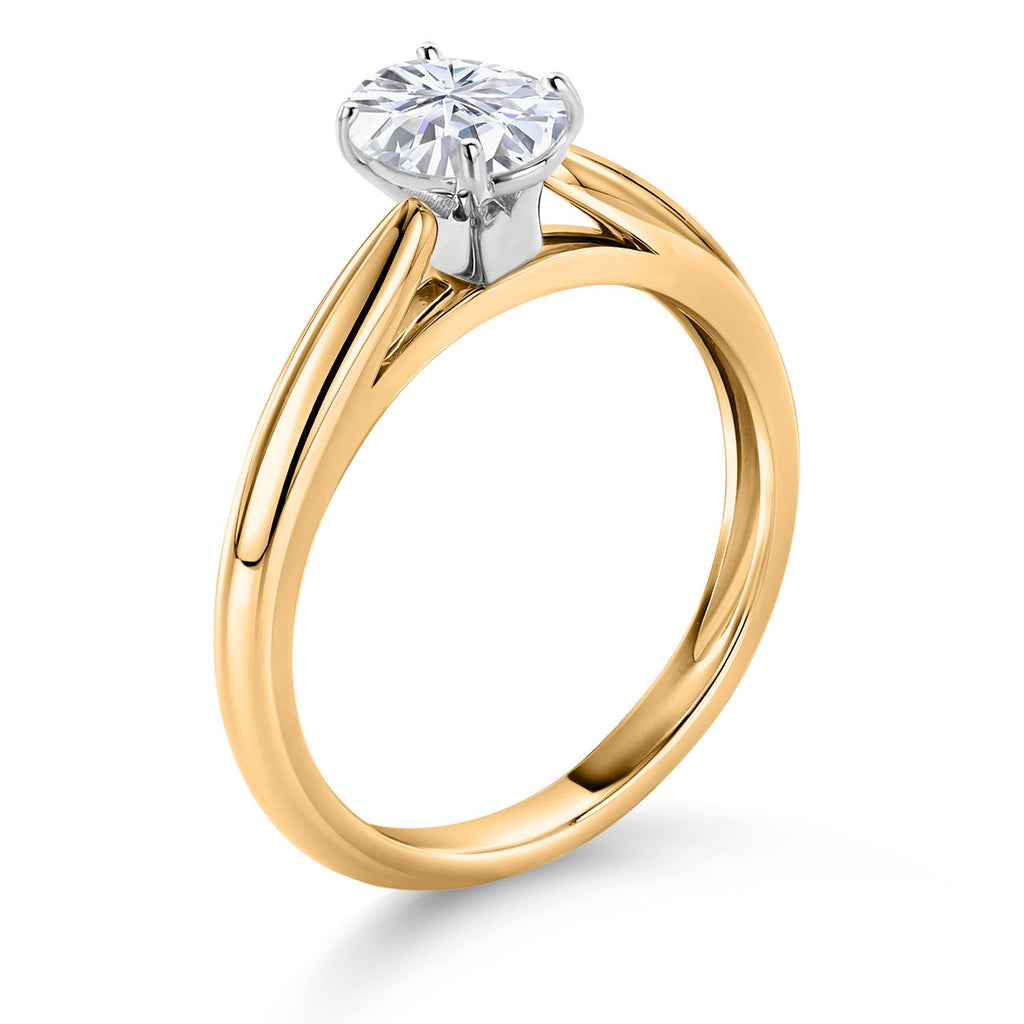 10K Yellow Gold White Moissanite Solitaire Engagement Ring For Women | 0.90 Cttw | Oval 7X5MM | Wedding Engagement Anniversary Promise Ring For Women | Size 5-9
