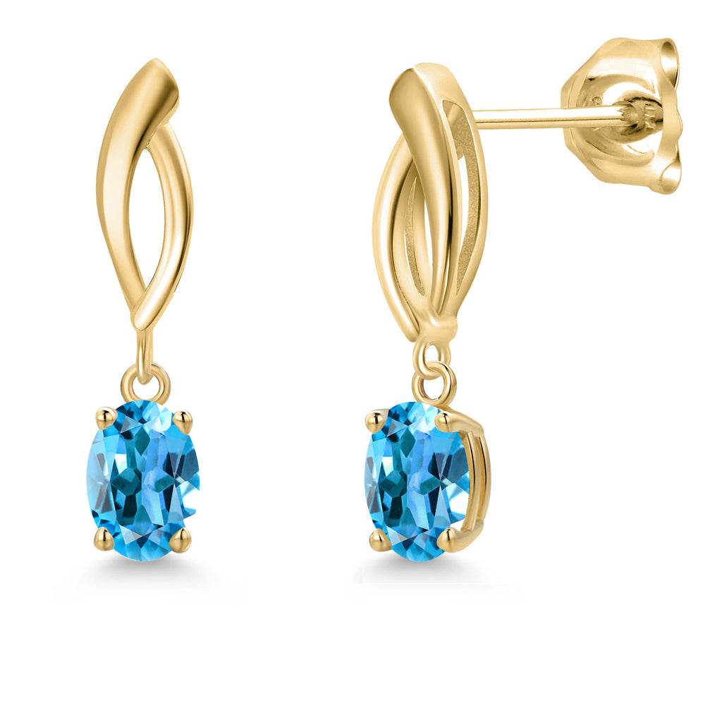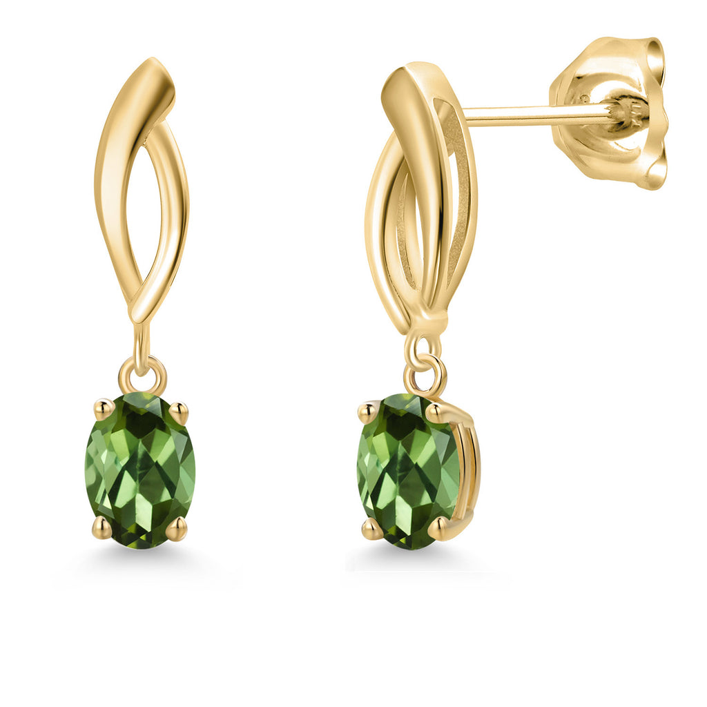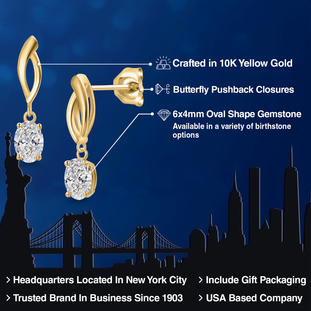 ELEGANT INFINITY DESIGN: These 10K yellow gold dangle earrings feature a graceful infinity motif, accentuated with 6X4MM oval-cut gemstone birthstones, offering a timeless and sophisticated look for any occasion.