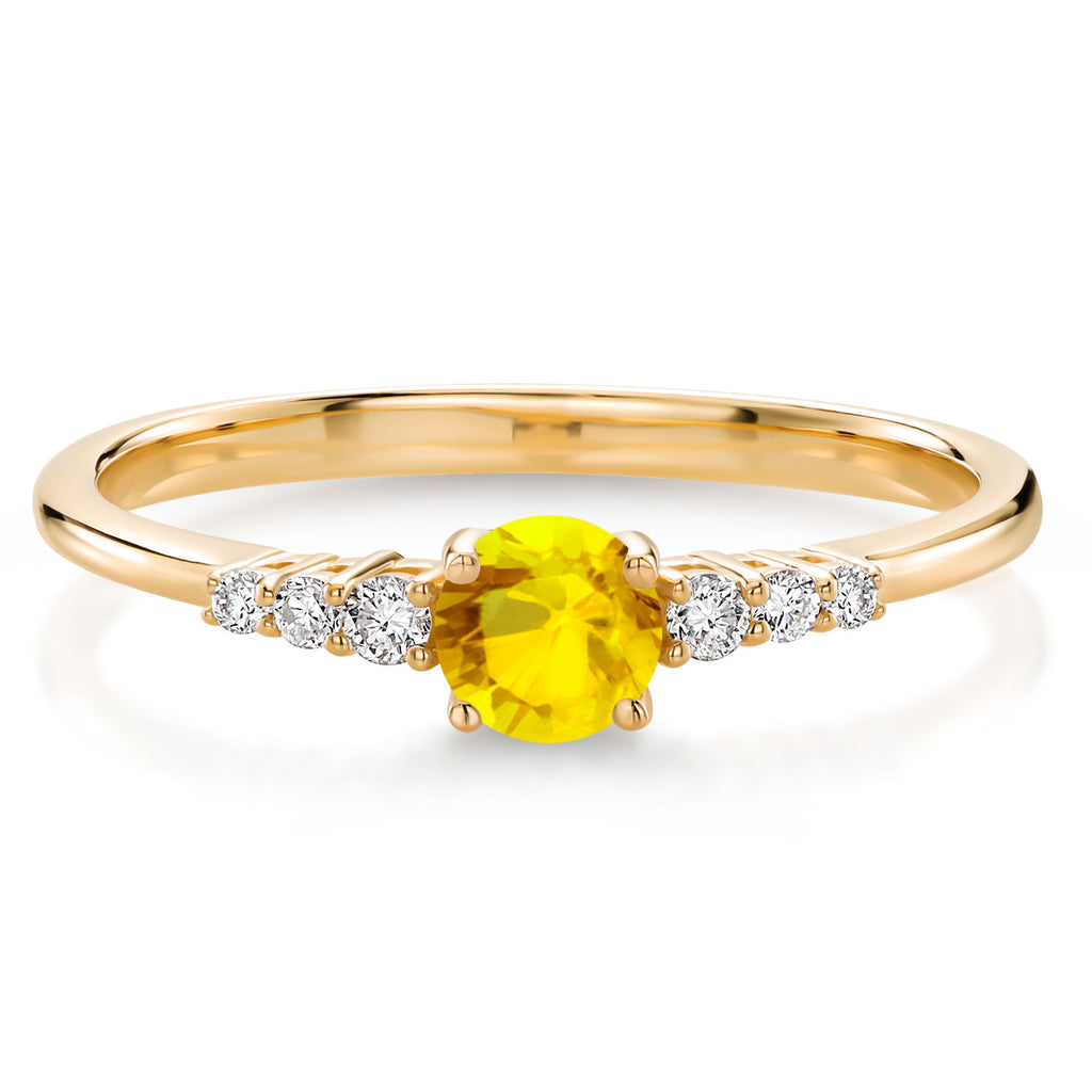 BRILLIANT ROUND BIRTHSTONE CENTERPIECE: Make every moment sparkle with a radiant 4MM round-cut Yellow Sapphire, perfectly sized for elegant everyday brilliance with 0.45 Cttw. Whether as a promise, anniversary, or engagement ring, the richly colored center stone captures attention with its fire and personalized beauty.