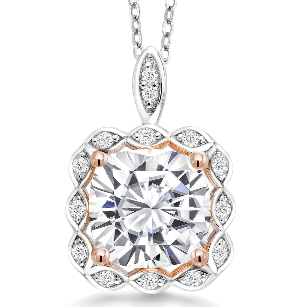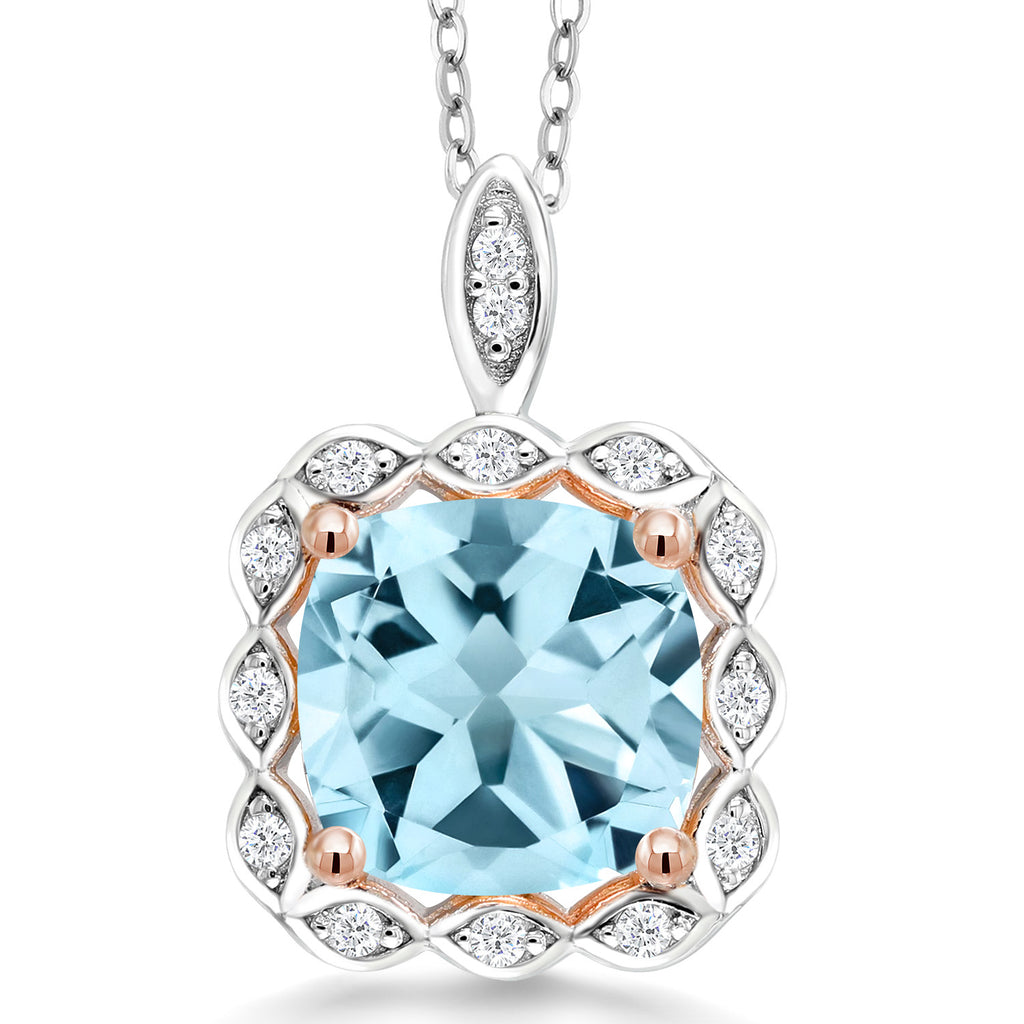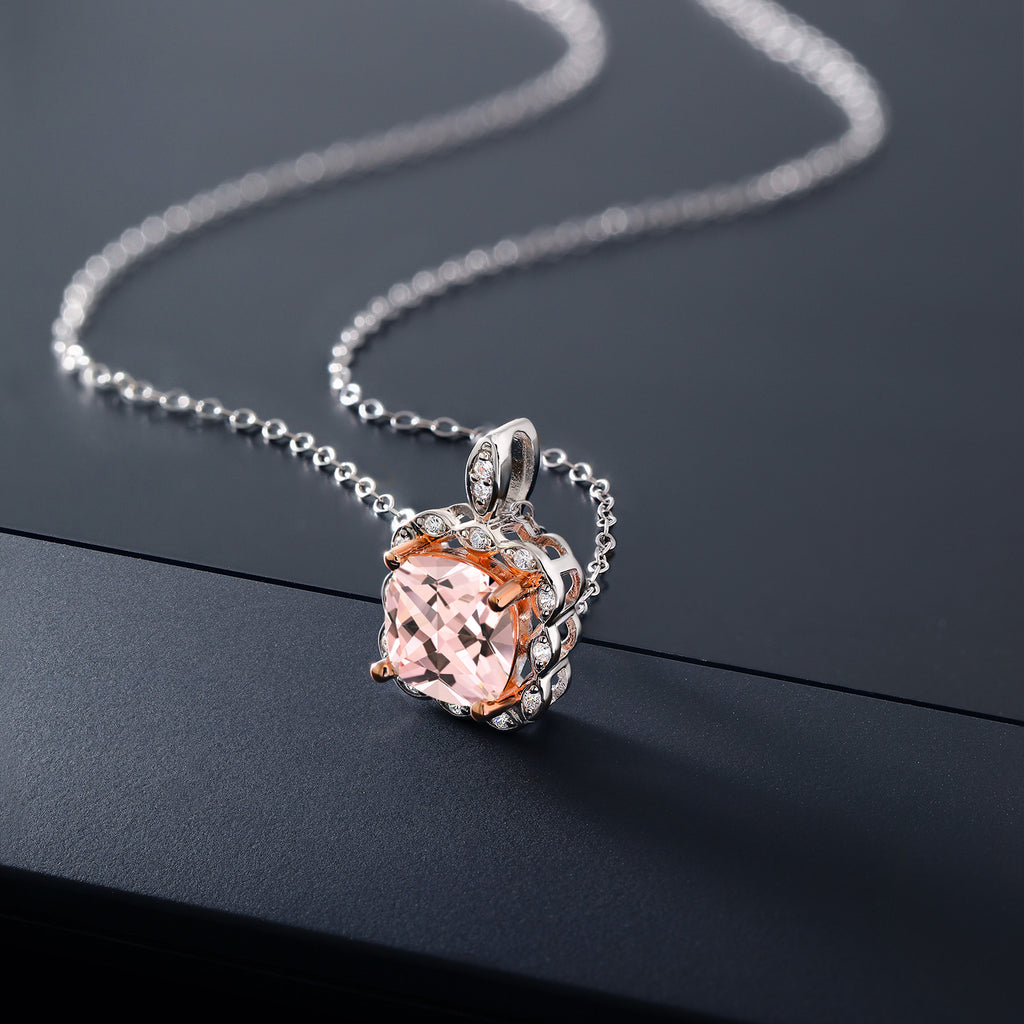 3-5 Cttw 10MM Cushion Gemstone Birthstone Halo Pendant Necklace For Women | 925 Two Tone Sterling Silver | With 18 Inch Silver Chain | Fine Jewelry Gifts for Her Mom Women Wife