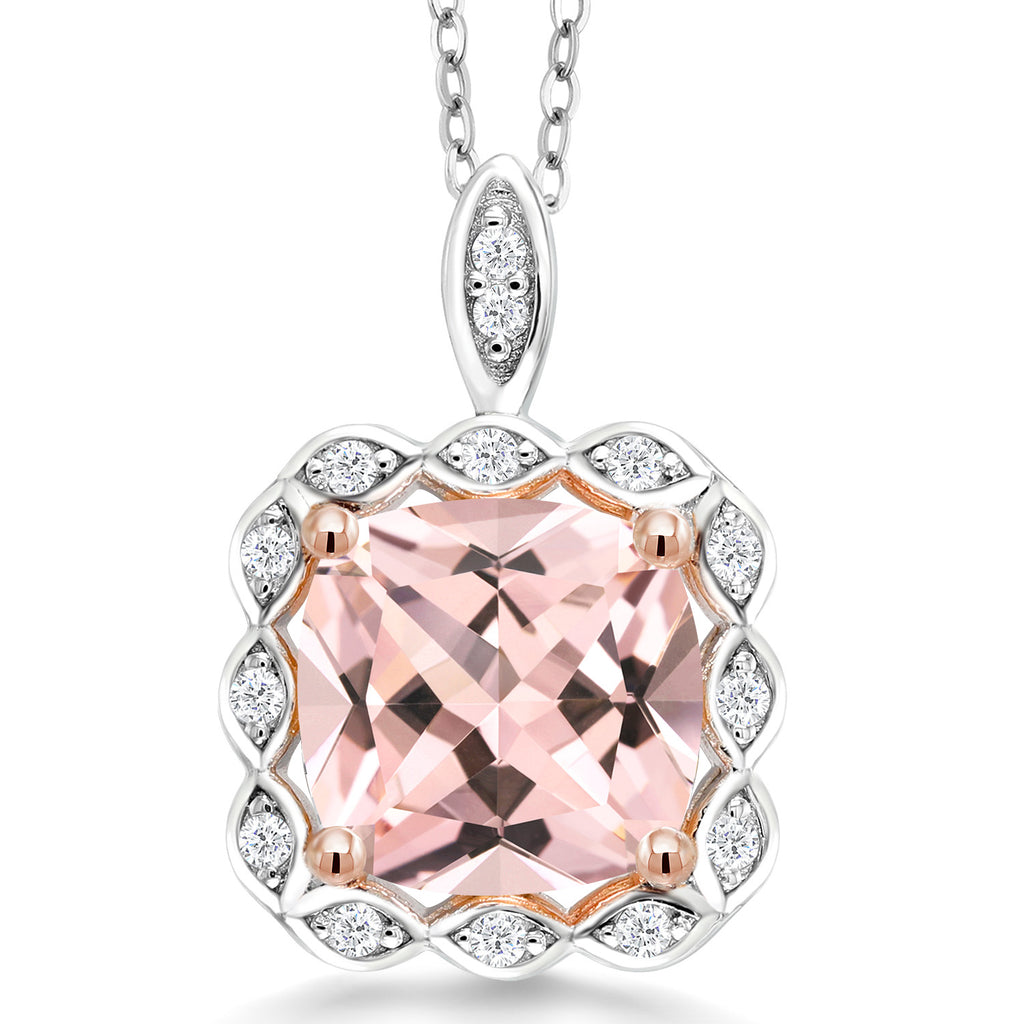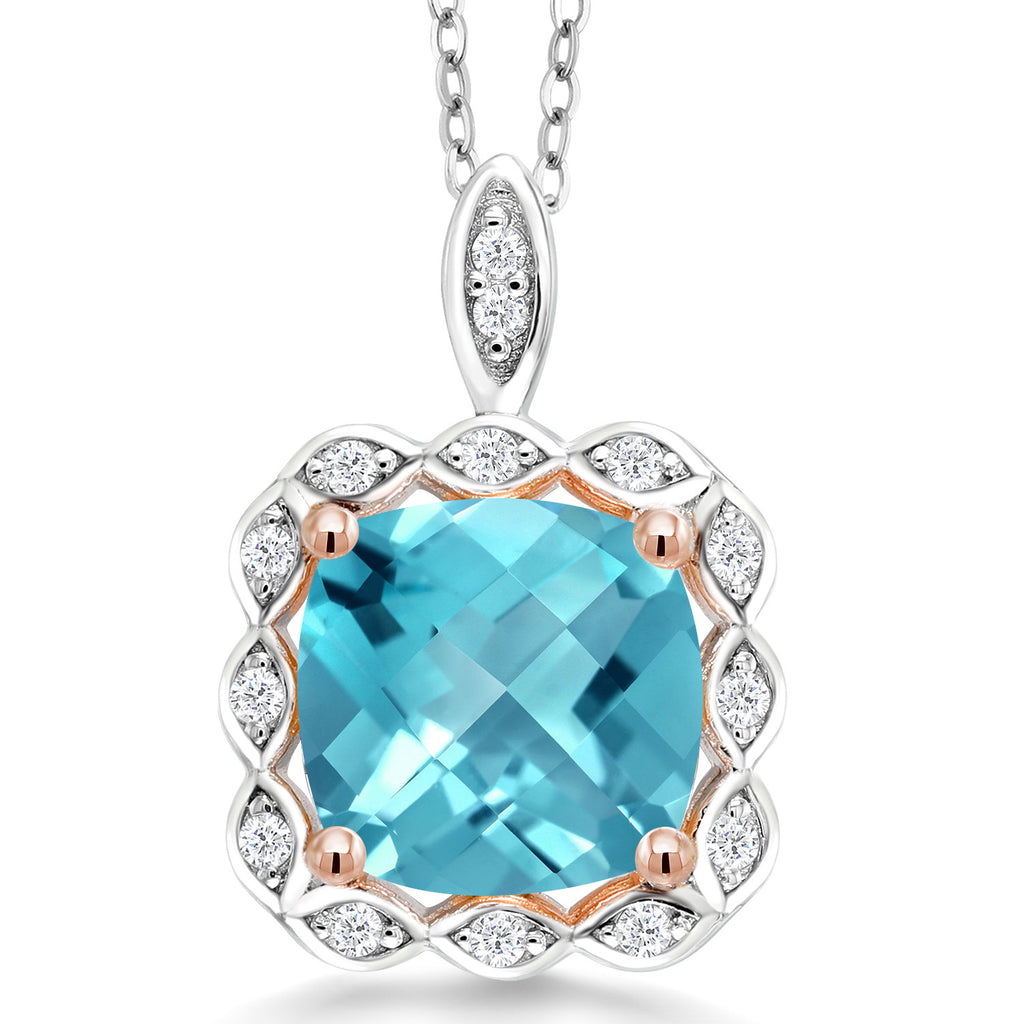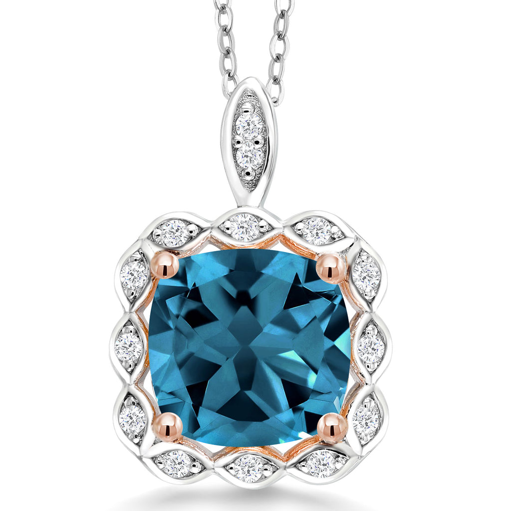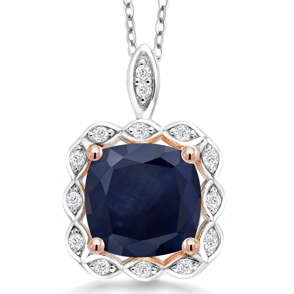 3-5 Cttw 10MM Cushion Gemstone Birthstone Halo Pendant Necklace For Women | 925 Two Tone Sterling Silver | With 18 Inch Silver Chain | Fine Jewelry Gifts for Her Mom Women Wife