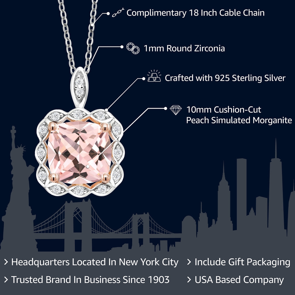 STRIKING TWO TONE DESIGN: This necklace features a beautiful two-tone sterling silver setting that adds a modern twist to the classic pendant design. The contrasting tones frame the 10mm cushion-cut gemstone birthstone, enhancing its natural brilliance and color.