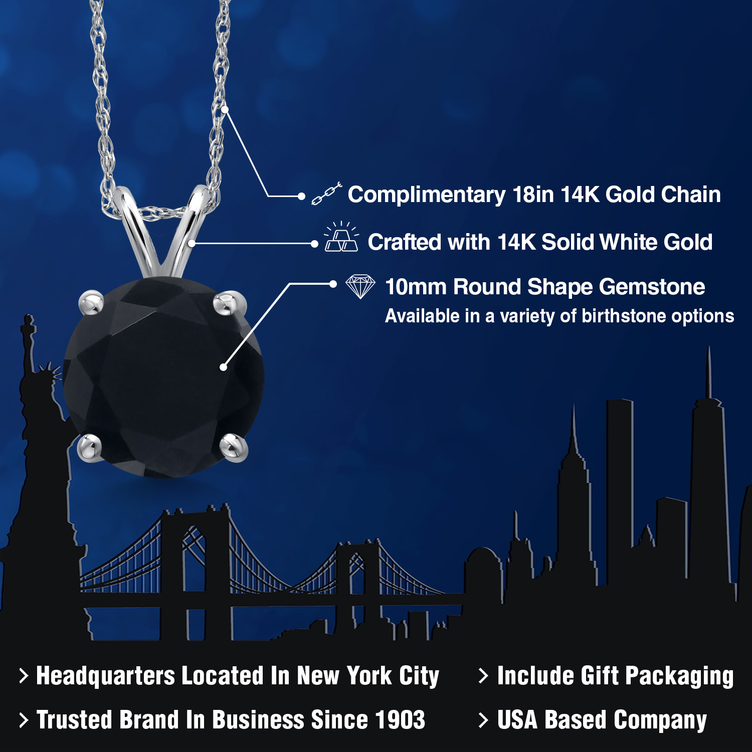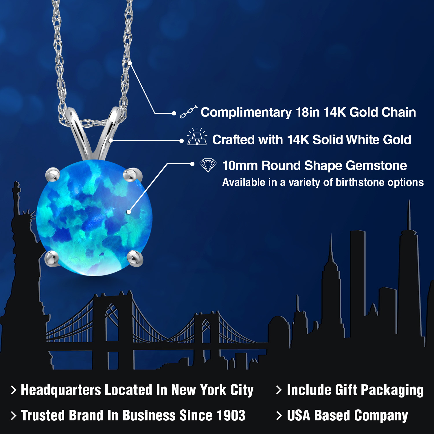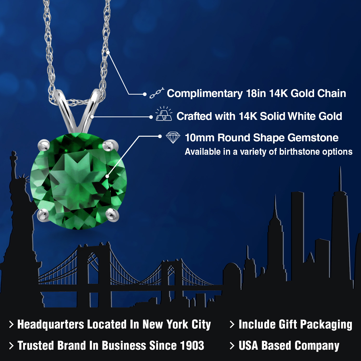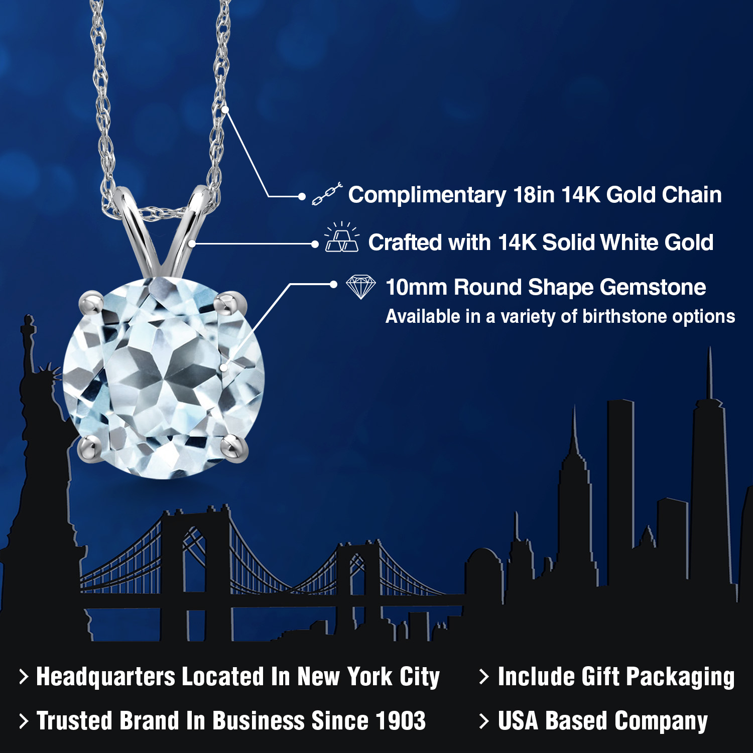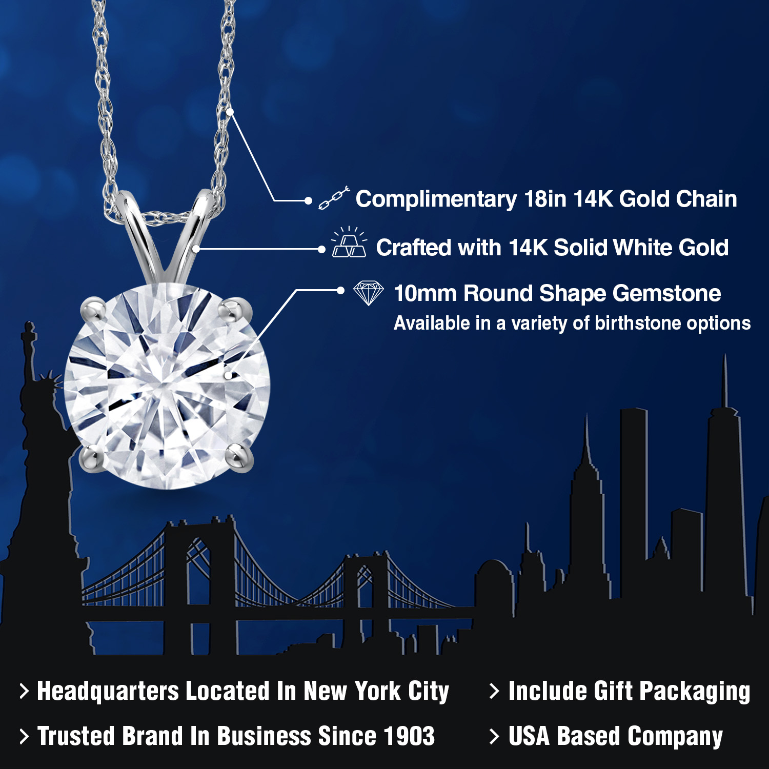 10MM Round Gemstone Birthstone Pendant Necklace For Women | 10K White Gold | Gold Necklace For Women | With 18 Inch Chain | Fine Jewelry Gifts for Her Mom Wife