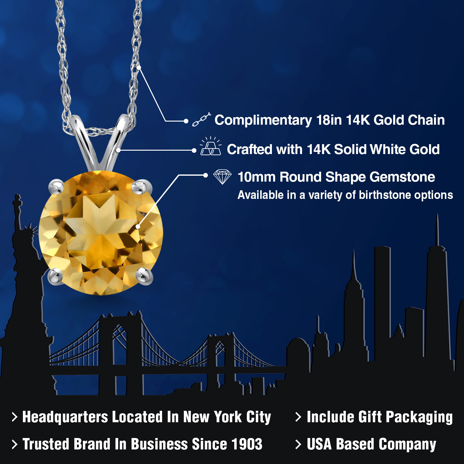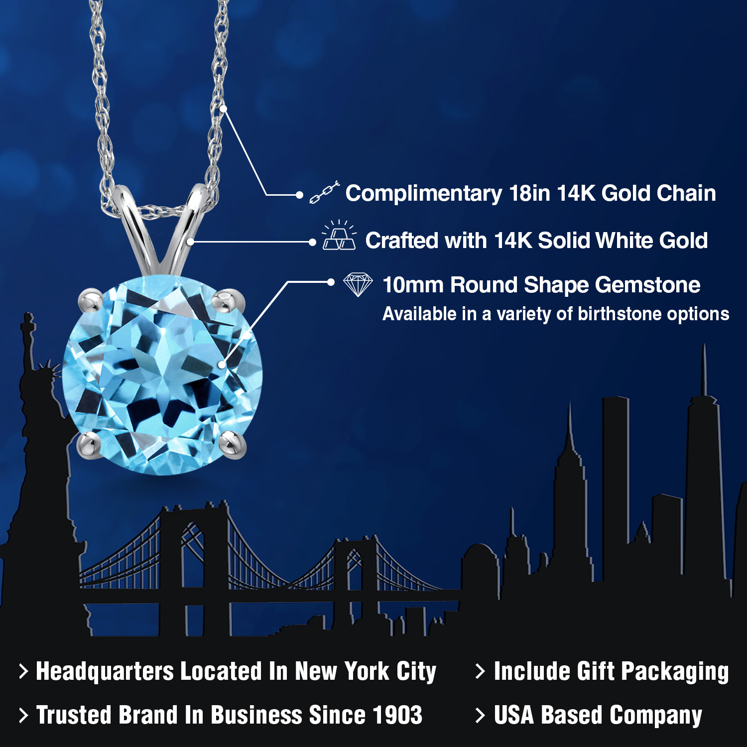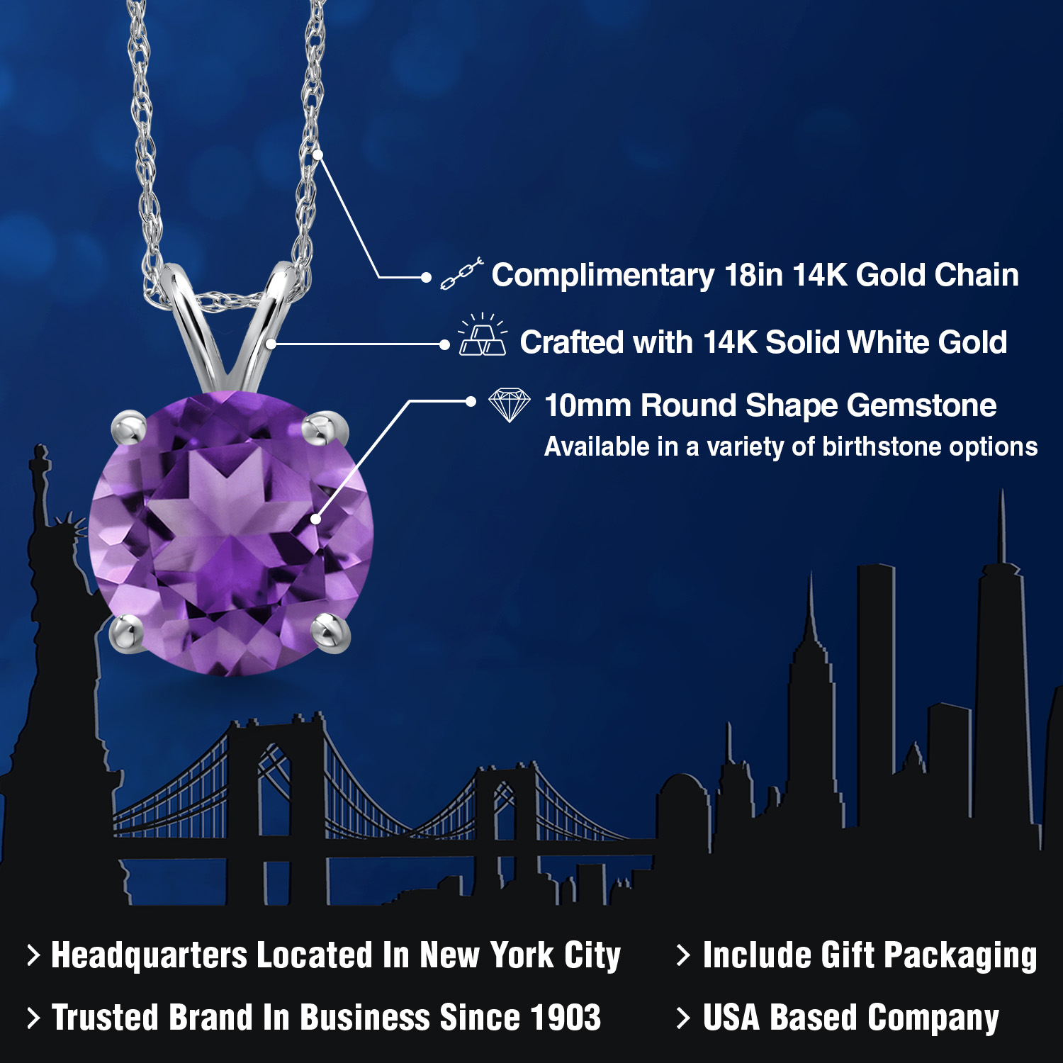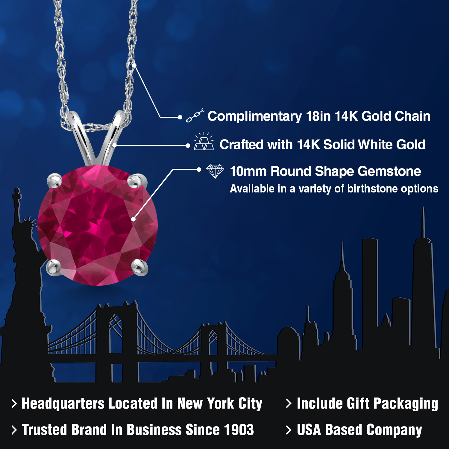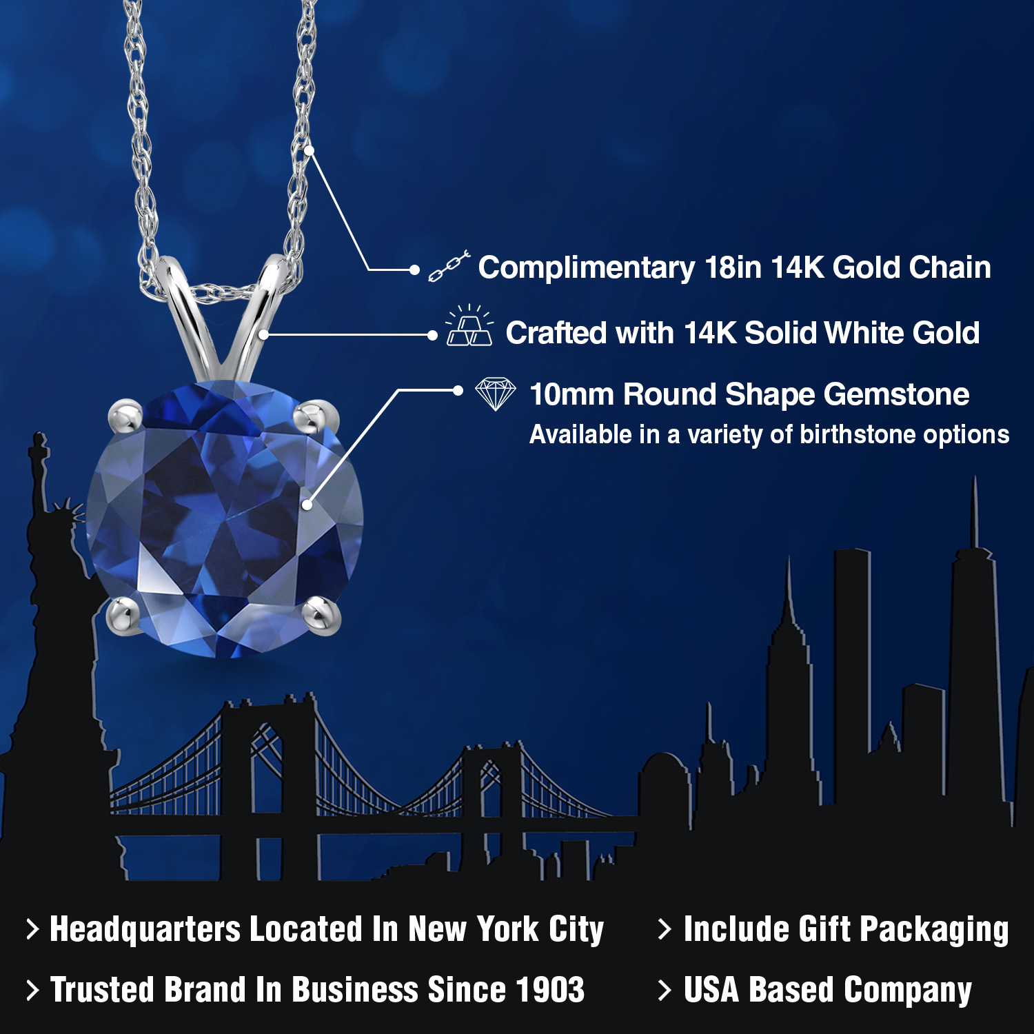 10MM Round Gemstone Birthstone Pendant Necklace For Women | 10K White Gold | Gold Necklace For Women | With 18 Inch Chain | Fine Jewelry Gifts for Her Mom Wife