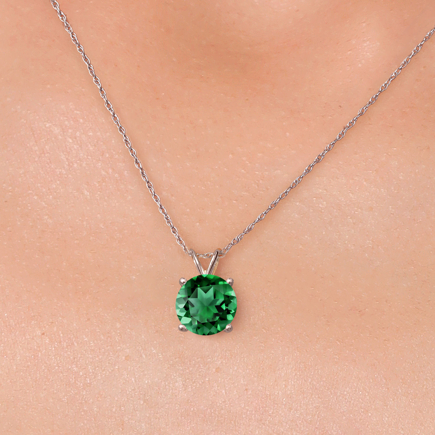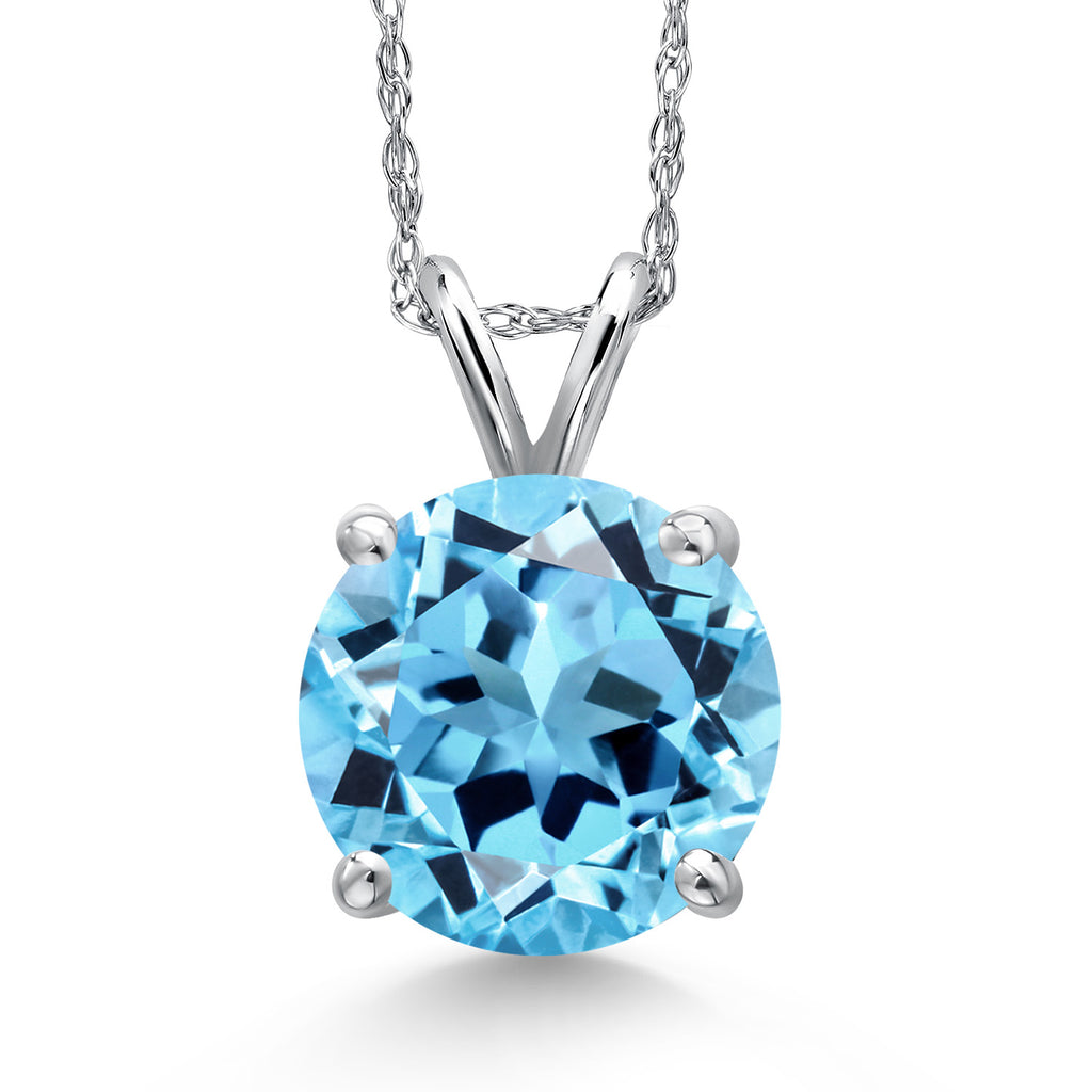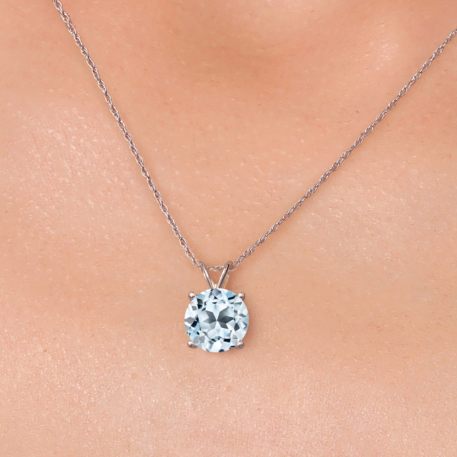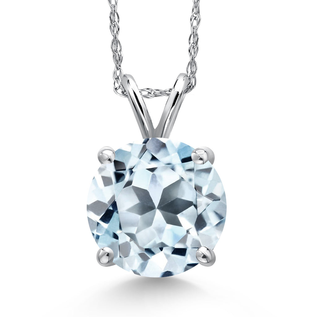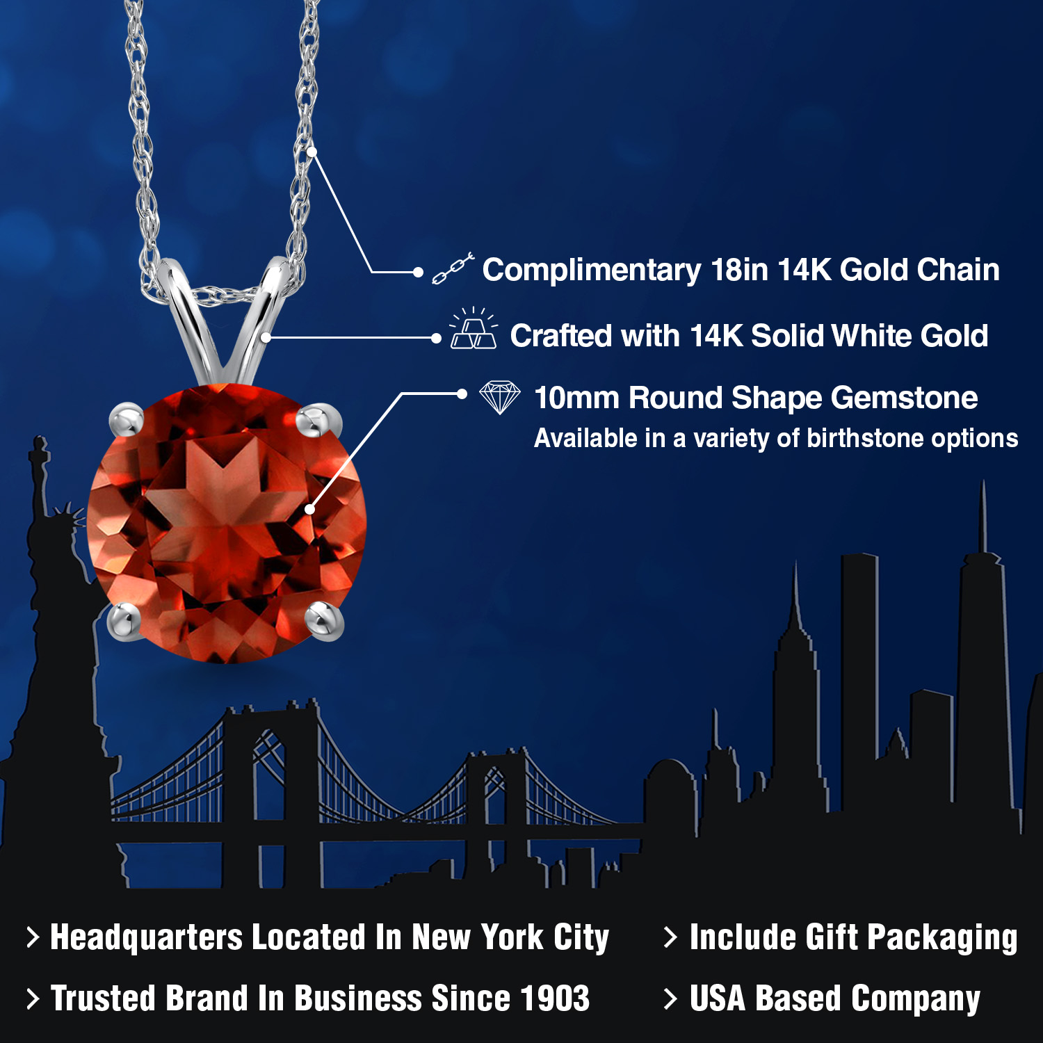 10MM Round Gemstone Birthstone Pendant Necklace For Women | 10K White Gold | Gold Necklace For Women | With 18 Inch Chain | Fine Jewelry Gifts for Her Mom Wife