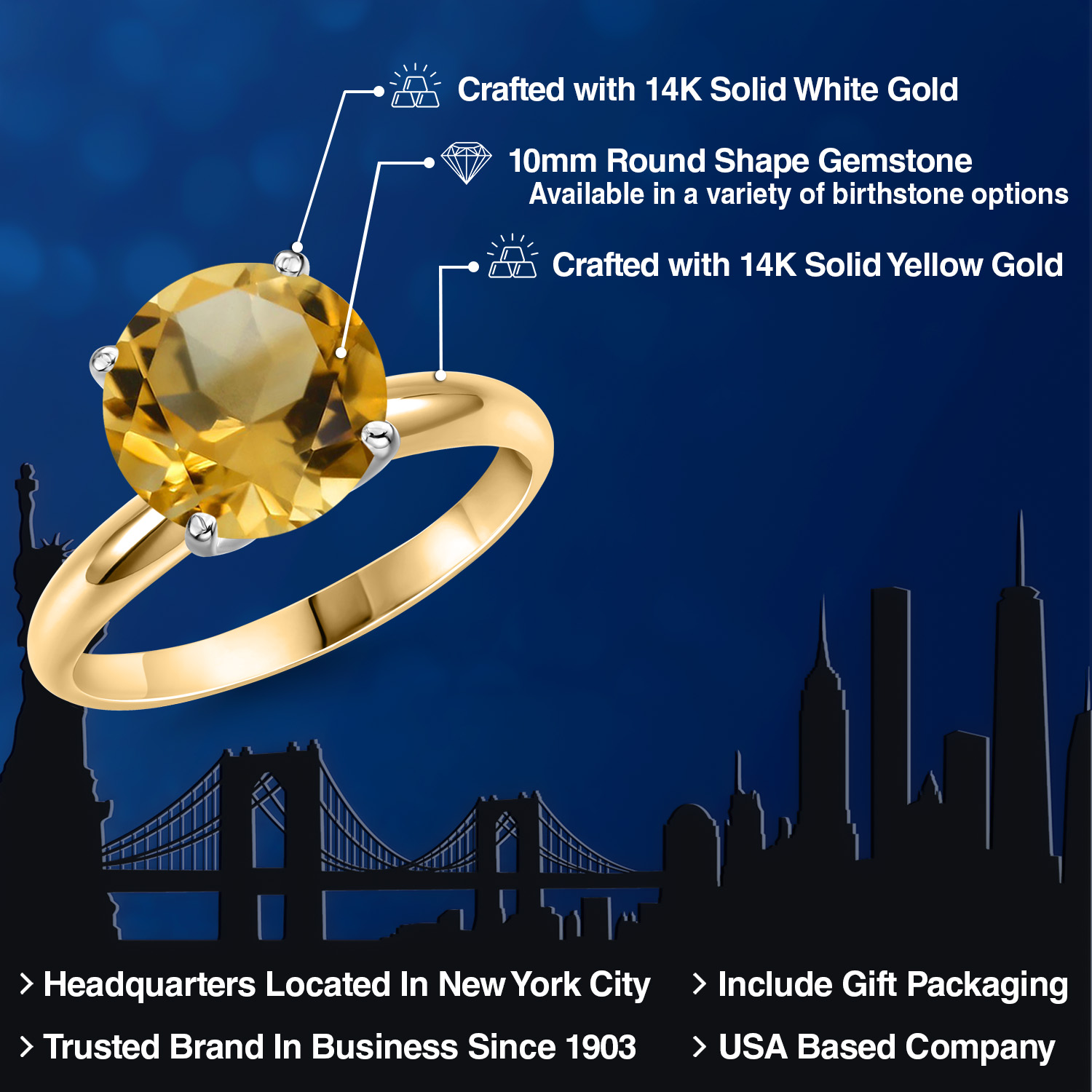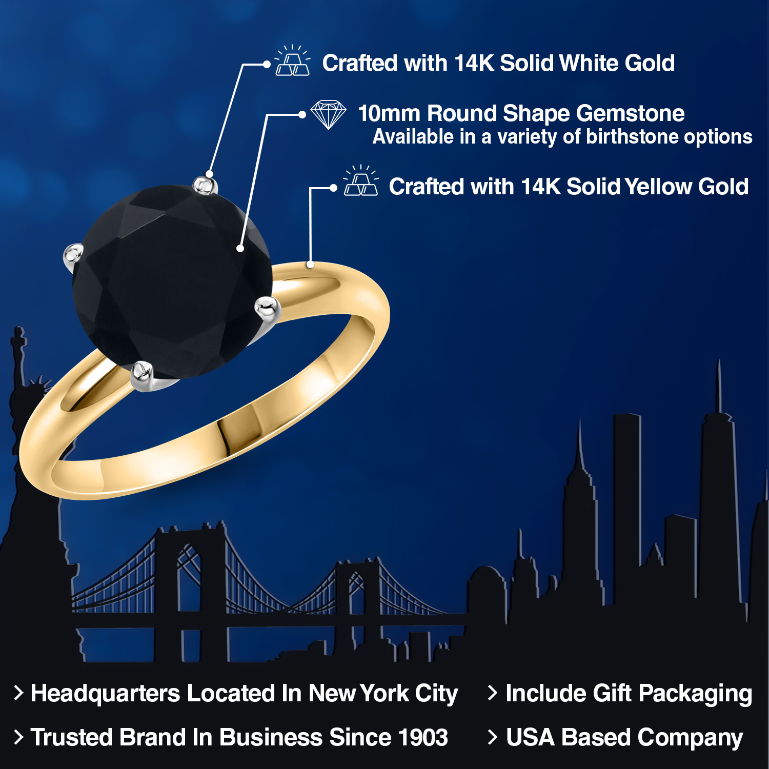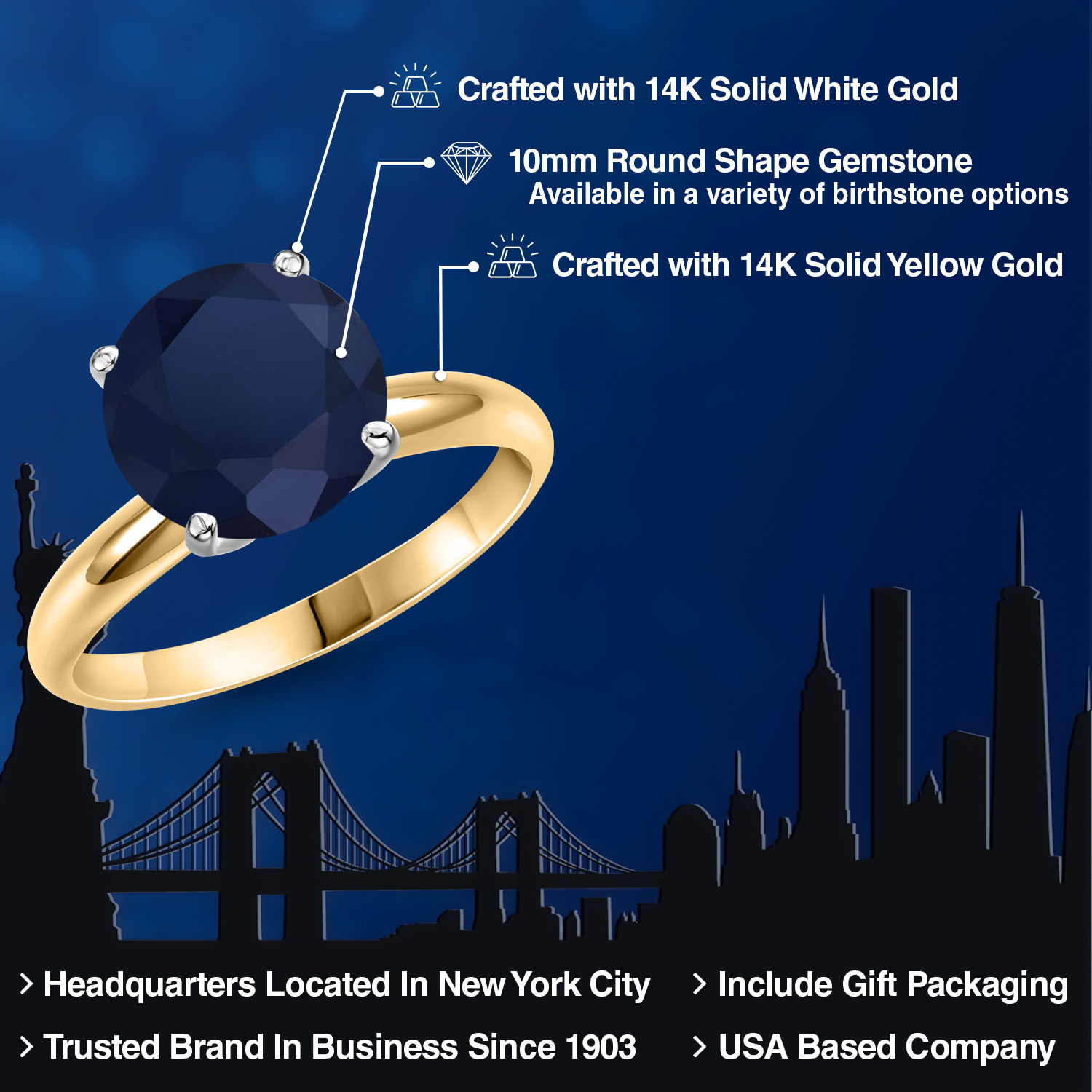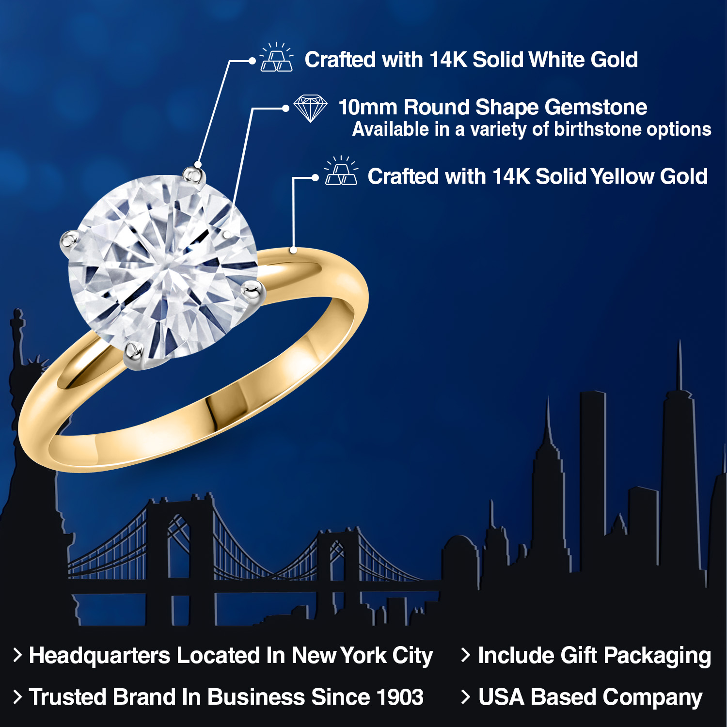 10MM Round Gemstone Birthstone Solitaire Engagement Ring For Women | 14K Yellow and White Gold | Wedding Anniversary Promise Gold Ring For Women | Size 5 to 9