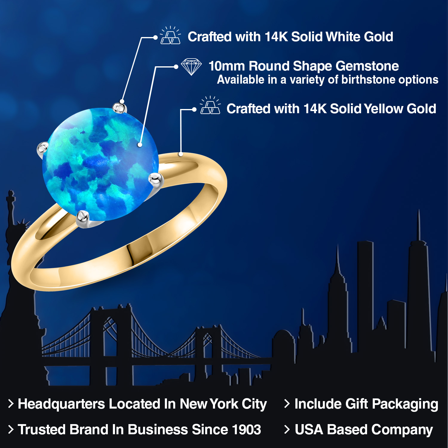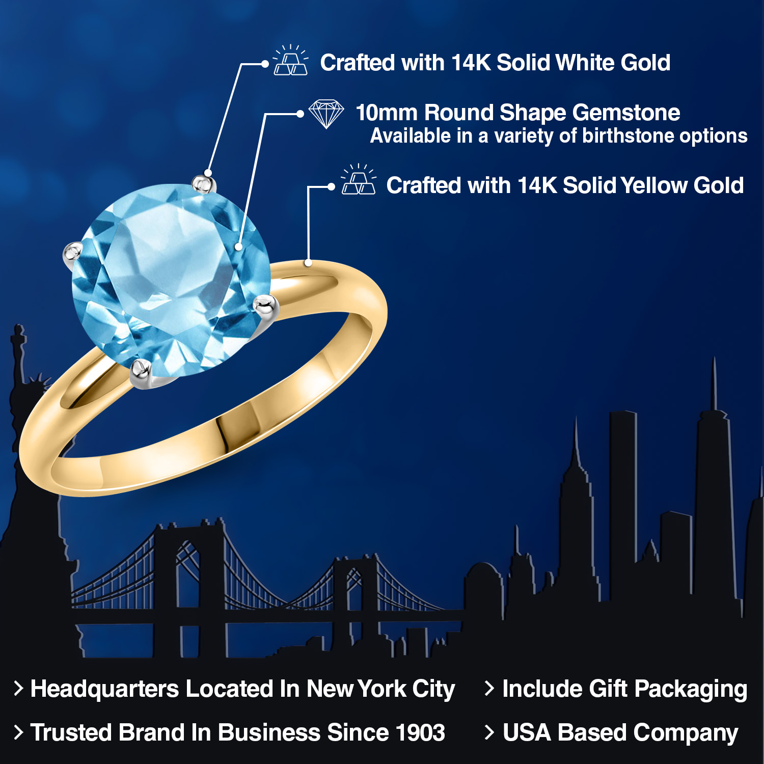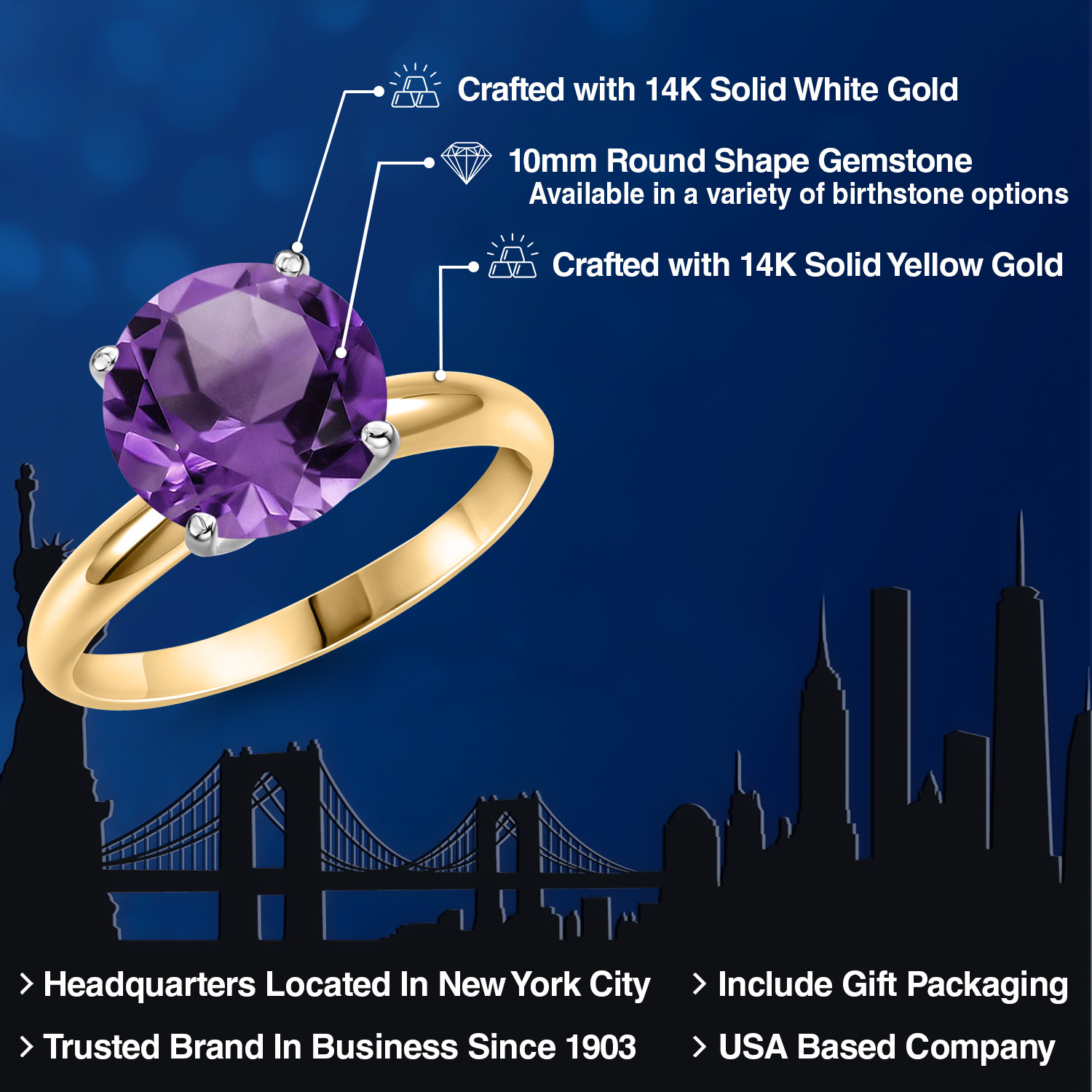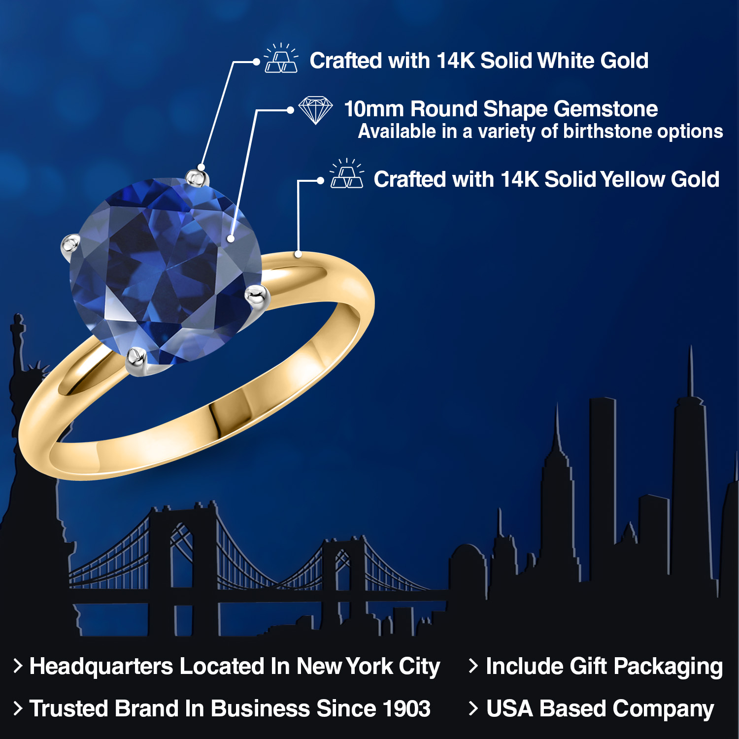 10MM Round Gemstone Birthstone Solitaire Engagement Ring For Women | 14K Yellow and White Gold | Wedding Anniversary Promise Gold Ring For Women | Size 5 to 9
