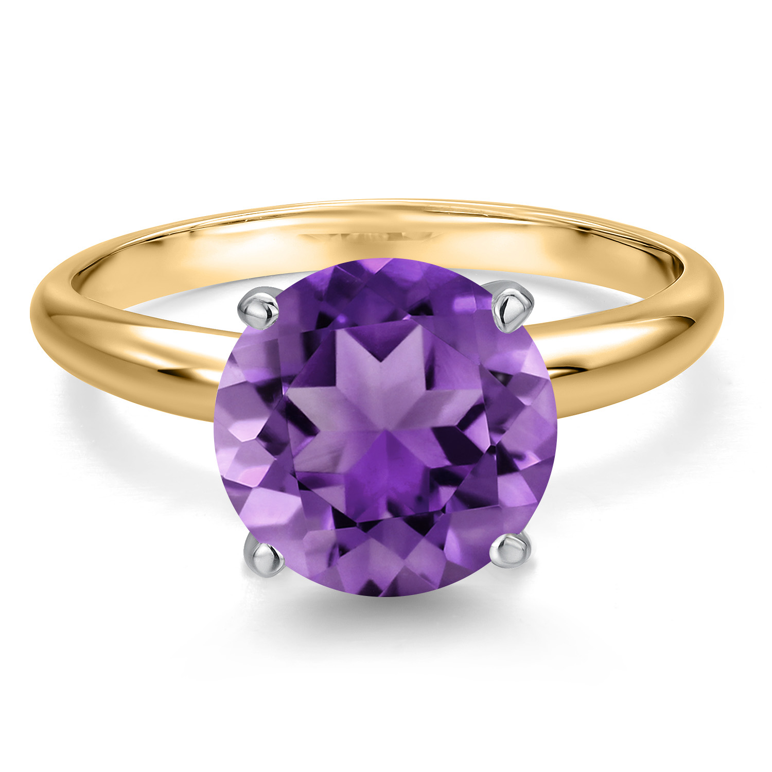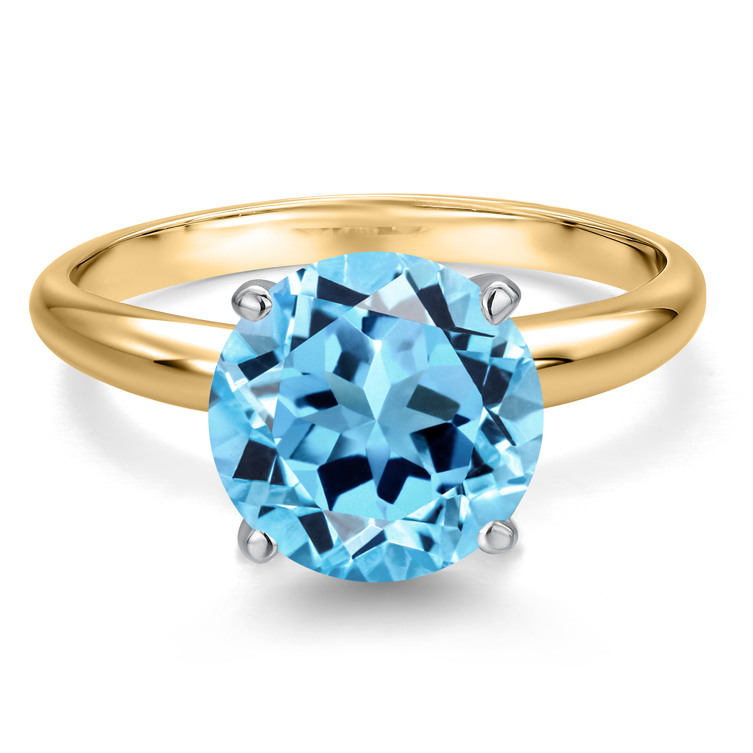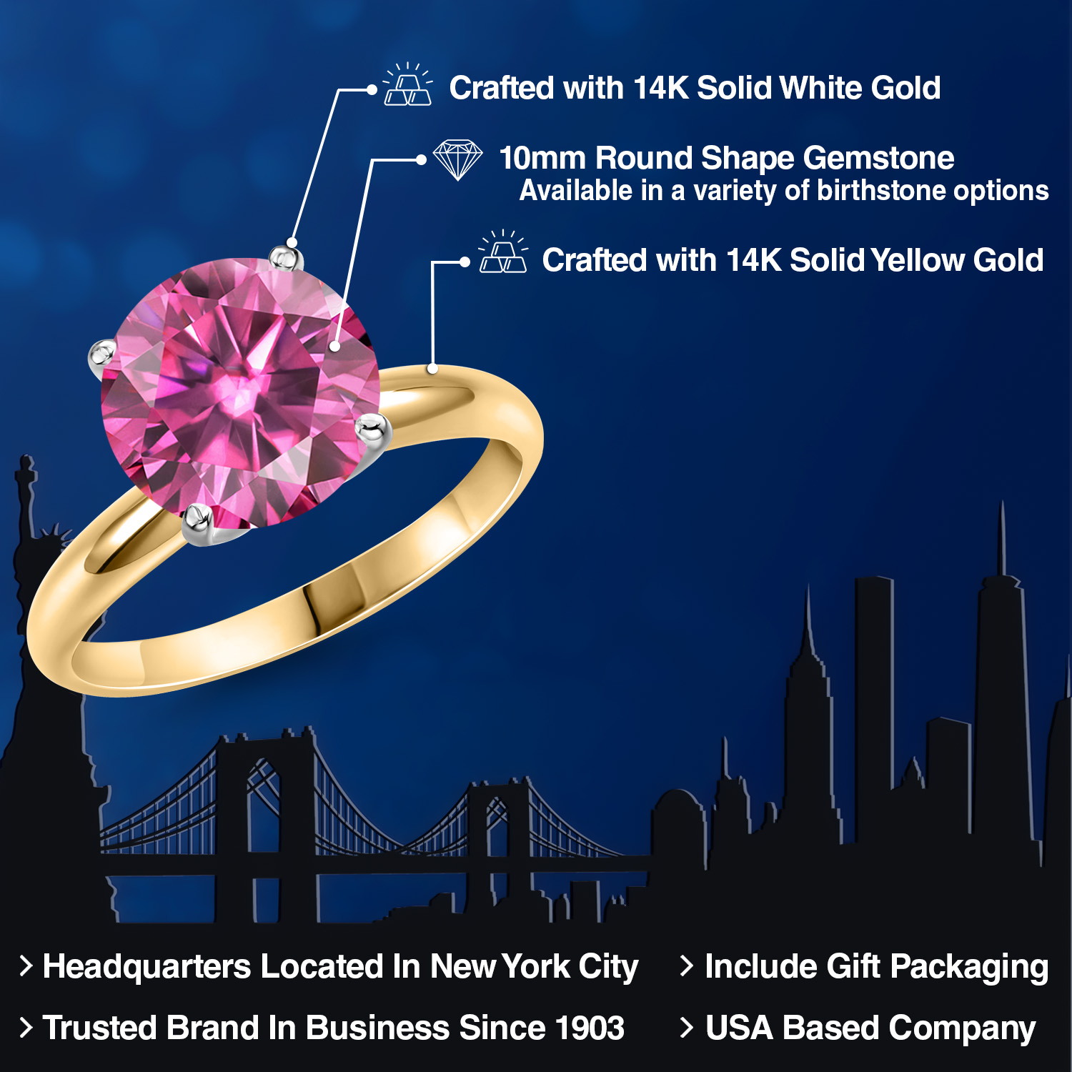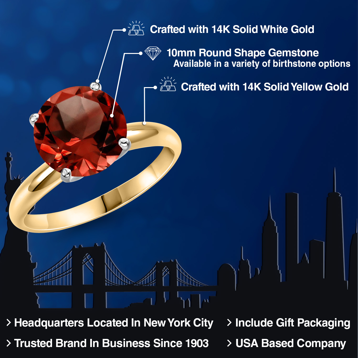 10MM Round Gemstone Birthstone Solitaire Engagement Ring For Women | 14K Yellow and White Gold | Wedding Anniversary Promise Gold Ring For Women | Size 5 to 9
