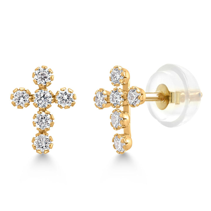 Gem Stone King 14K Gold Cross Stud Earrings | Jesus Christian Religious Crucifix Jewelry Earrings | Lab Grown Diamond Created Ruby or Created Sapphire Gold Earrings For Women Men
