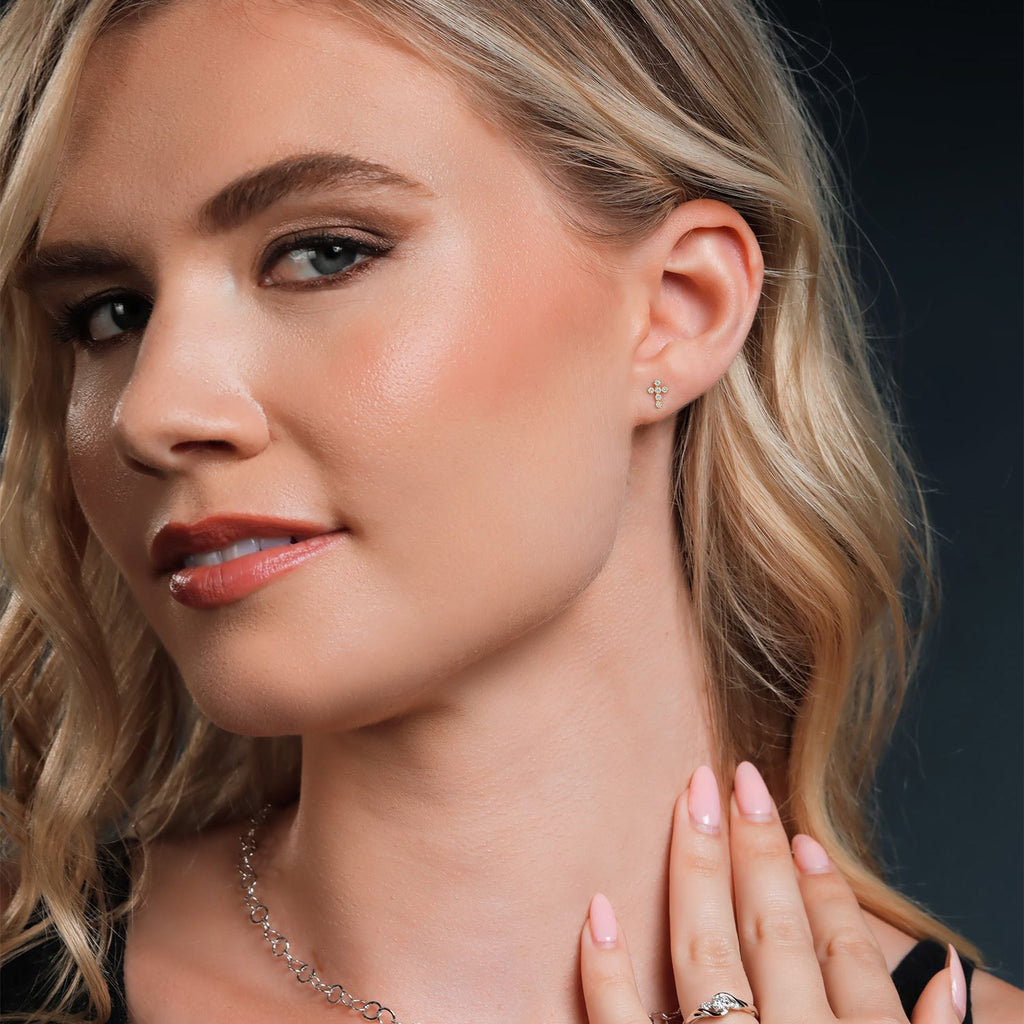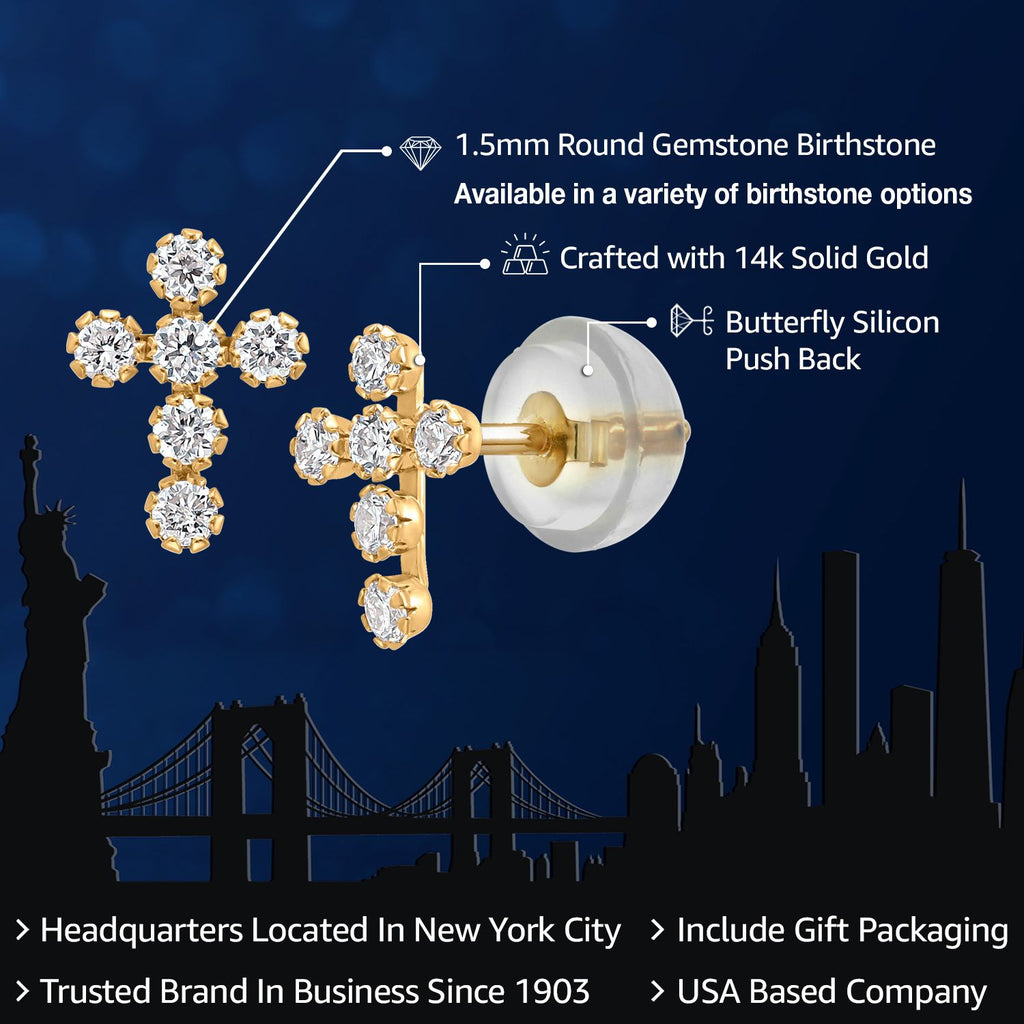 14K Gold Cross Stud Earrings | Jesus Christian Religious Crucifix Jewelry Earrings | Lab Grown Diamond Created Ruby or Created Sapphire Gold Earrings For Women Men