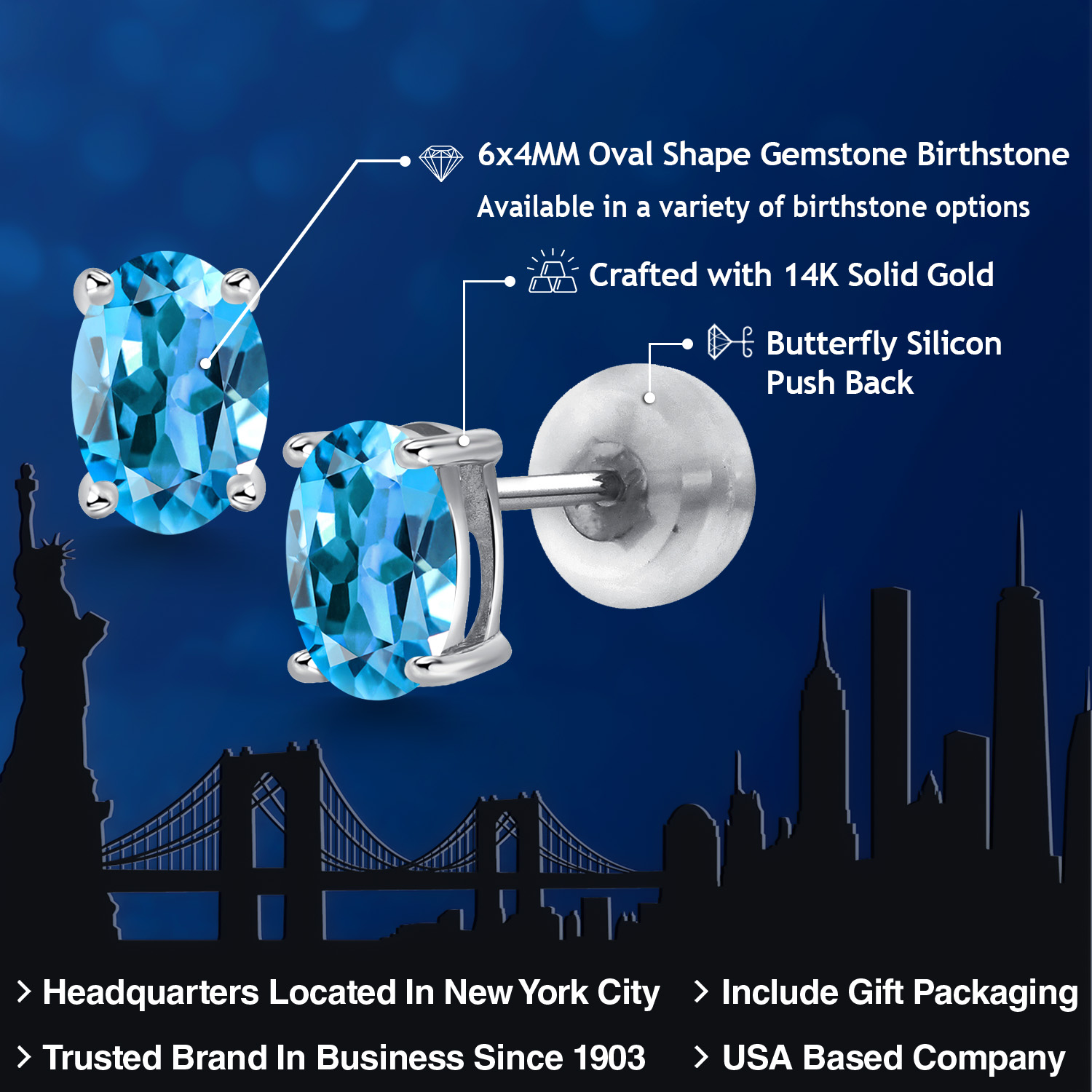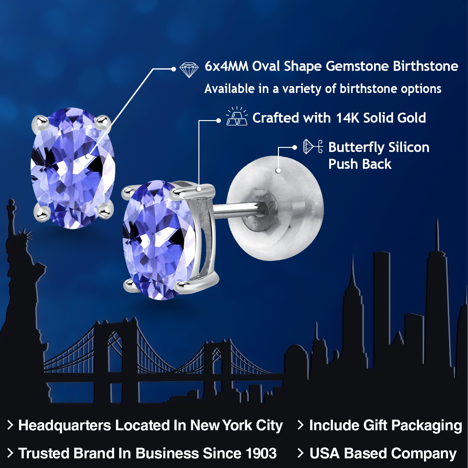 EXQUISITE OVAL GEMSTONE DESIGN: These stud earrings feature stunning oval 6x4mm gemstones, showcasing the natural beauty and brilliance of the stones. The oval cut offers a classic and timeless look that complements any style or occasion.