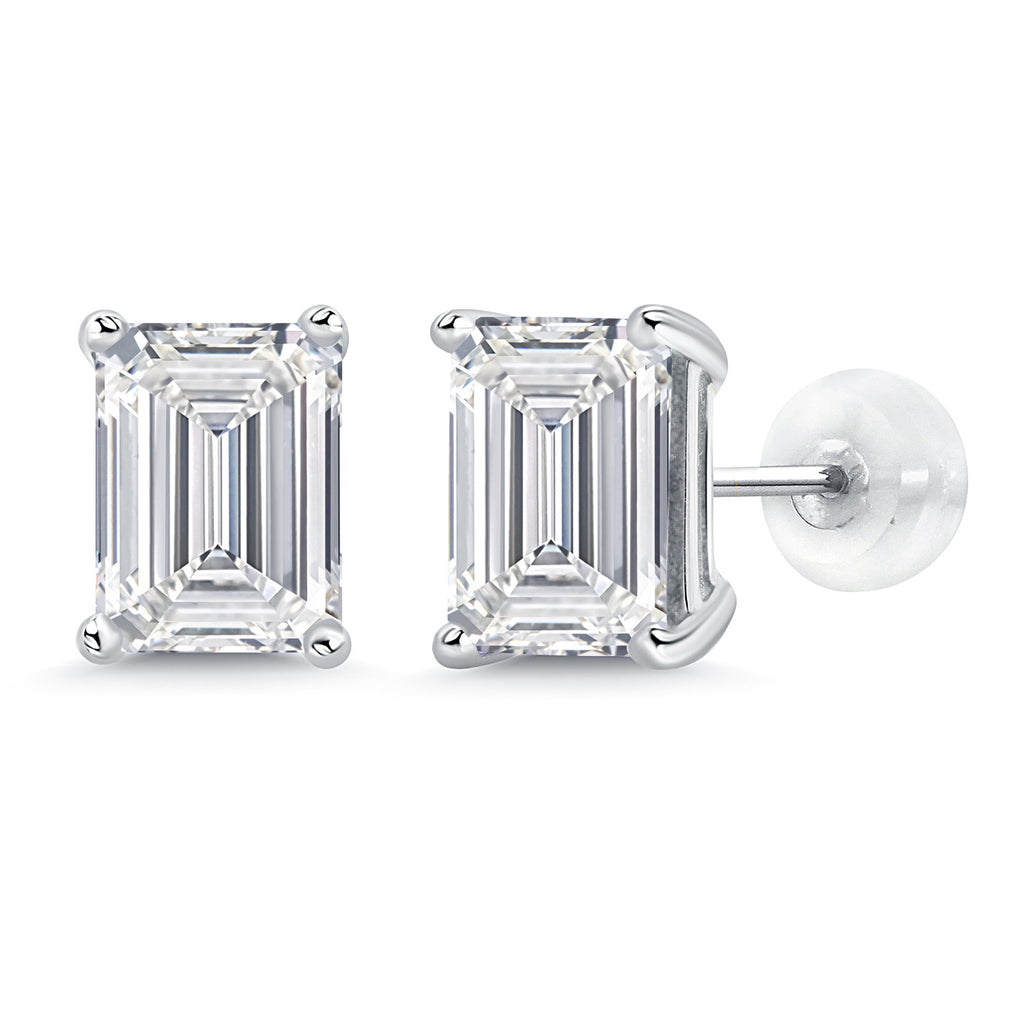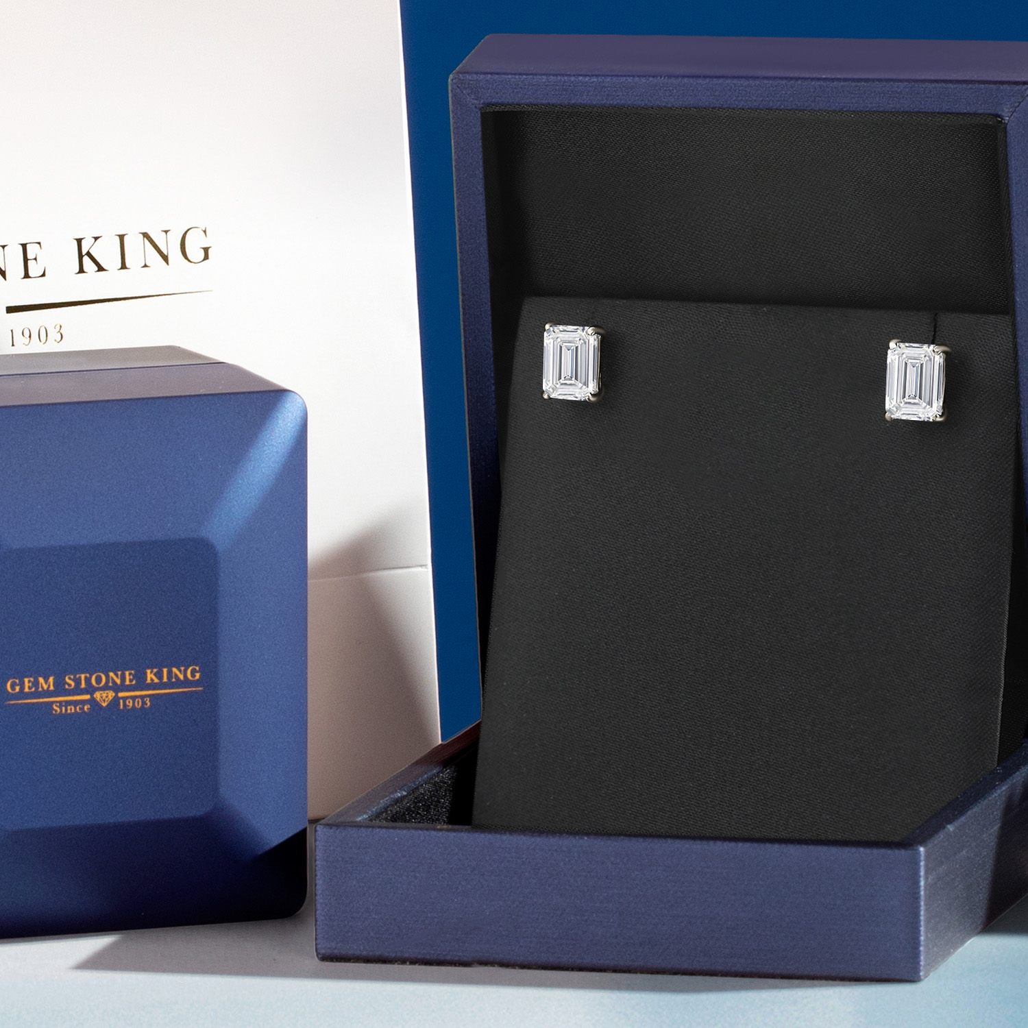 Luxurious Emerald-Cut Lab Grown Diamonds - These exquisite stud earrings feature a total of 4.00 carats of emerald-cut lab-grown diamonds, each measuring 8X6MM. The emerald cut is renowned for its architectural lines and sophisticated step cuts that enhance the diamond's clarity and subtle brilliance, making these earrings a statement of elegance and luxury.