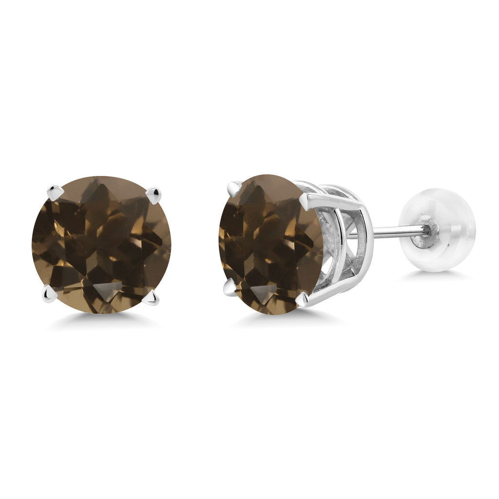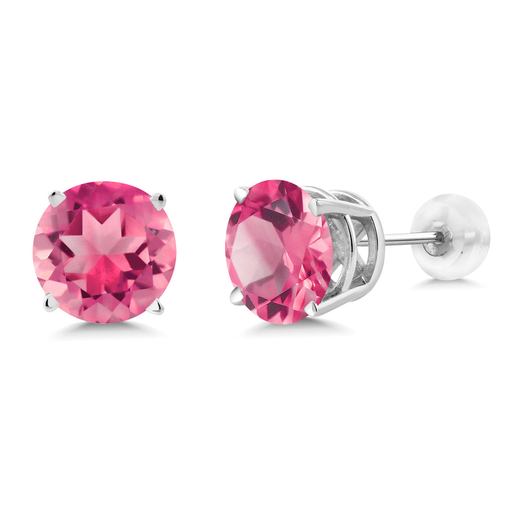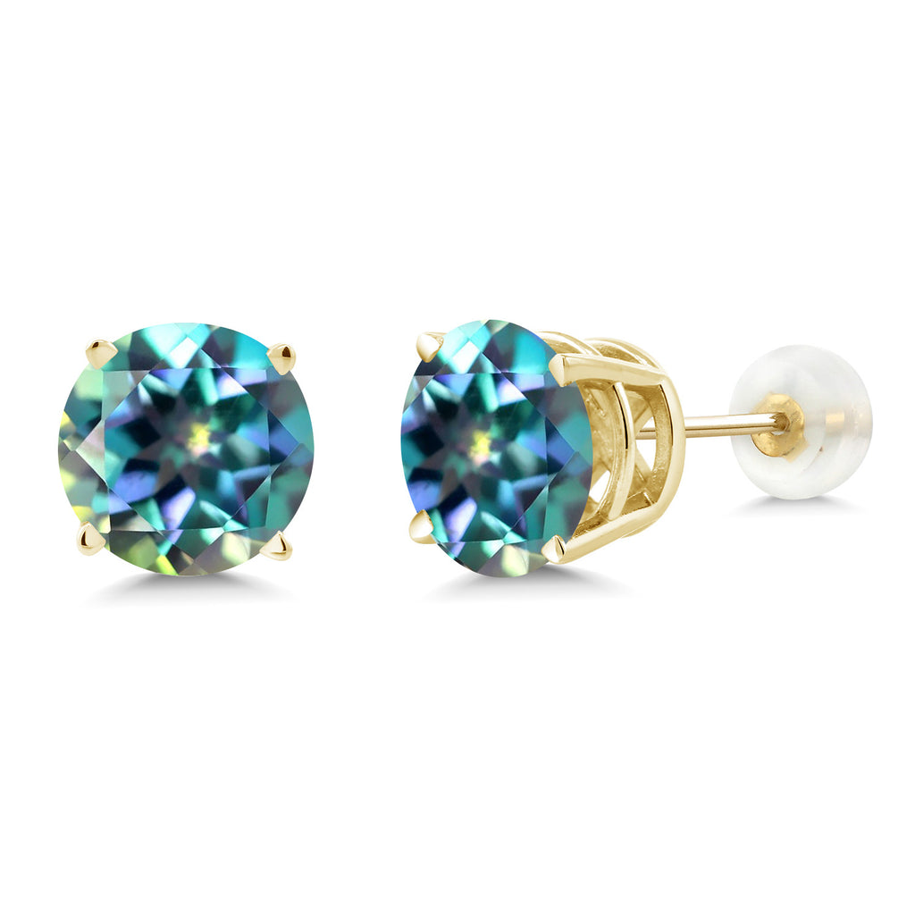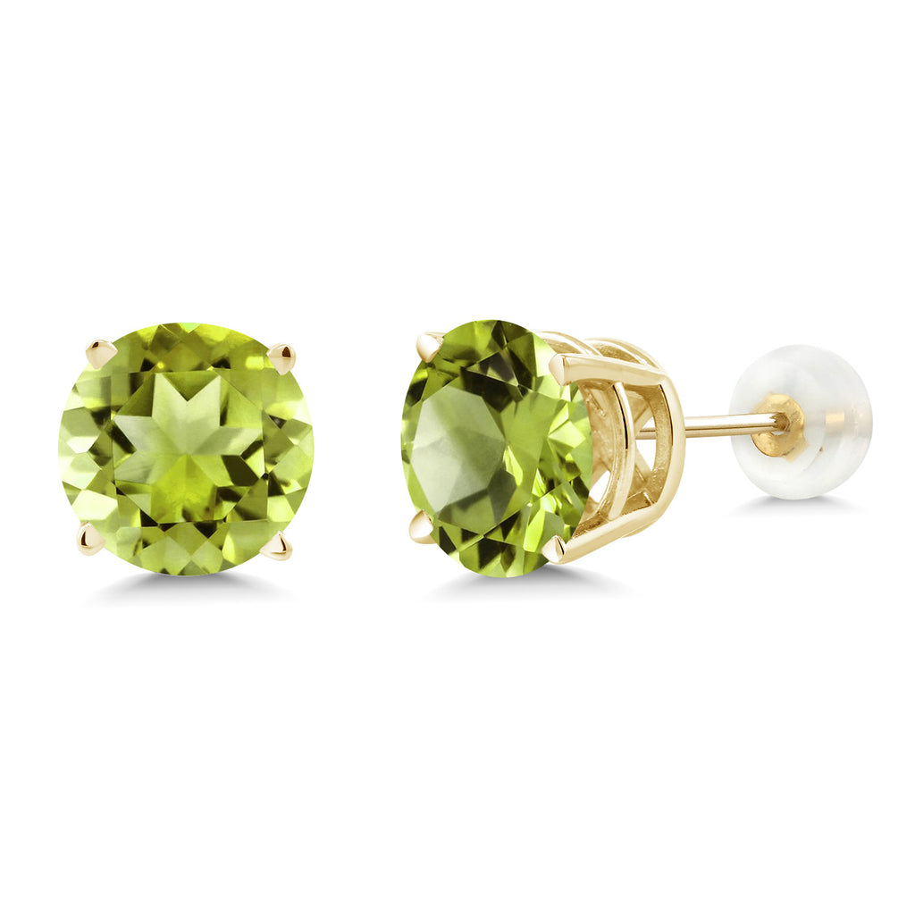 14K Gold Round Gemstone Birthstone Stud Earrings | Round 8MM | Solid Gold Earrings For Women Men