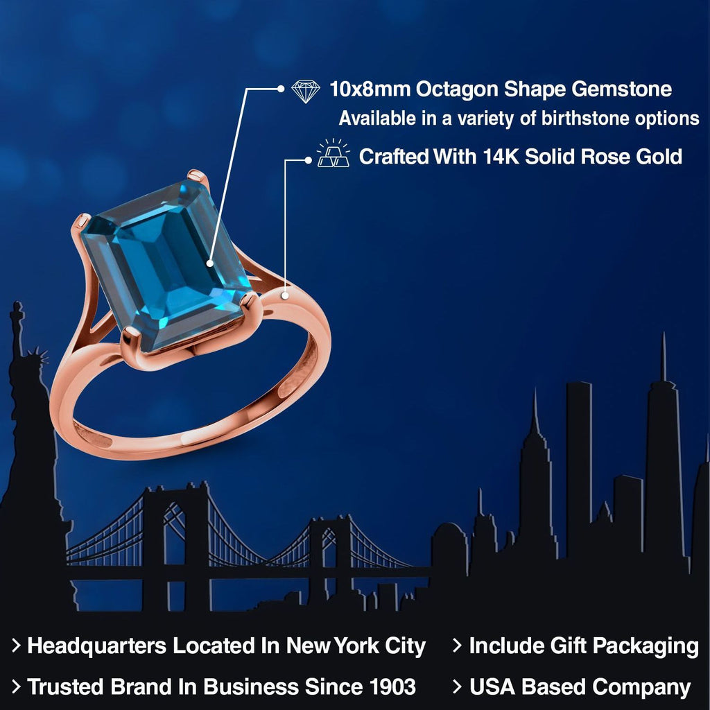 MESMERIZING EMERALD CUT GEMSTONE: Featuring a captivating 11x9MM emerald-cut gemstone birthstone, this ring showcases the gemstone's clarity and brilliance. The emerald cut adds a touch of sophistication and modernity, ensuring the gemstone stands out as the focal point of the ring.