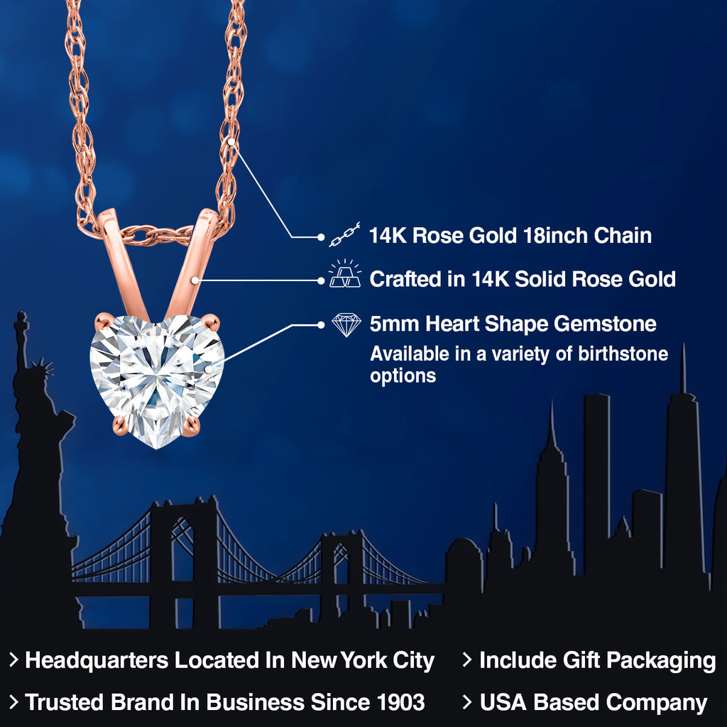 HEARTFELT GEMSTONE EXCELLENCE: Radiate love and elegance with this 14K Rose Gold Heart Shape Pendant Necklace, showcasing a brilliant 5MM gemstone. The heart shape is more than a style - it's a symbol of love, making it a perfect gift for loved ones. Choose from various birthstones to make this necklace uniquely yours and celebrate special moments.