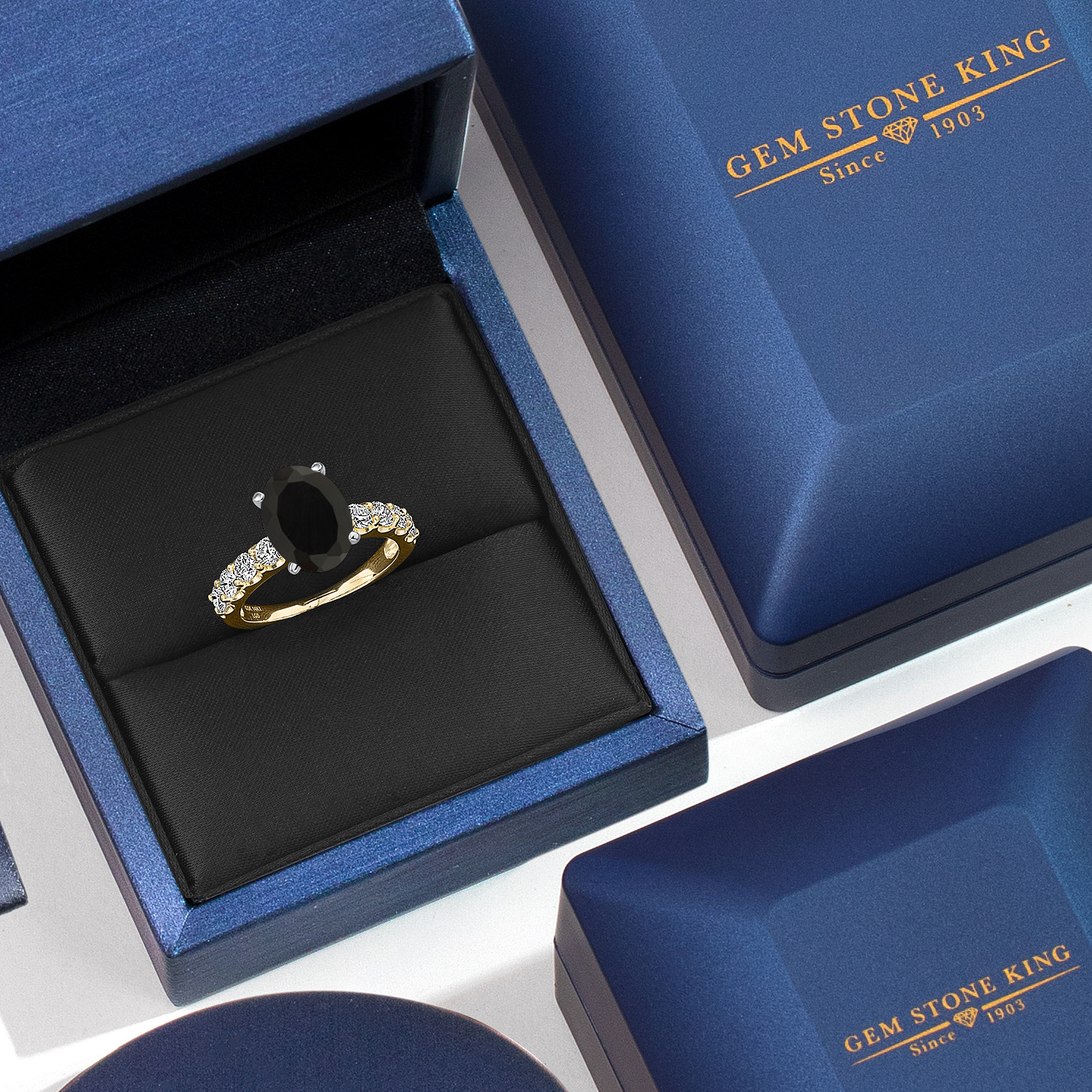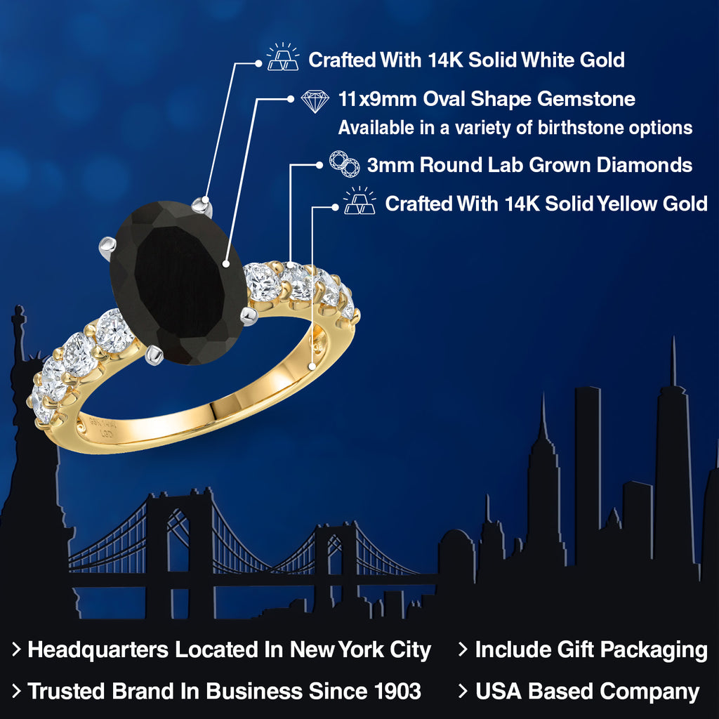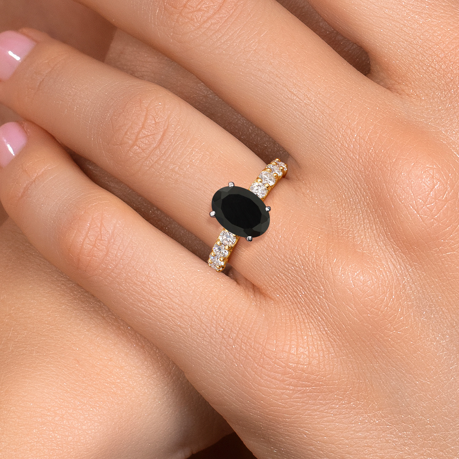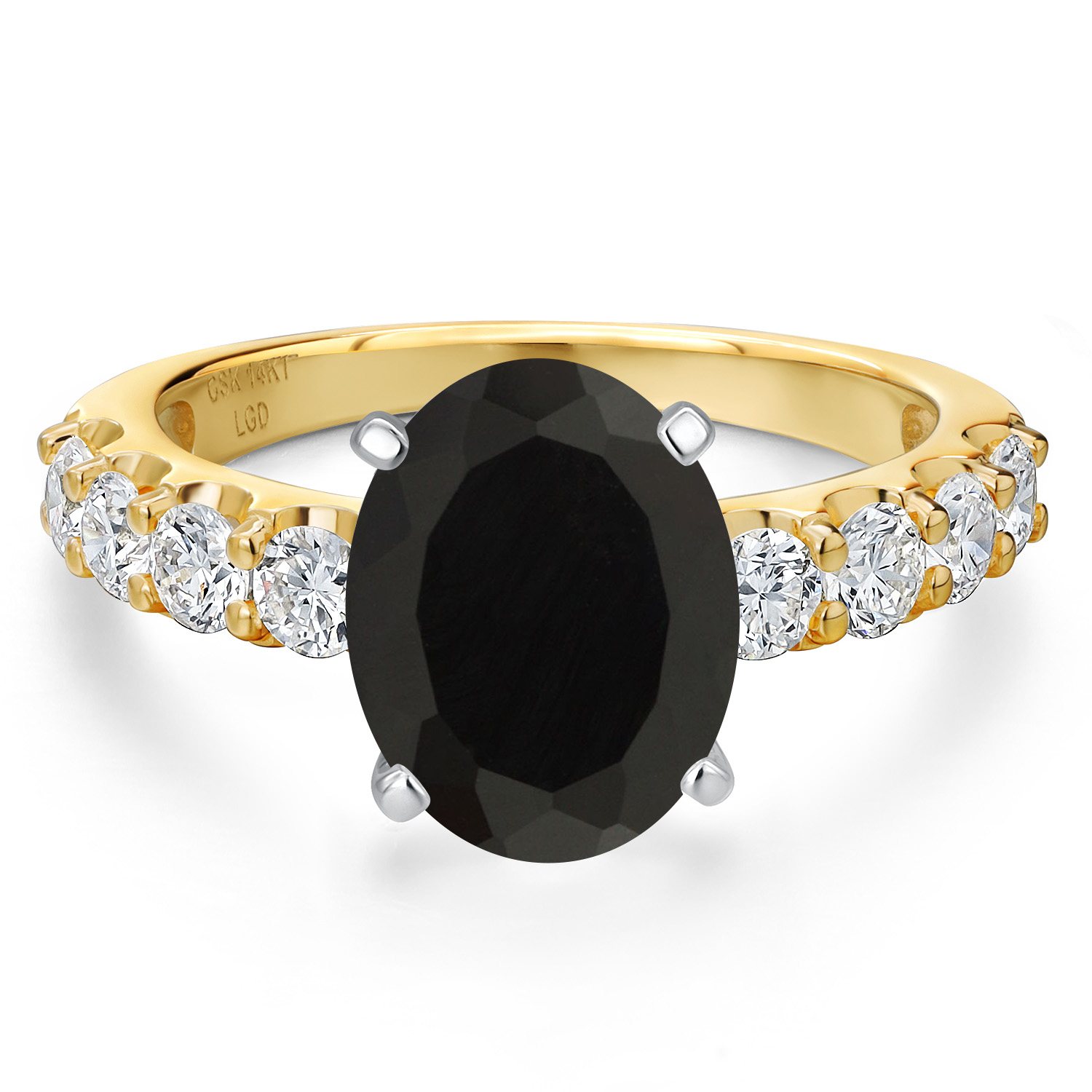 MEASUREMENTS: 11x9mm Oval Black Onyx, 3x3mm Round E - F Lab Grown Diamond. Total Carat Weight is 3.88 cttw